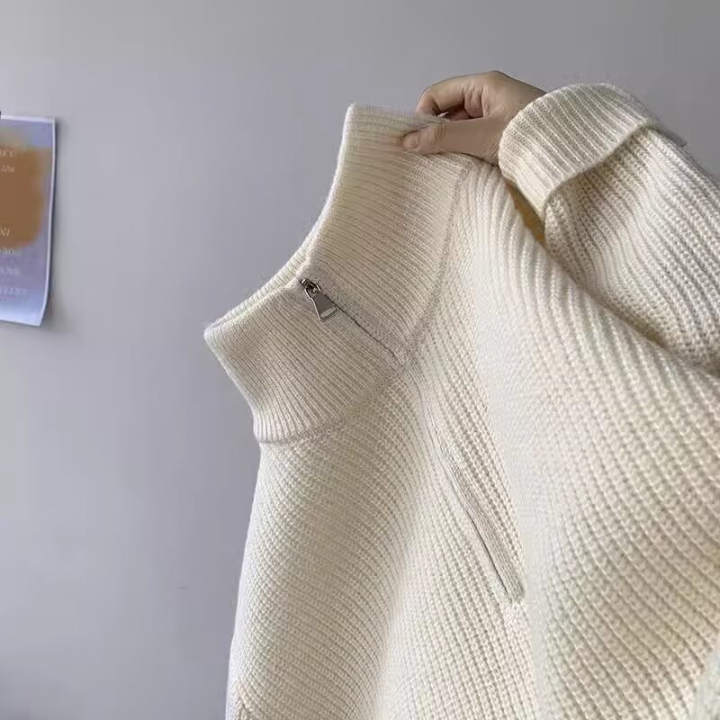 하프 지퍼 터틀넥 스웨터 남성용 겨울 2023 새로운 단색 니트 스웨터 한국 스타일 게으른 스타일 모든 매치 캐주얼 재킷스토어 가기