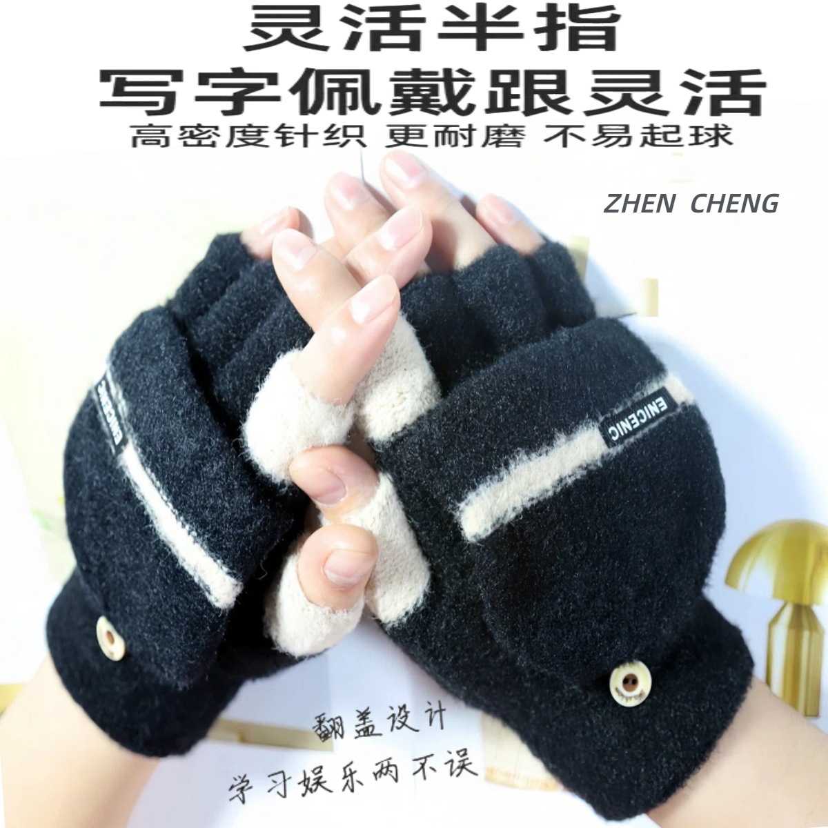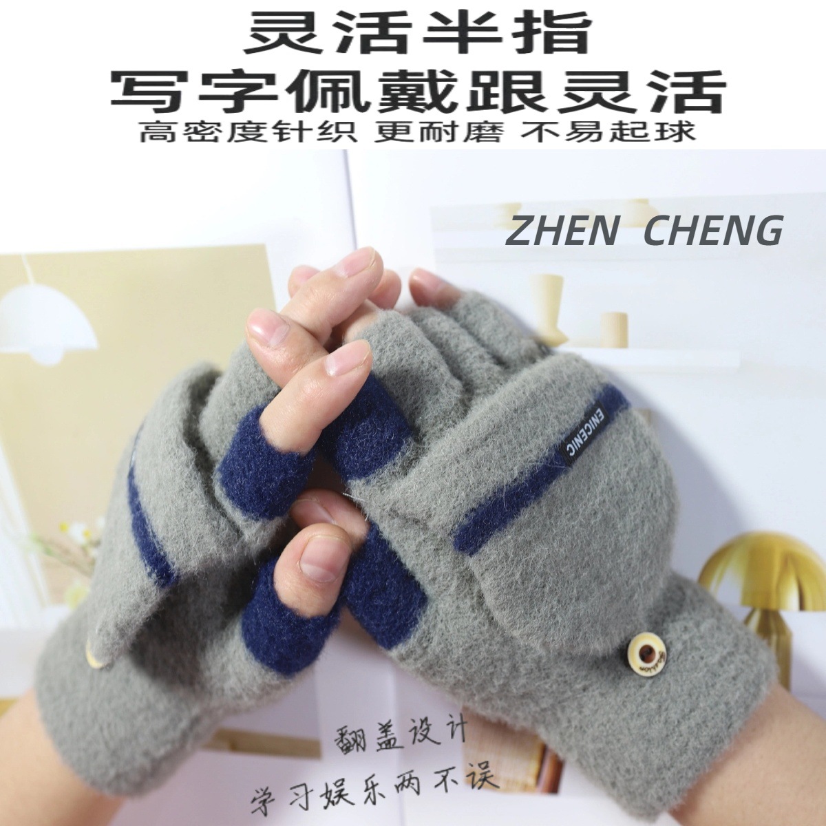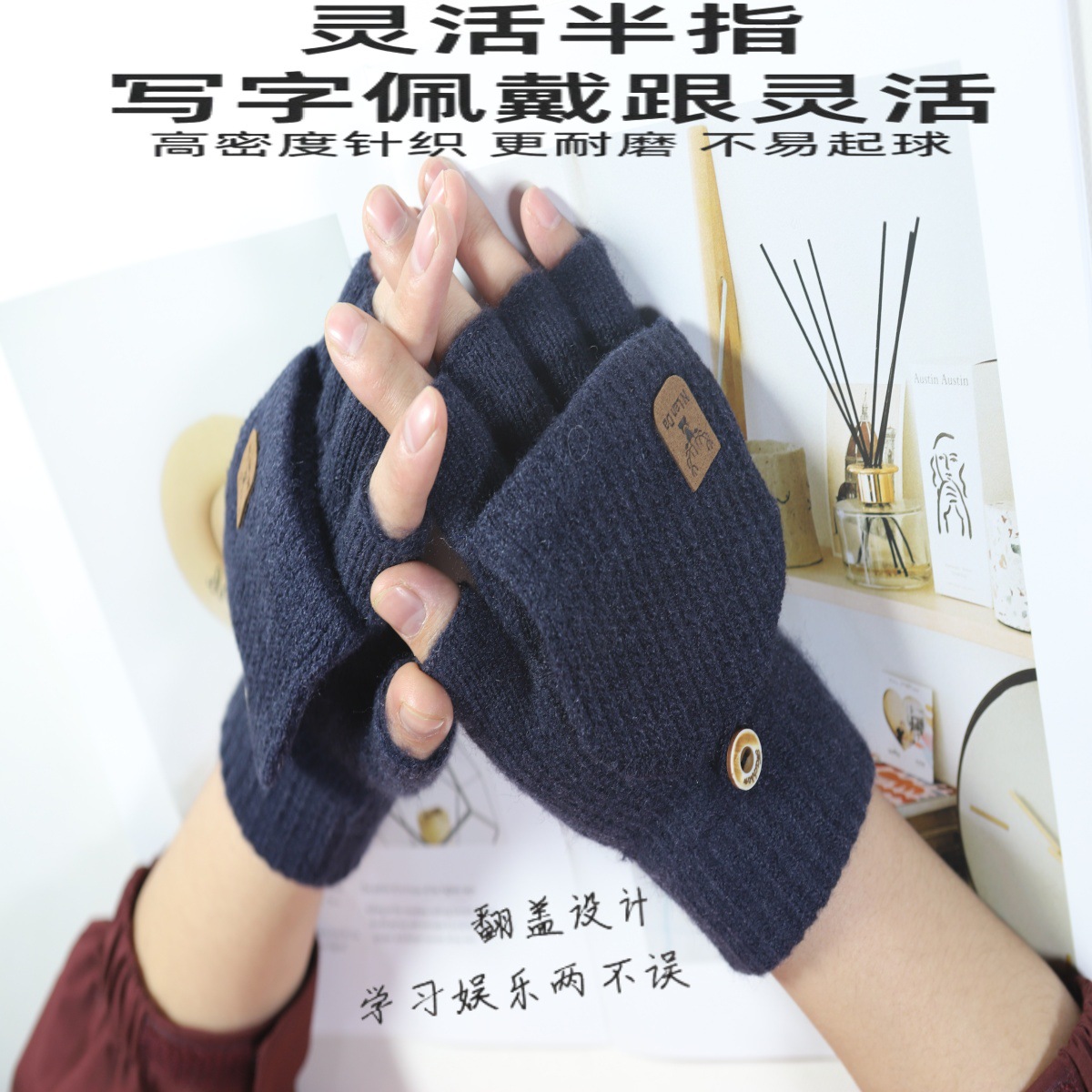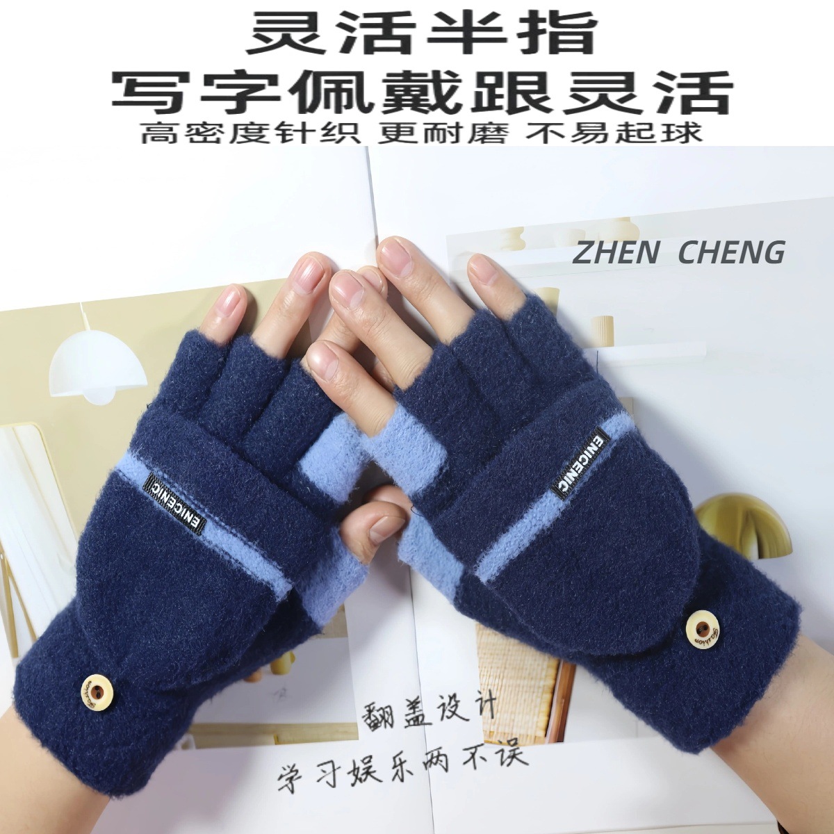 가을 겨울 재고 유니버설 스트라이프 귀여운 블루 한국 스타일 수 놓은 반 손가락 장갑 겨울 따뜻한 전기