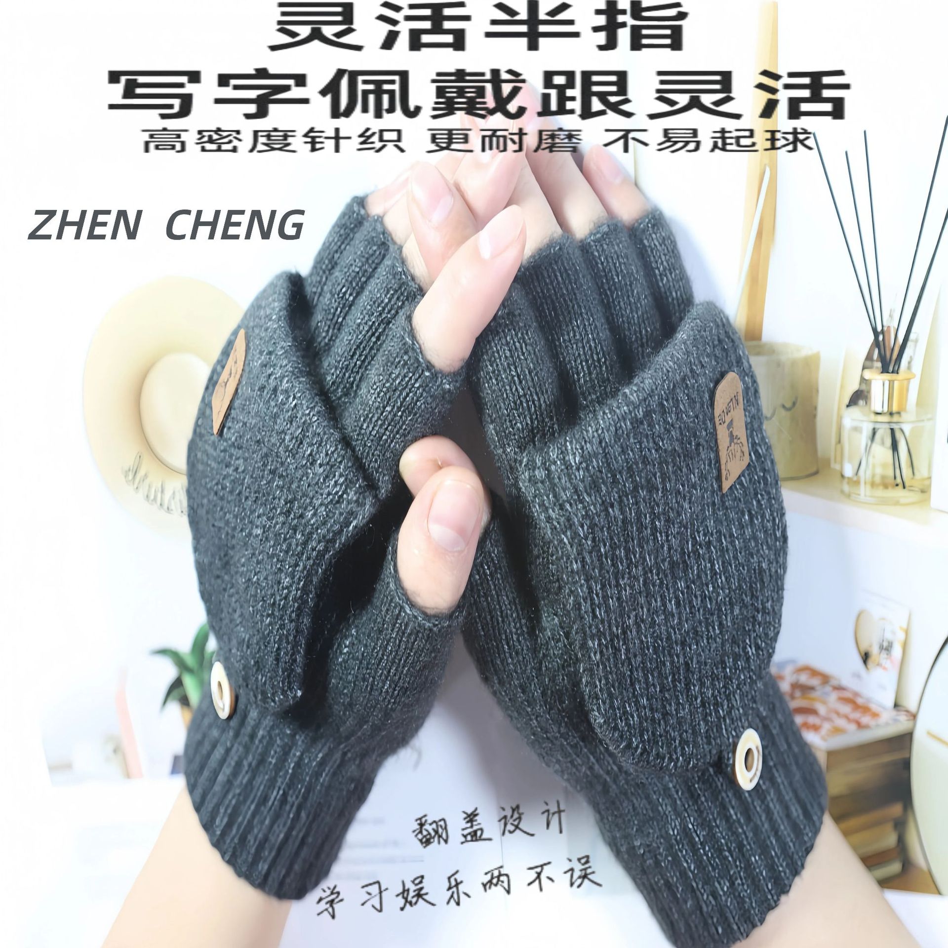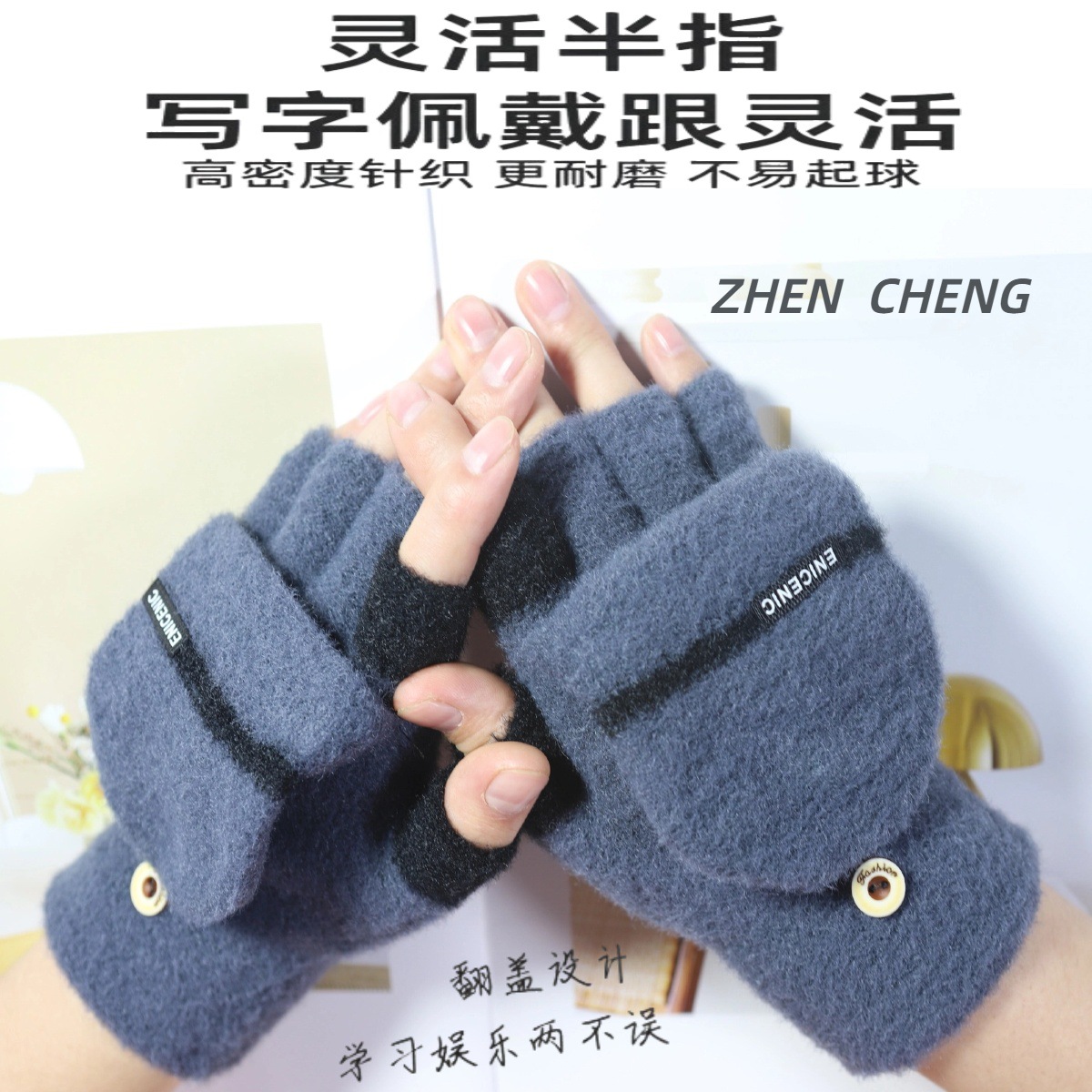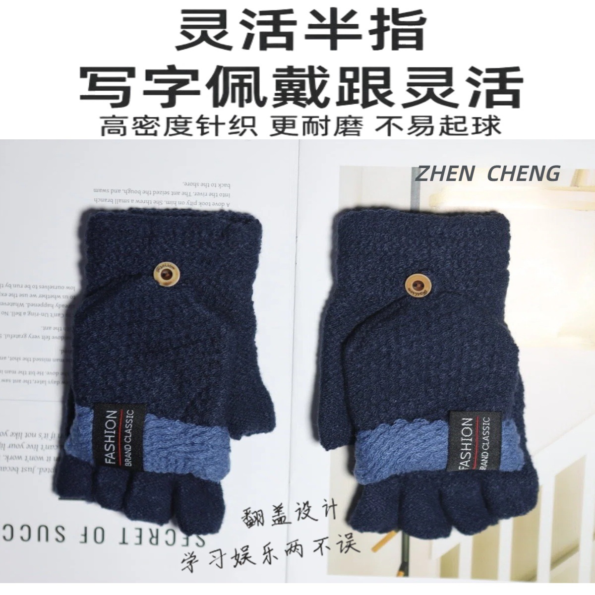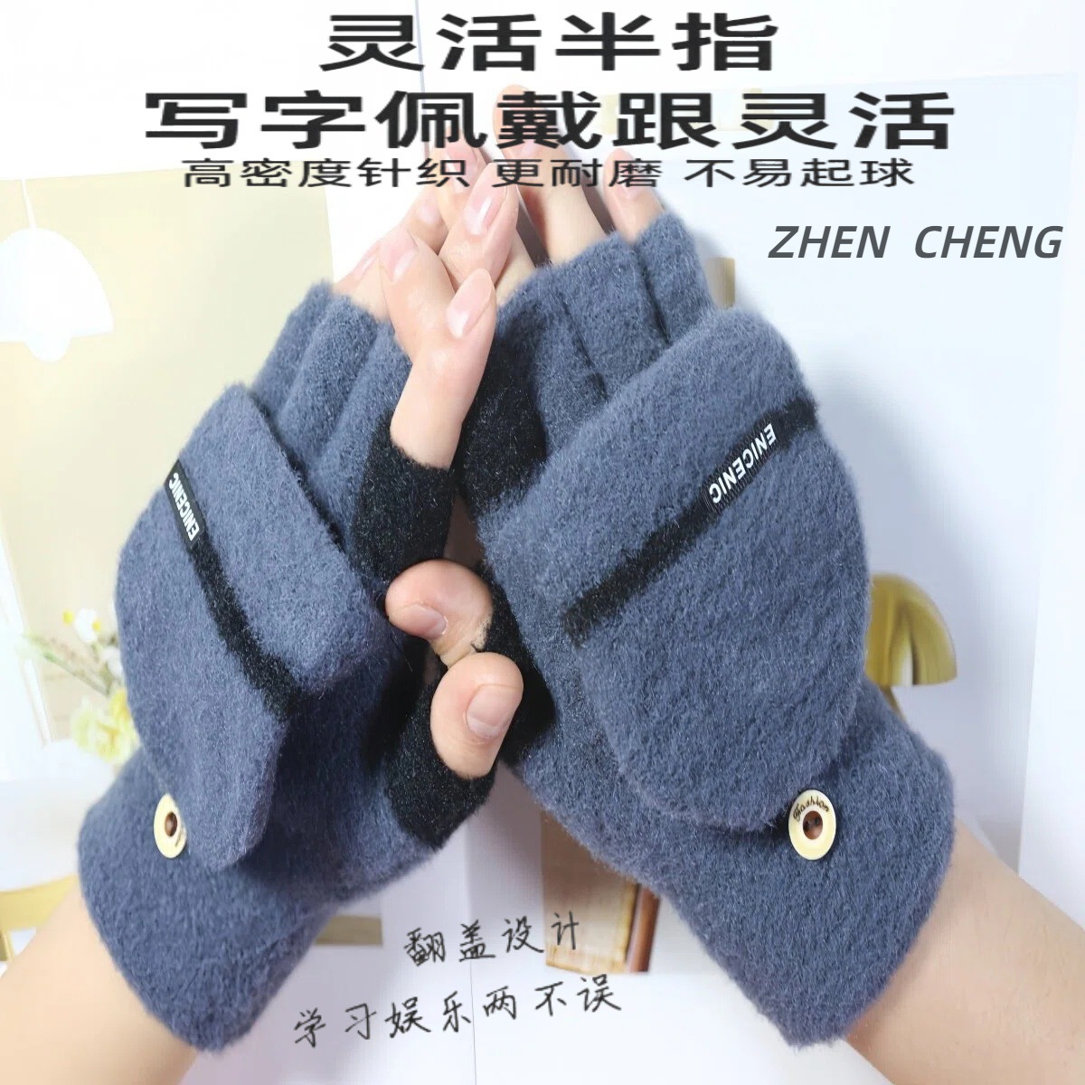 가을 겨울 재고 유니버설 스트라이프 귀여운 블루 한국 스타일 수 놓은 반 손가락 장갑 겨울 따뜻한 전기