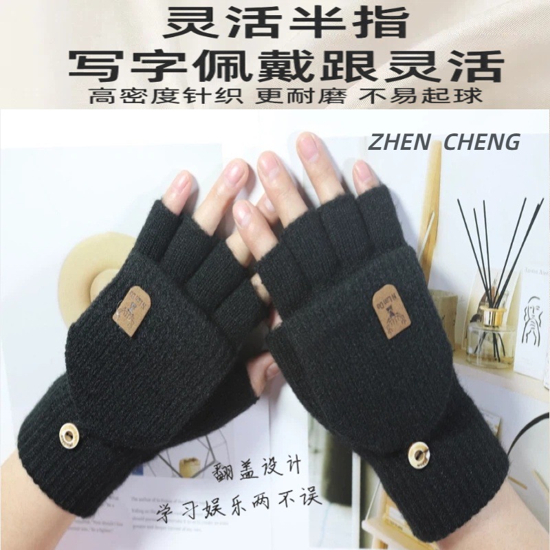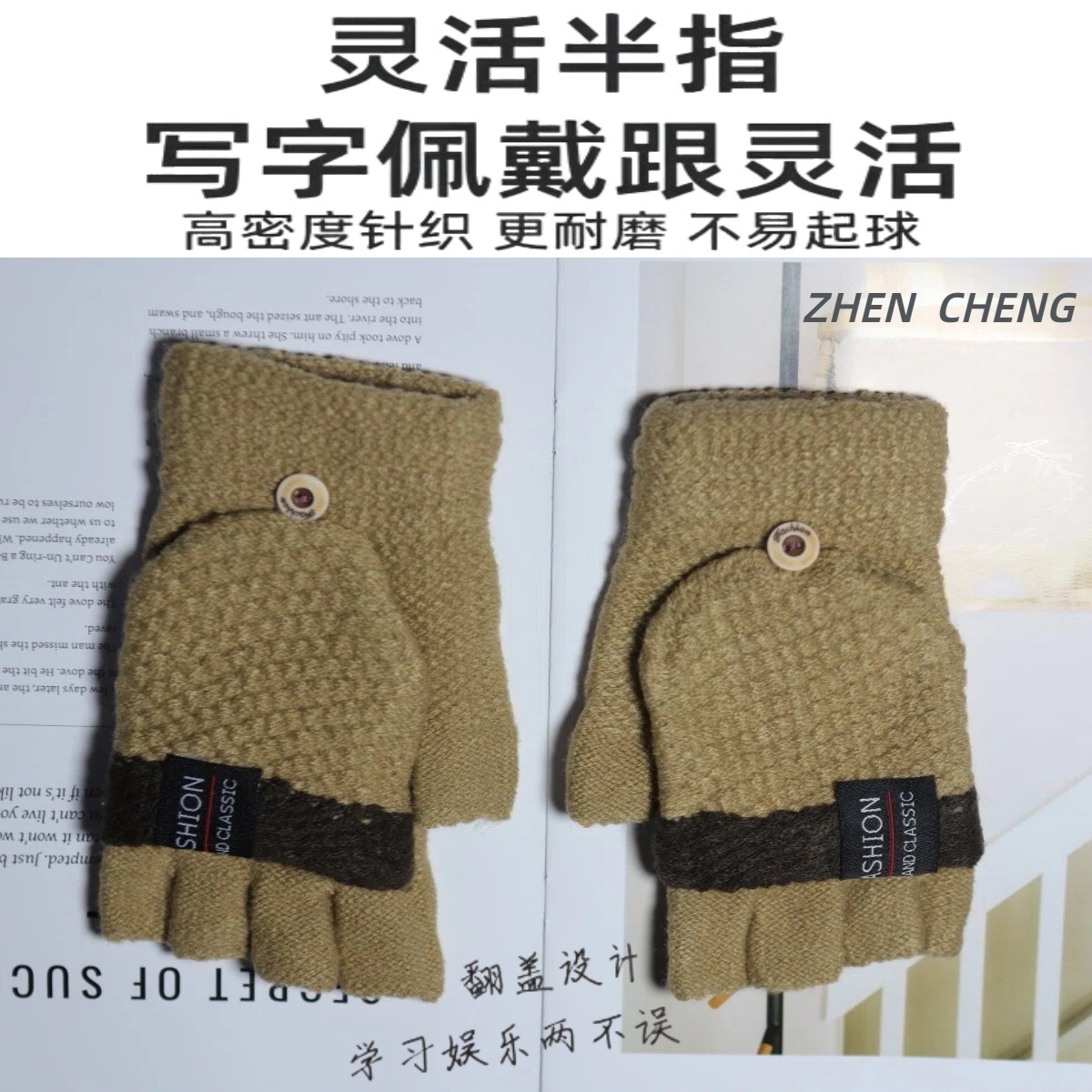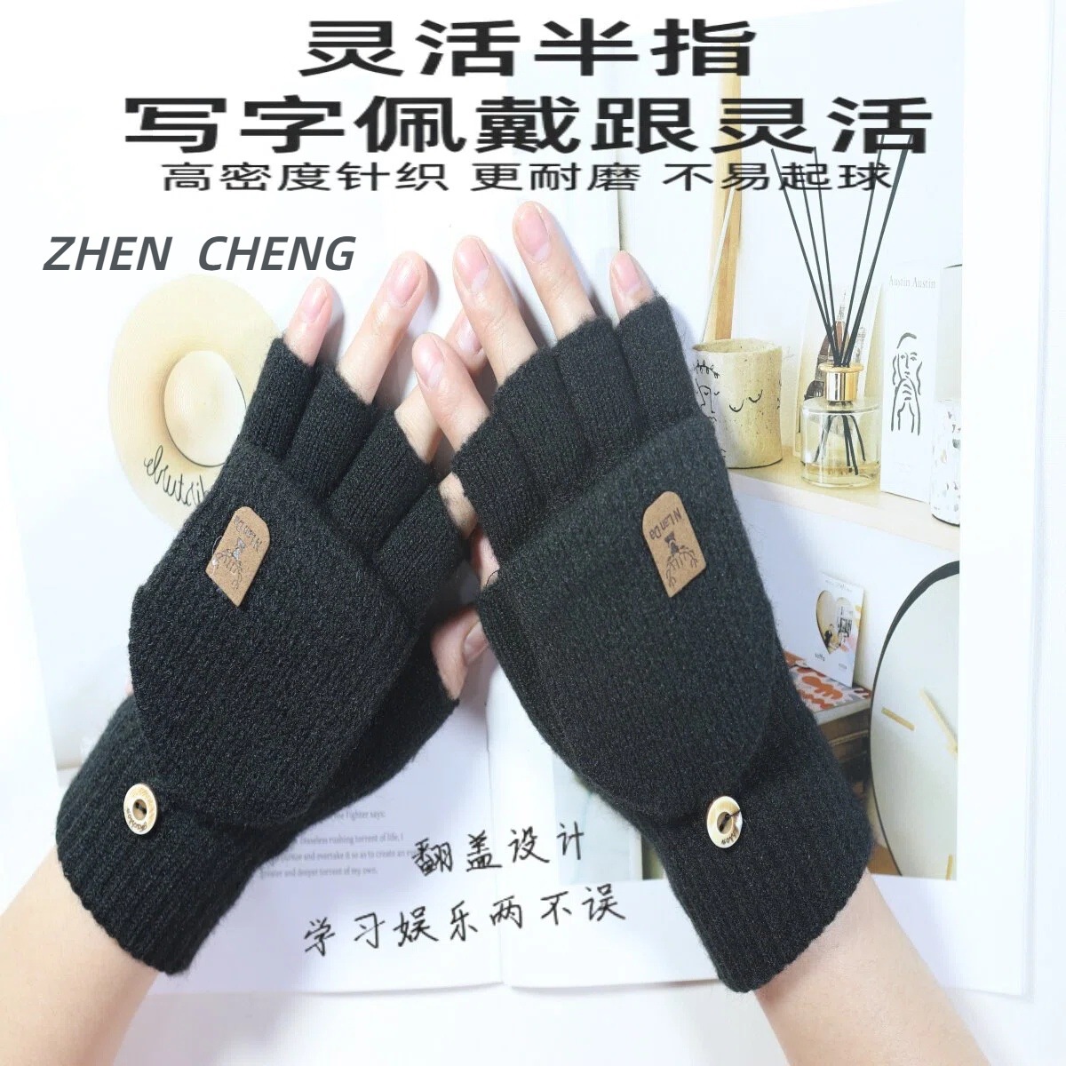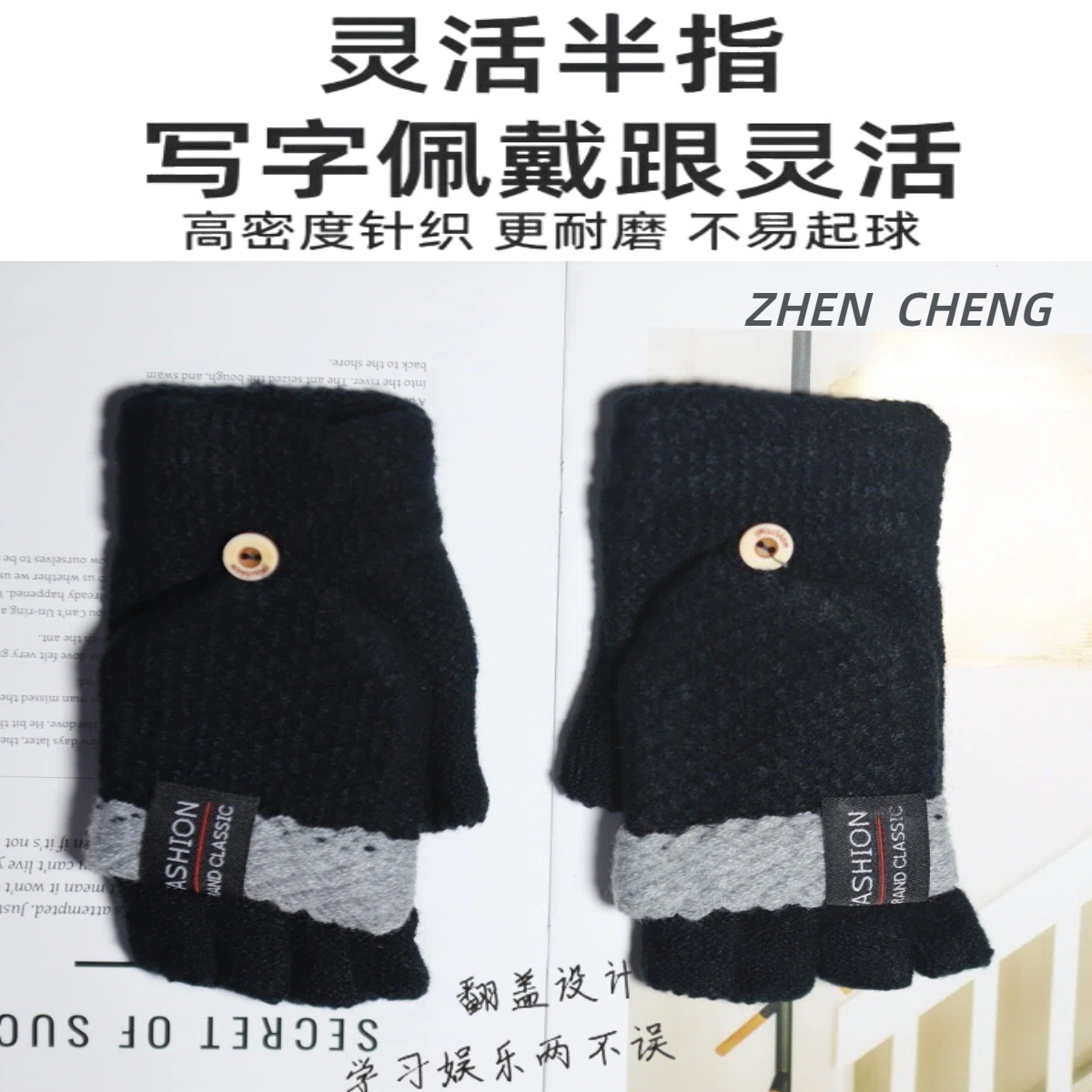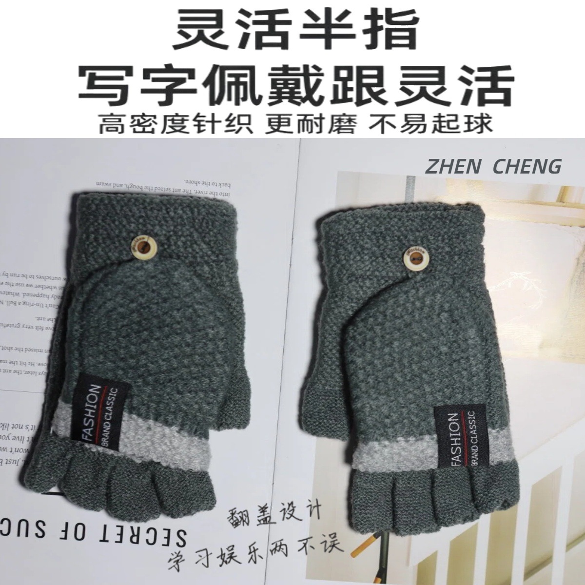 가을 겨울 재고 유니버설 스트라이프 귀여운 블루 한국 스타일 수 놓은 반 손가락 장갑 겨울 따뜻한 전기