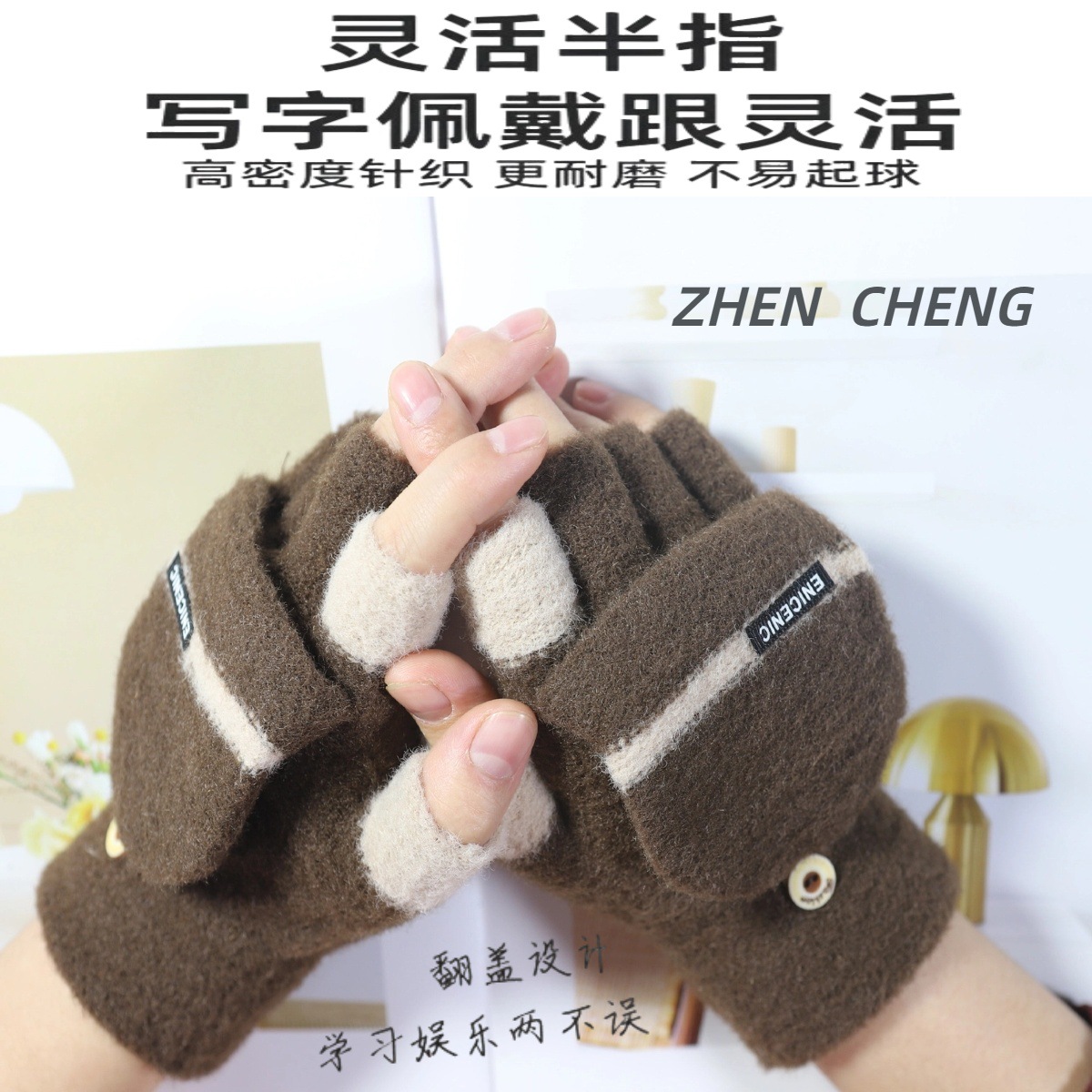 가을 겨울 재고 유니버설 스트라이프 귀여운 블루 한국 스타일 수 놓은 반 손가락 장갑 겨울 따뜻한 전기스토어 가기