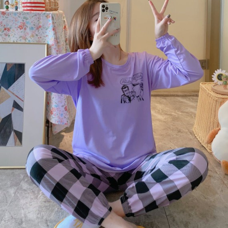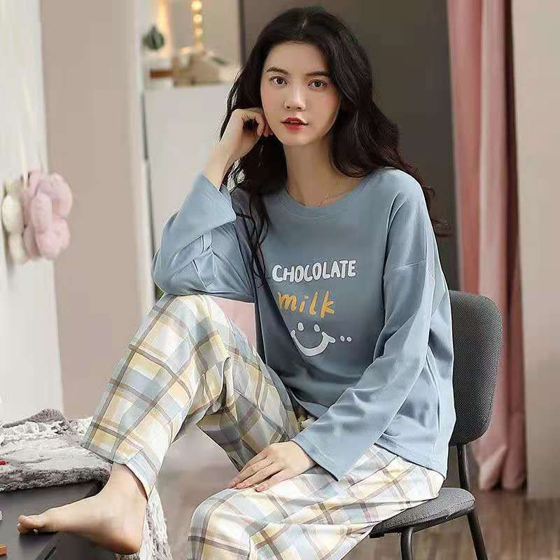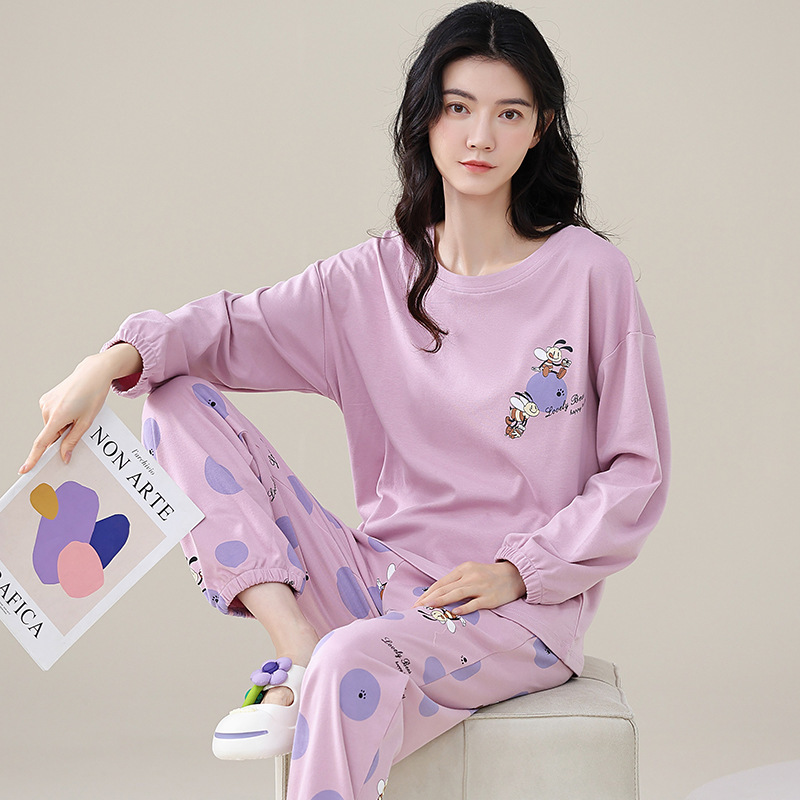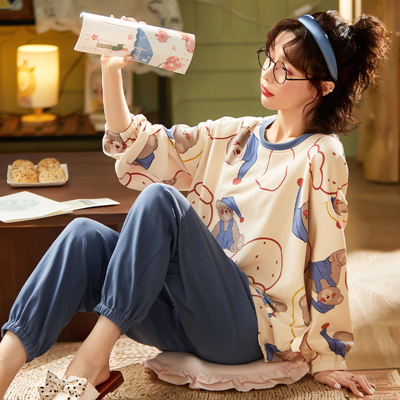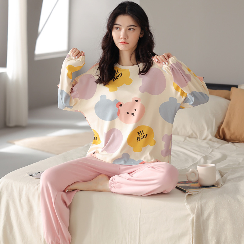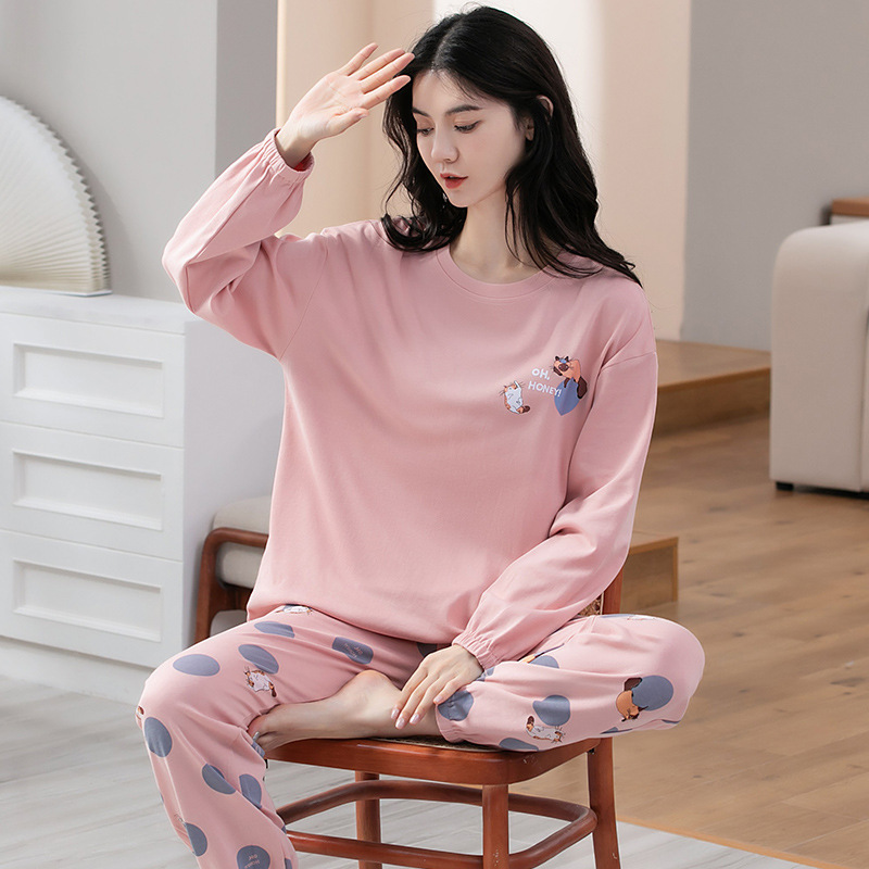 새로운 잠옷 여성의 봄과 가을 긴팔 가을 인터넷-유명한 외부가 가을과 겨울 집 옷을 입고 세트 머리를위한 2 피스 세트
