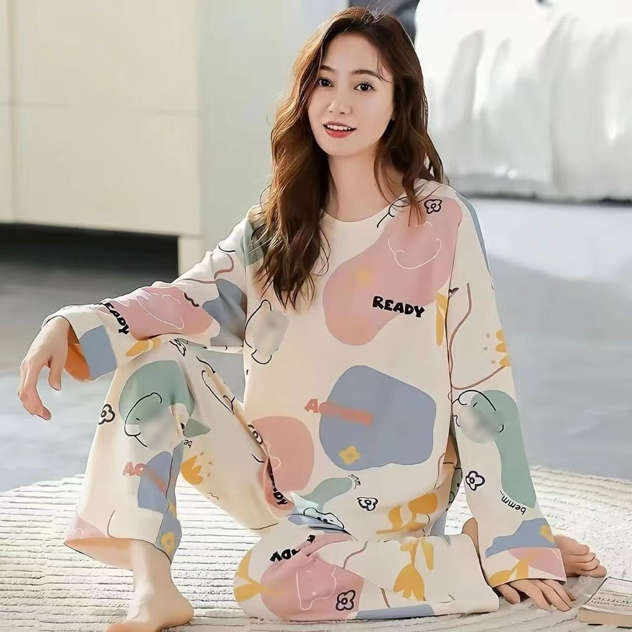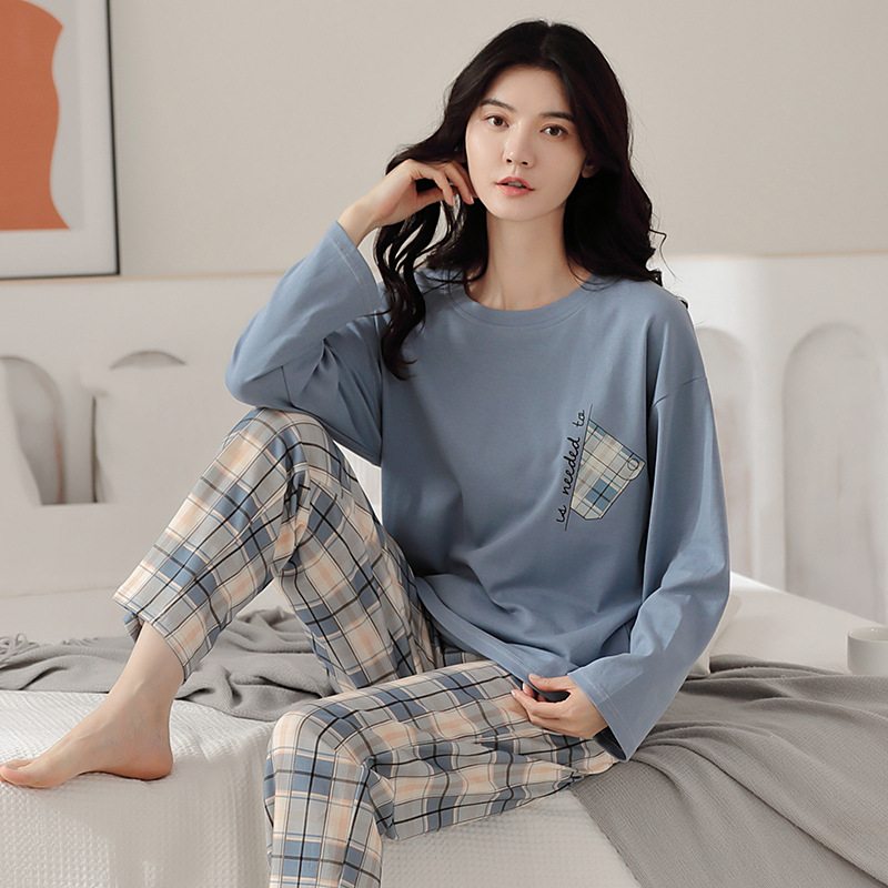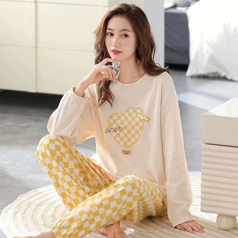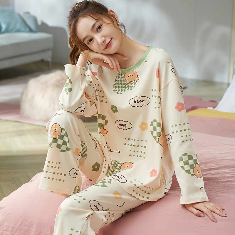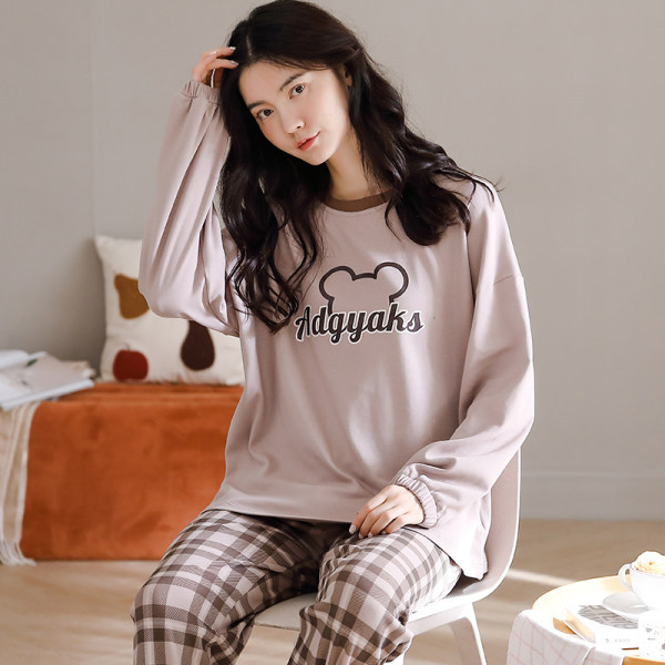 새로운 잠옷 여성의 봄과 가을 긴팔 가을 인터넷-유명한 외부가 가을과 겨울 집 옷을 입고 세트 머리를위한 2 피스 세트스토어 가기