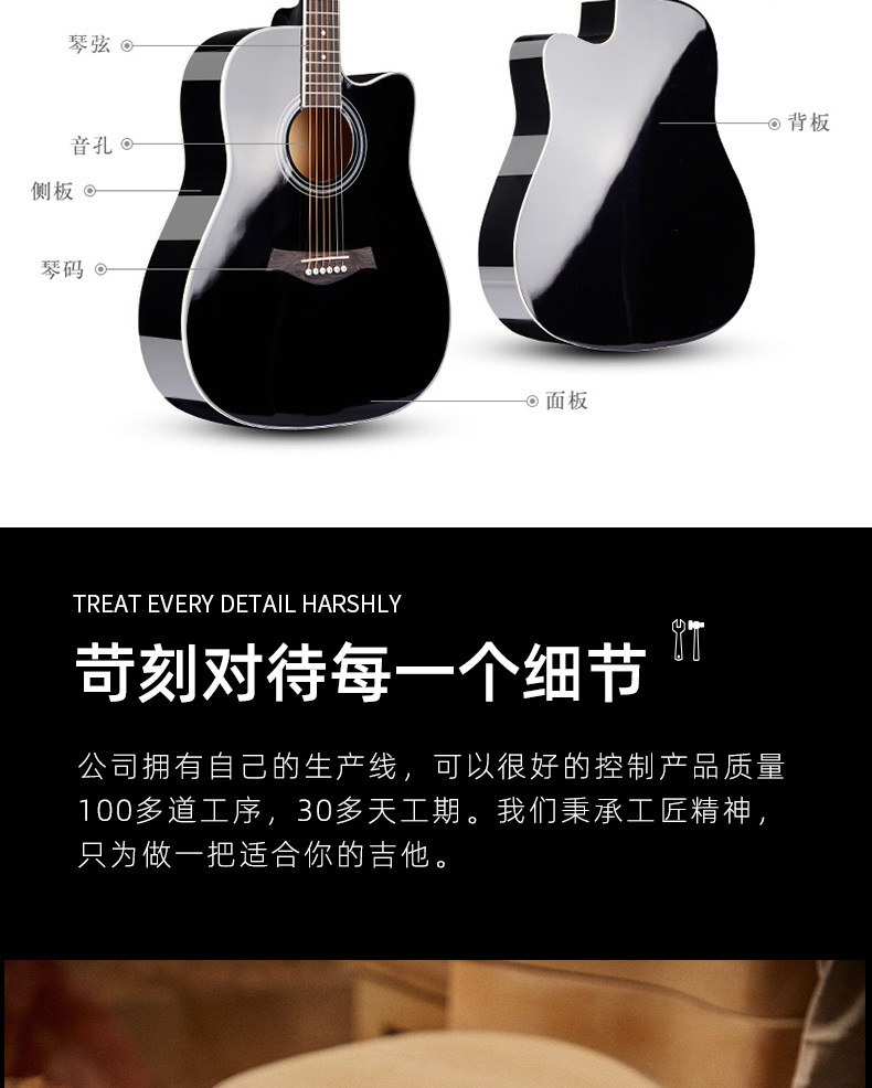 41 인치 포크 기타 초보자가 사용하기 쉬운 어쿠스틱 기타 기타 기타 제조 업체 도매스토어 가기