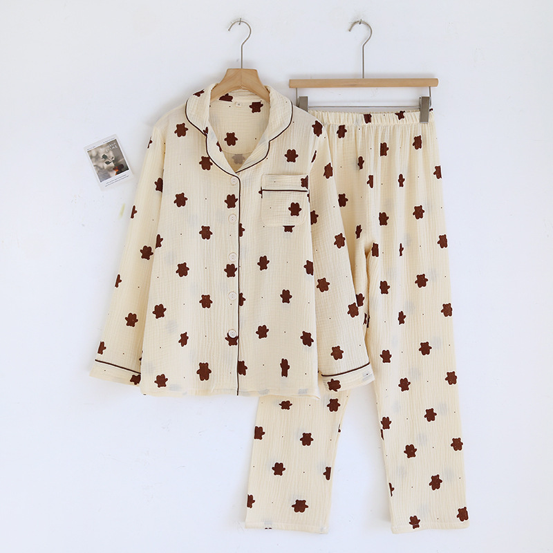 24 새로운 잠옷 여자의 봄과 여름 얇은 면 거즈 크레이프 긴 소매 카디건 면 가정 의류 증가 세트스토어 가기