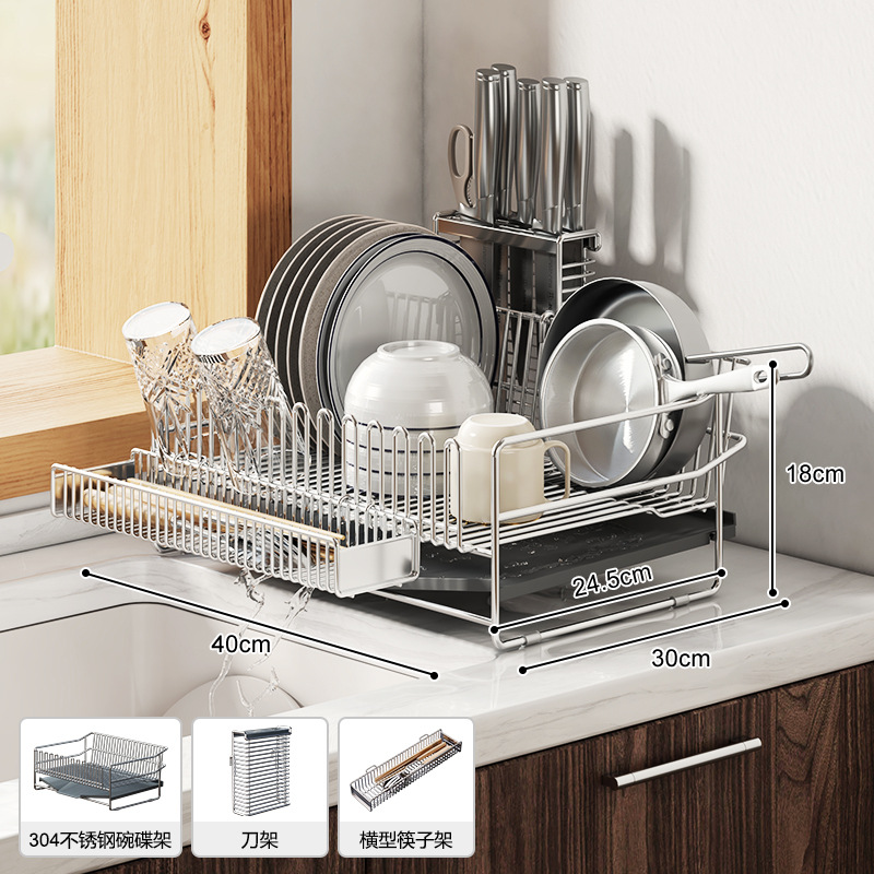 • 넓어진 단일 레이어 접시 랙 + 나이프 랙 + 도마 랙 + 젓가락 랙