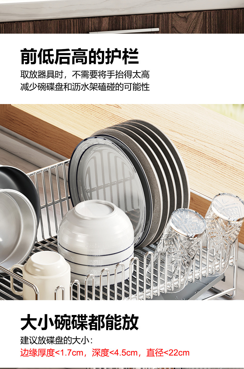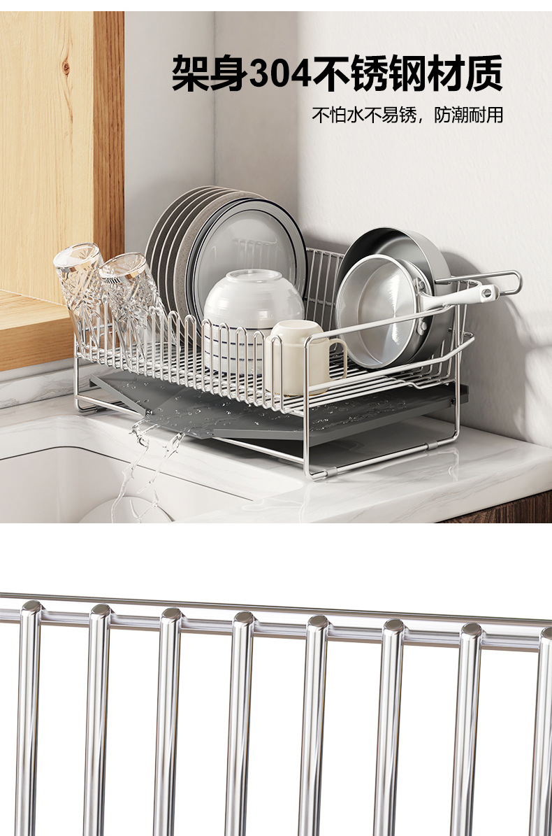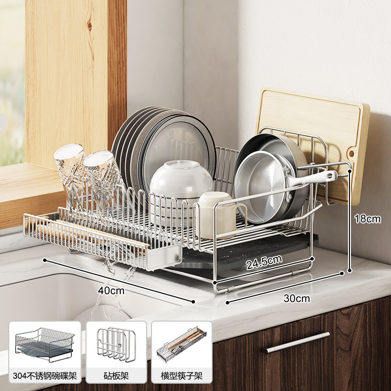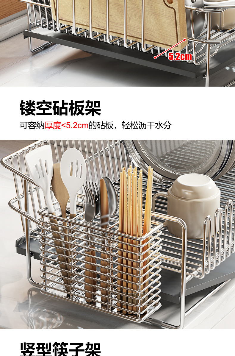 • 넓어진 단일 레이어 접시 랙 + 도마 랙 + 젓가락 랙