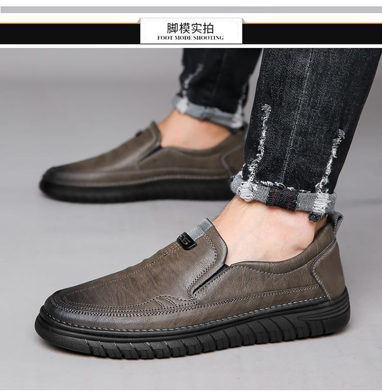 가죽 신발 남성 가을과 겨울 새로운 정품 가죽 부드러운 바닥 통기성 캐주얼 미끄럼 방지 남성용 운전 중년 아빠 신발스토어 가기