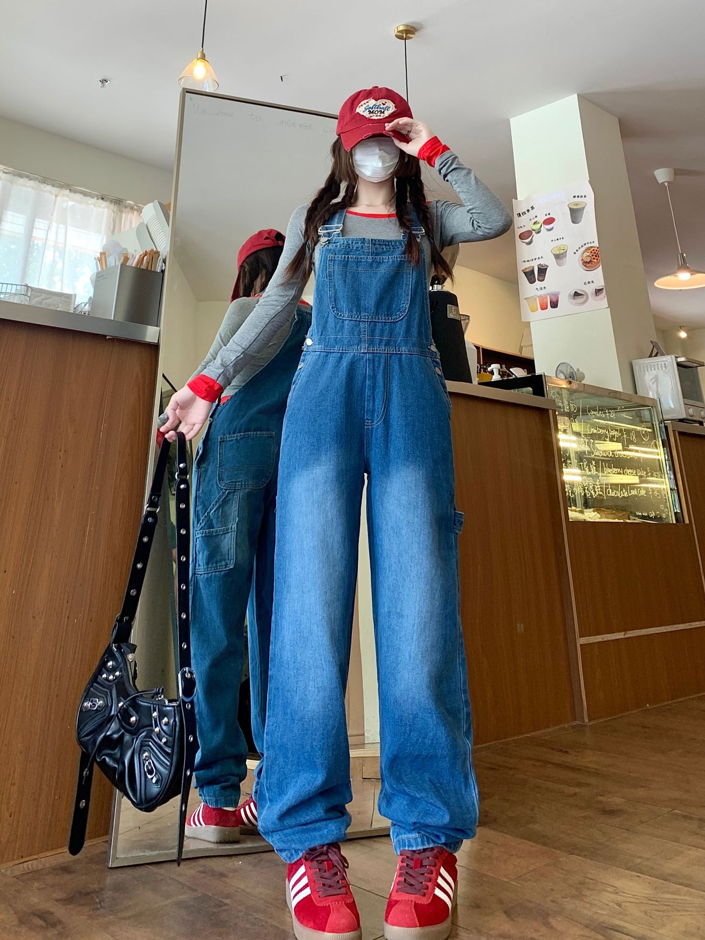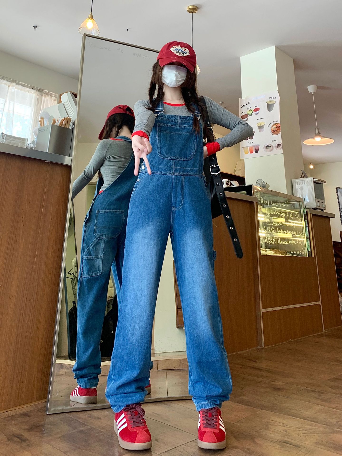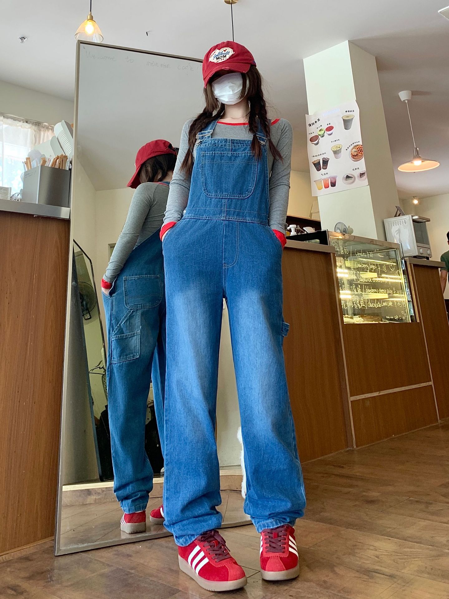 빈티지 데님 오버홀 여성 겨울 시원한 소금 스타일 디자인 센스 니치 통비 자매의 스트레이트-다리 느슨한 넓은 다리 점프 수트스토어 가기
