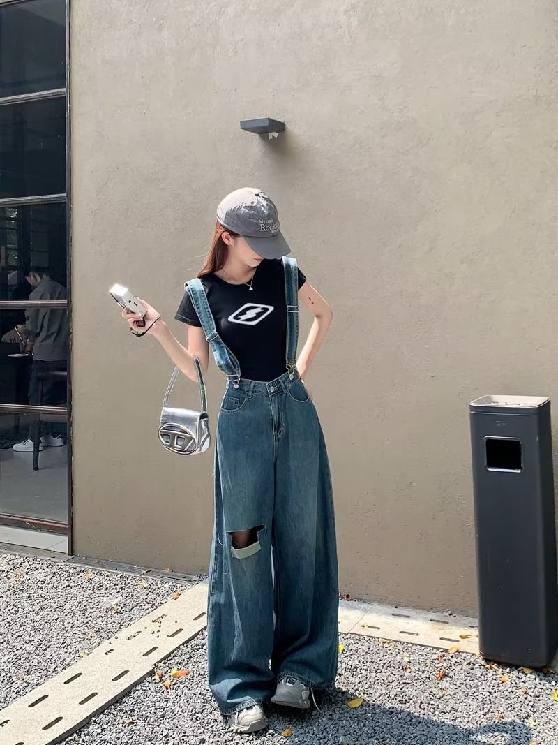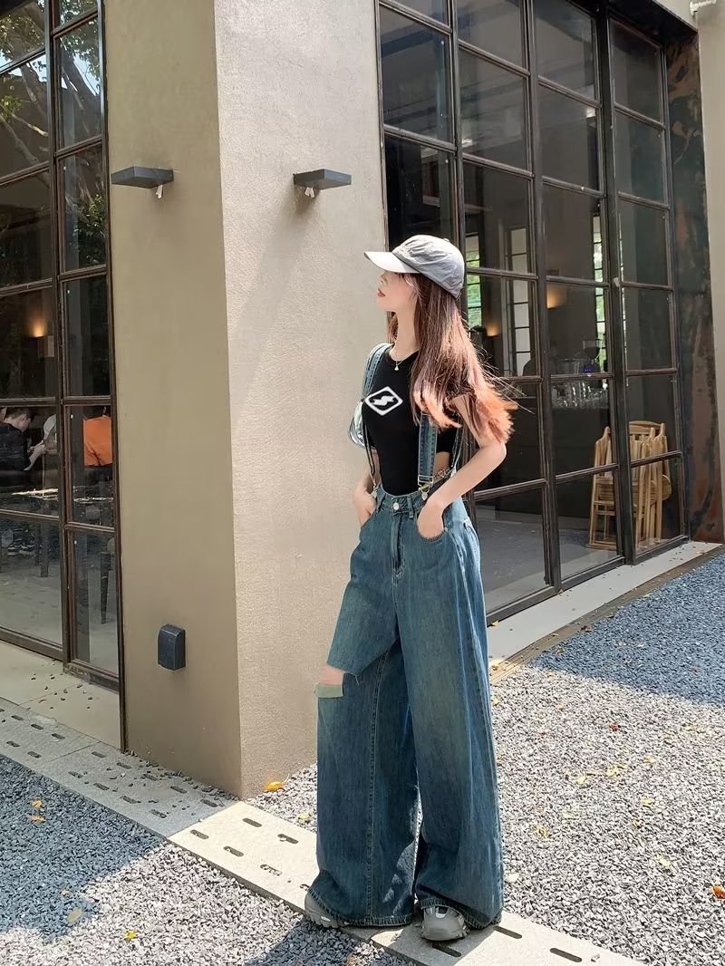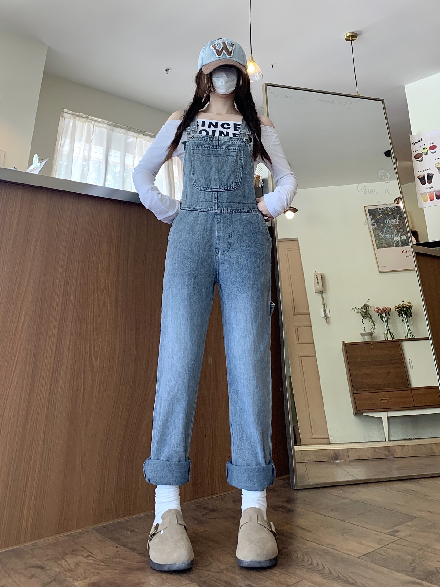 빈티지 데님 오버홀 여성 겨울 시원한 소금 스타일 디자인 센스 니치 통비 자매의 스트레이트-다리 느슨한 넓은 다리 점프 수트스토어 가기