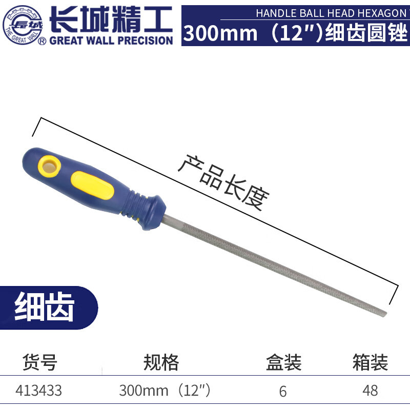 만리장성 원형 파일 작은 원형 원통형 강철 줄 금속 두꺼운 중간 톱니 절단기 목재 도구 300mm10 인치 미세