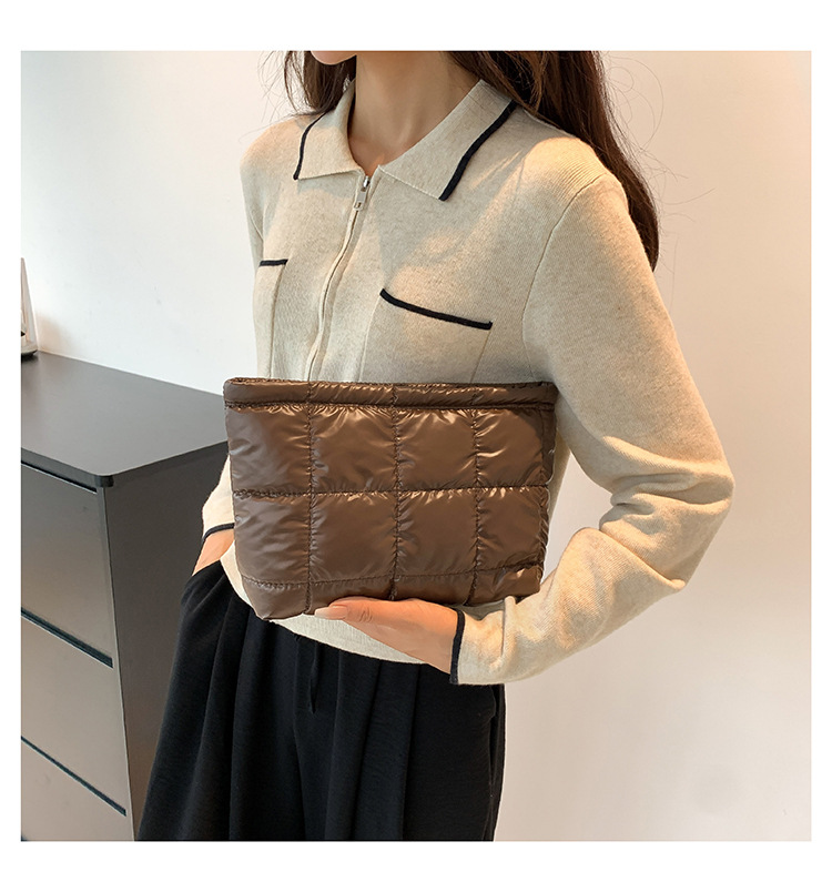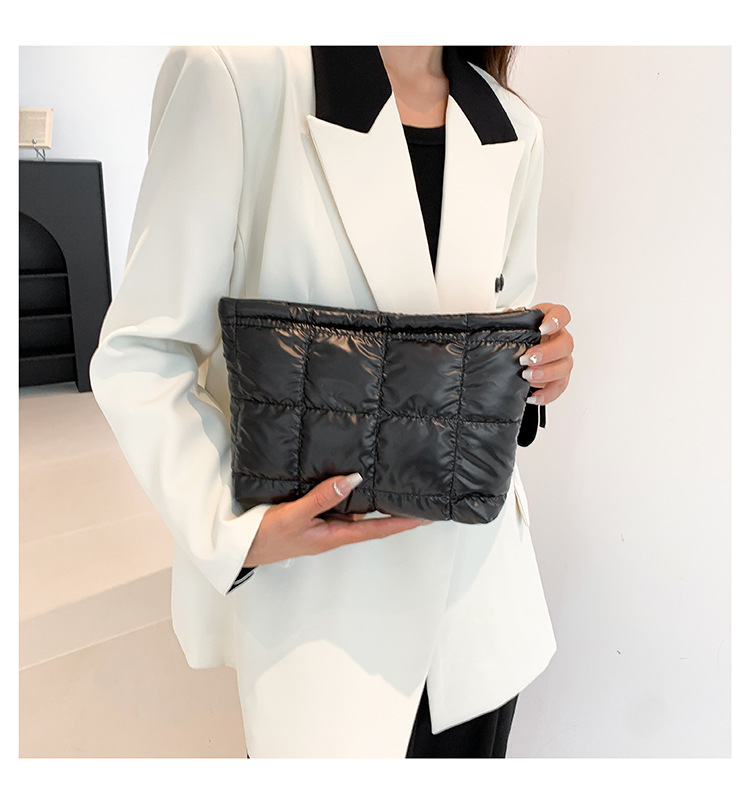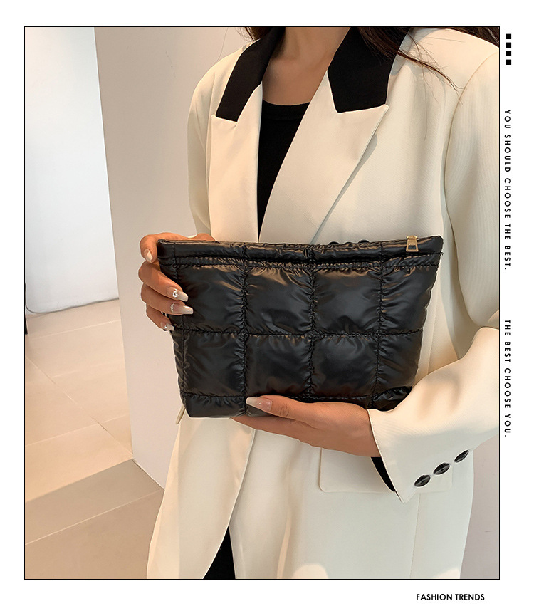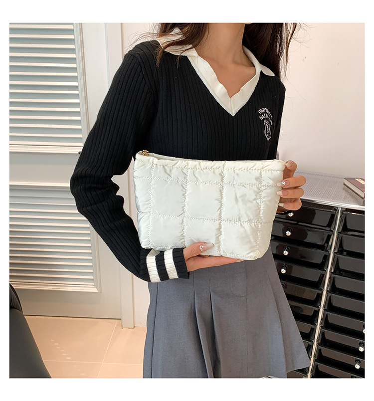 간단한 경량 작은 광장 가방 2024 가을과 겨울 새로운 올 매치 클러치 백 스퀘어 자수 라인 캐주얼 화장품 가방 국경