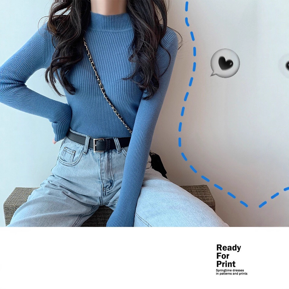 블랙 내부 니트 셔츠 탑 가을 여성의 새로운 슬림 슬림 핏 꽉 반 하이 넥 긴팔 베이스 레이어 스웨터