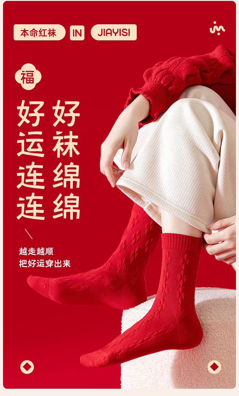 양말 여성의 빨간 양말 가을과 겨울 중반 종아리 양말 결혼식 출생 년 뼈없는 양말 도매 Zhuji 양말 올인원 기계 여성 양말스토어 가기