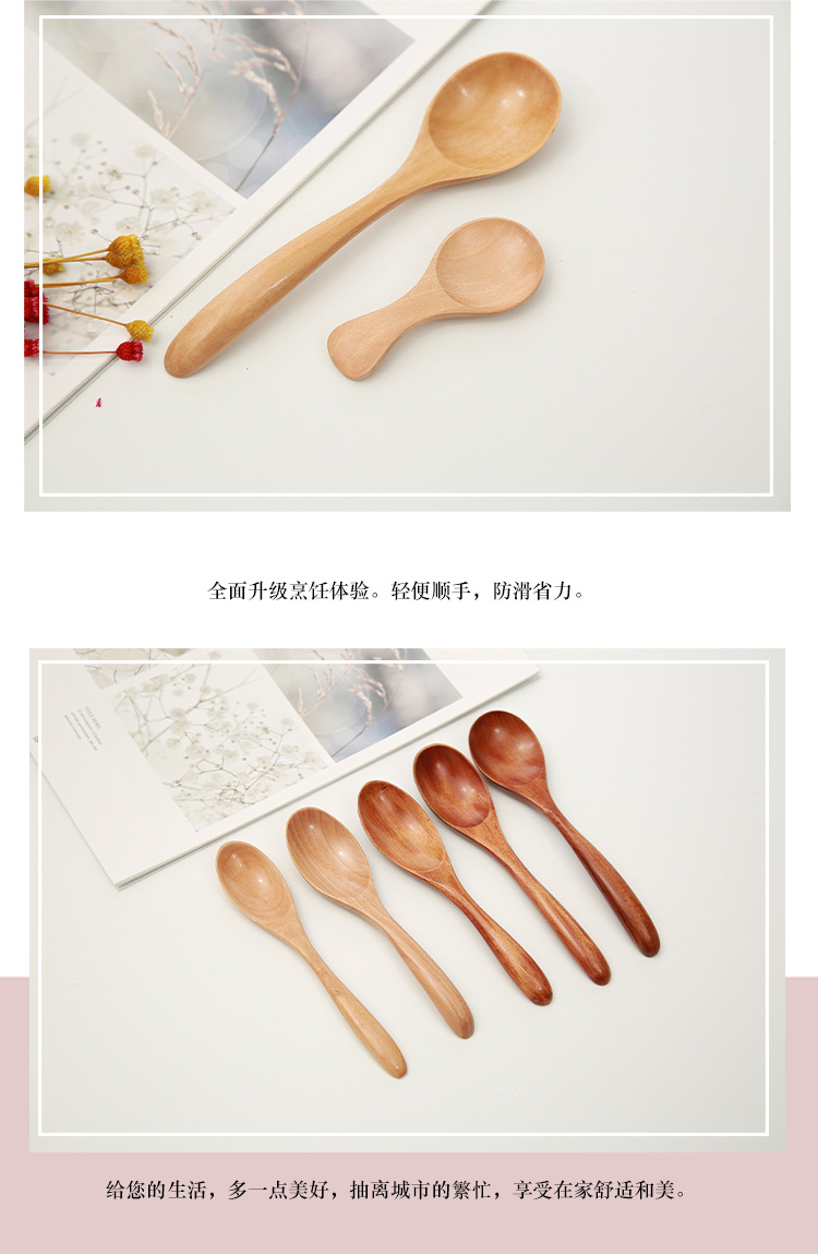 제조 업체 일본과 한국 어린이 디저트 작은 차 숟가락 연꽃 나무 손 선물 8CM 나무 숟가락 도매 단단한 나무 분유 숟가락스토어 가기