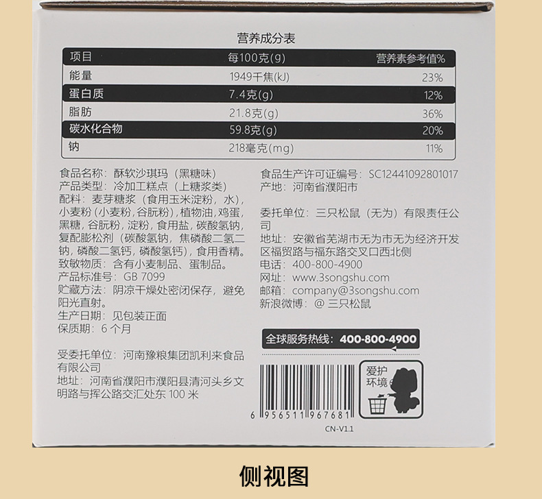 원스톱 배송 삼지다람쥐 흑설탕맛 부드러운 샤키마 500g 박스 개별 포장 달콤한 간식 무료 배송