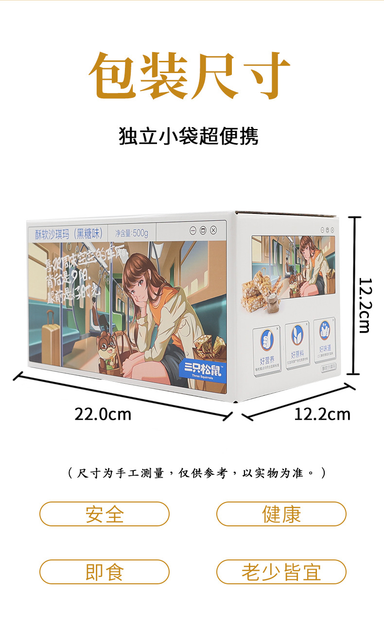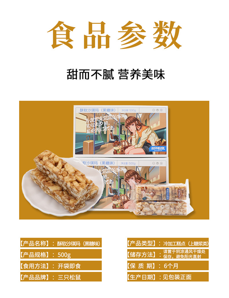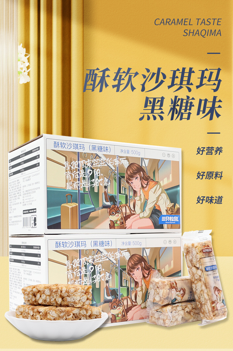 원스톱 배송 삼지다람쥐 흑설탕맛 부드러운 샤키마 500g 박스 개별 포장 달콤한 간식 무료 배송스토어 가기
