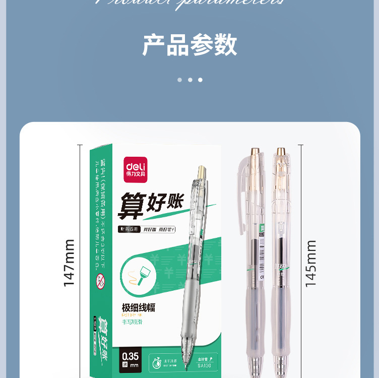 델리 SA130 빠른 건조 금융 젤 펜 0.35mm 전체 바늘 튜브 블랙 (분기) 사무실 부드러운 쓰기 서명 펜