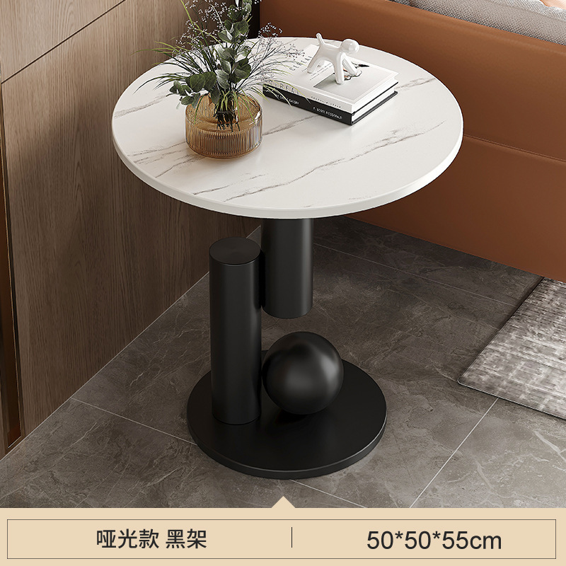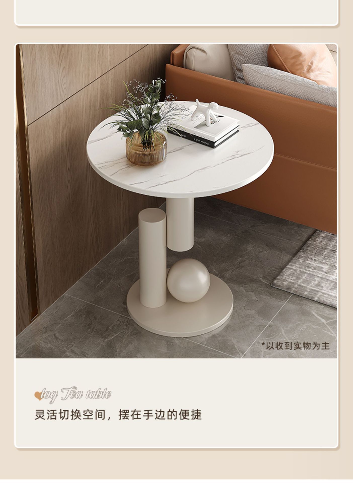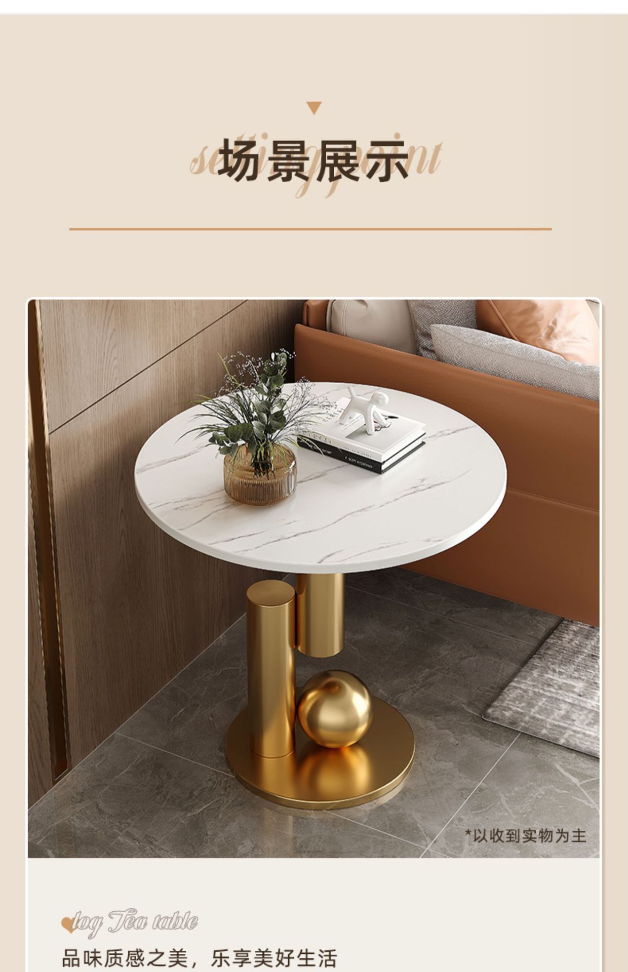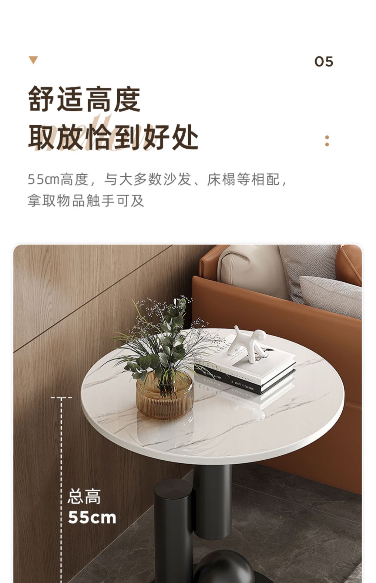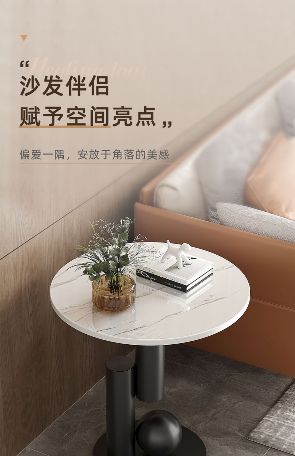 轻奢沙发边几边柜圆形小茶几客厅角几现代小户型茶桌岩板小圆桌子