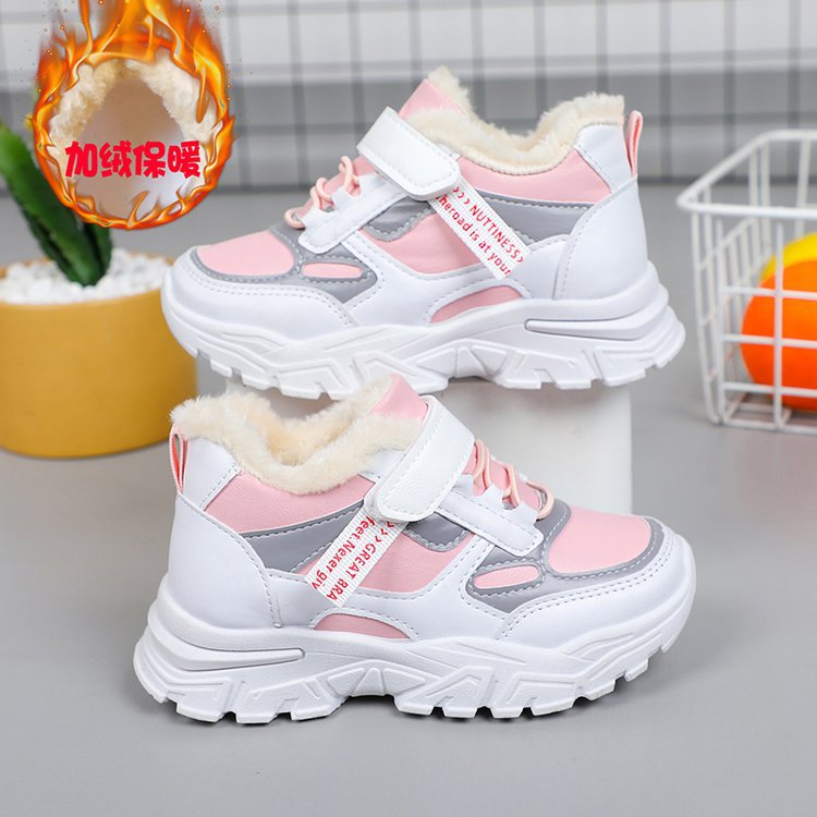 가을 겨울 신상품, 솜 안감 여아 운동화, 아동화, 남아 가죽 소재 부드러운 밑창 중대형 아동 캐주얼 따뜻한 아빠 신발