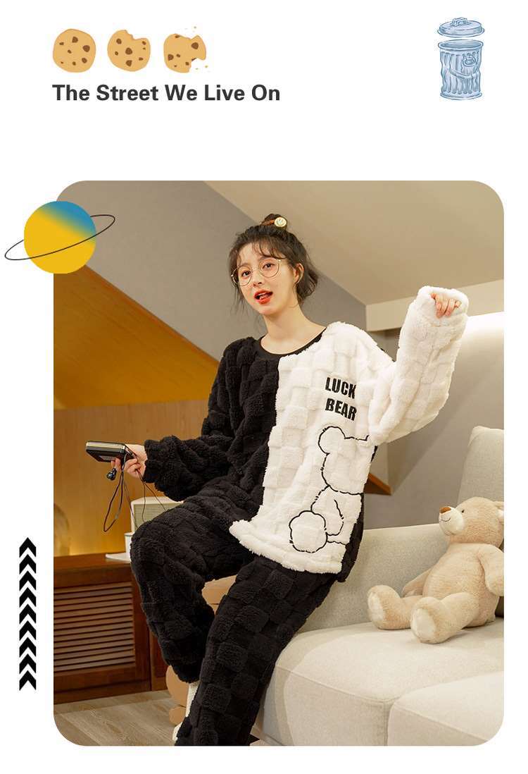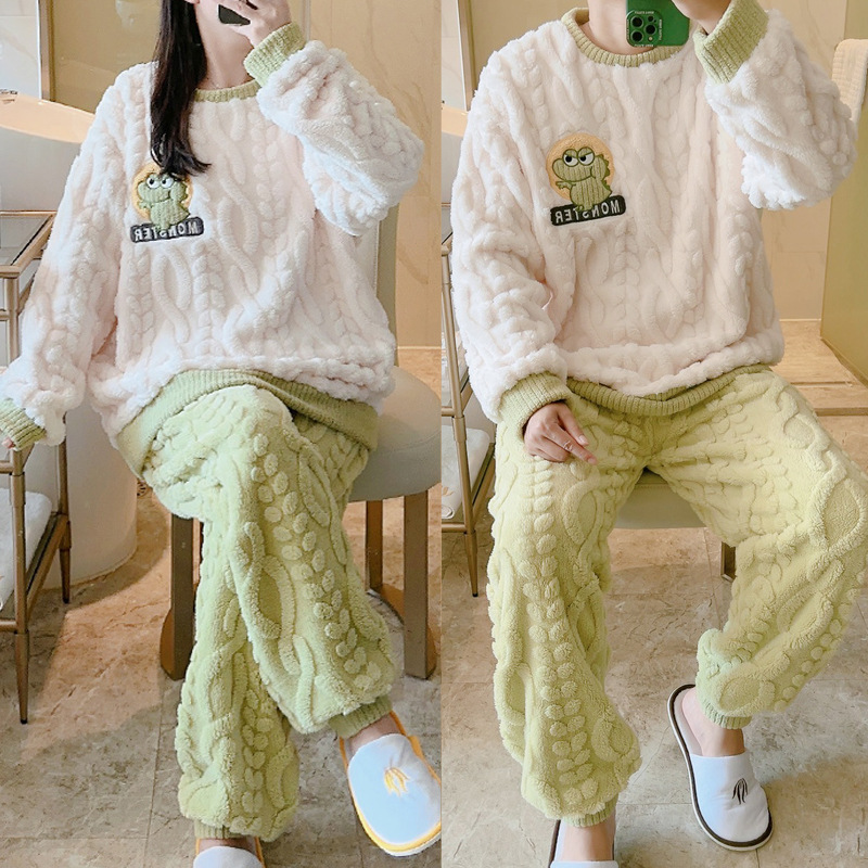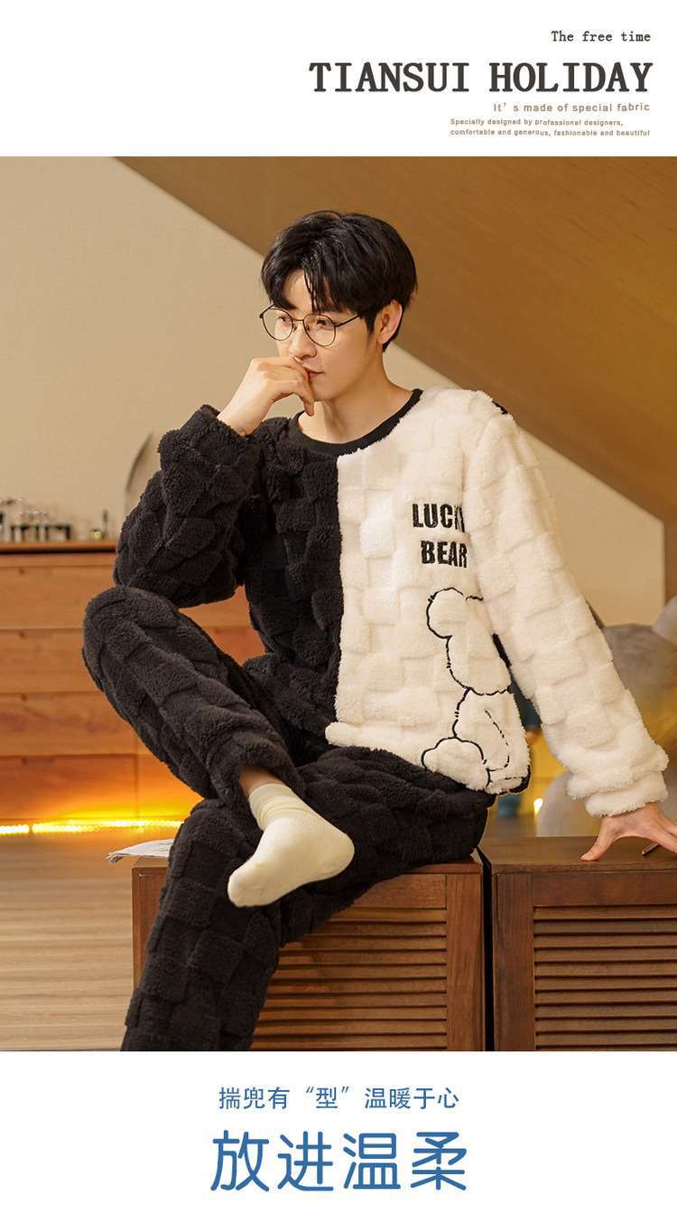 가을과 겨울 봉제 커플 파자마 여성 기모 두꺼운 산호 양털 따뜻한 남성과 여성의 홈웨어 플란넬 세트스토어 가기