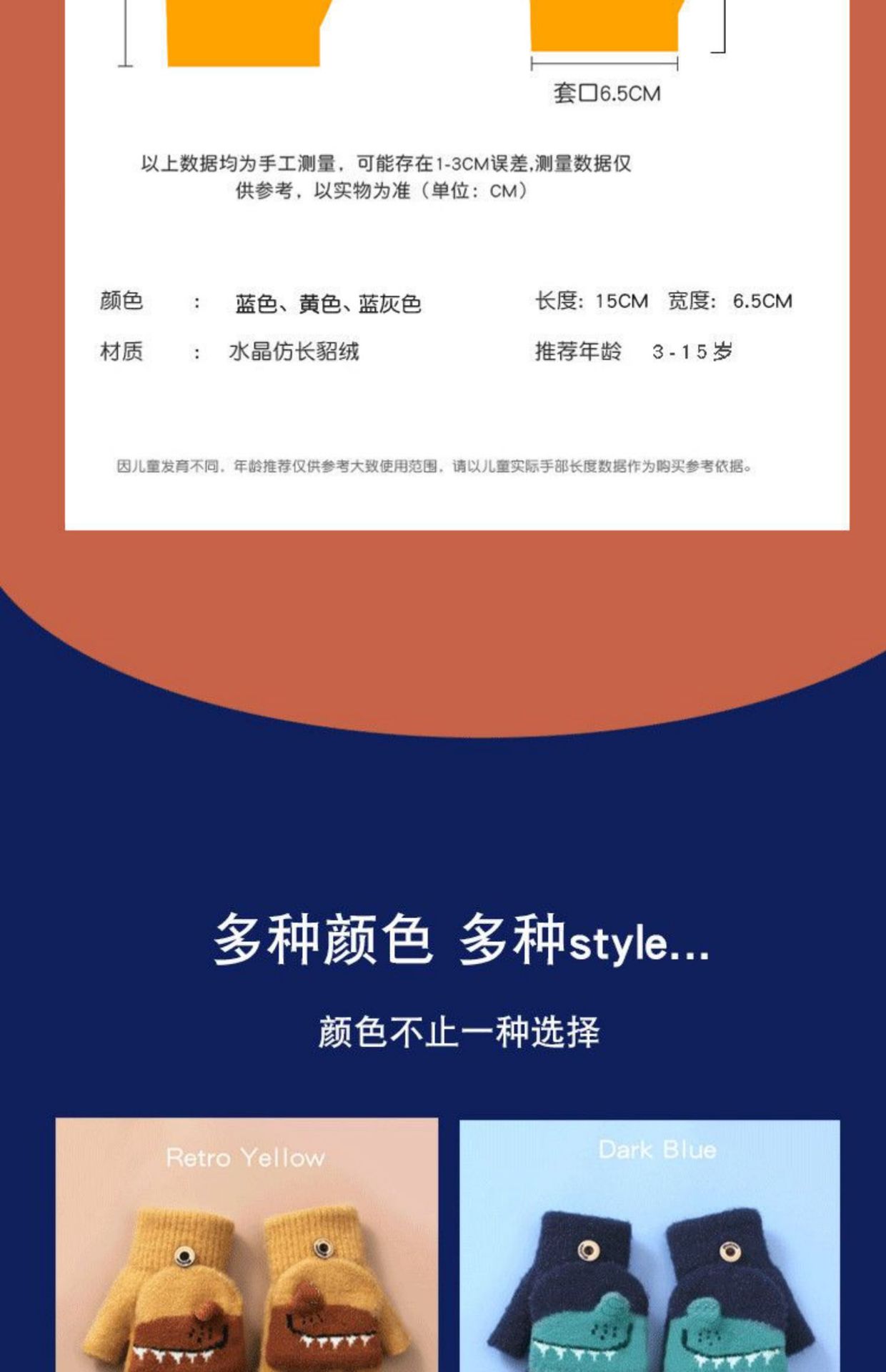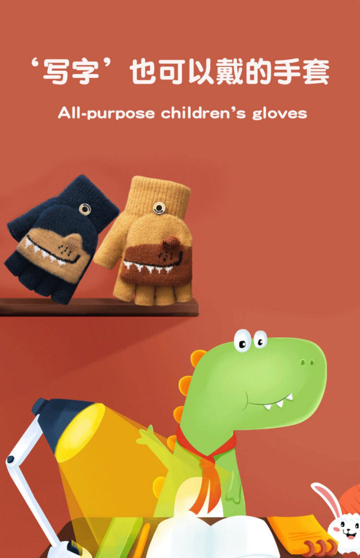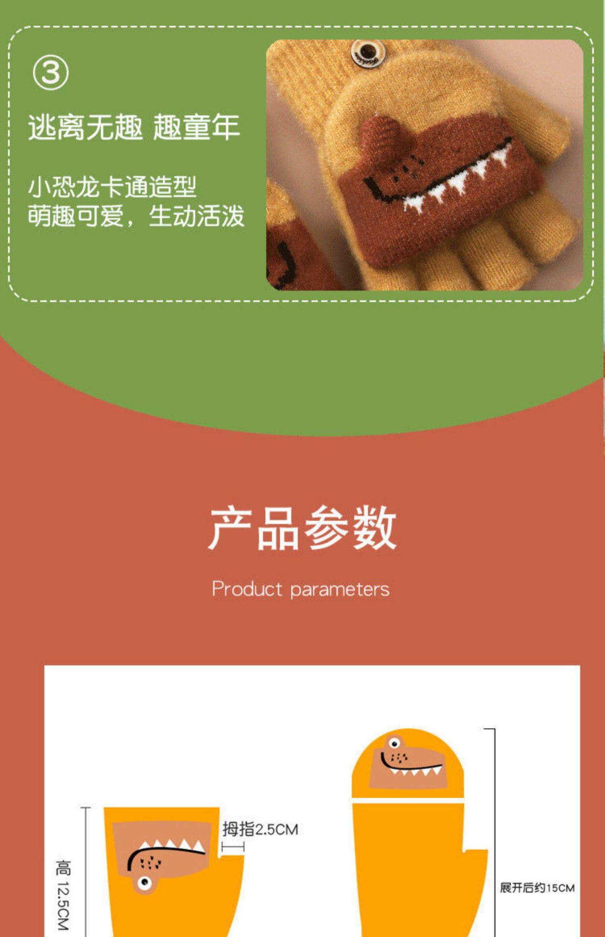 어린이 겨울 따뜻한 플립 커버 반 손가락 장갑 크리스탈 원사 밍크 머리 귀여운 작은 공룡 손가락 학생 글쓰기 장갑스토어 가기