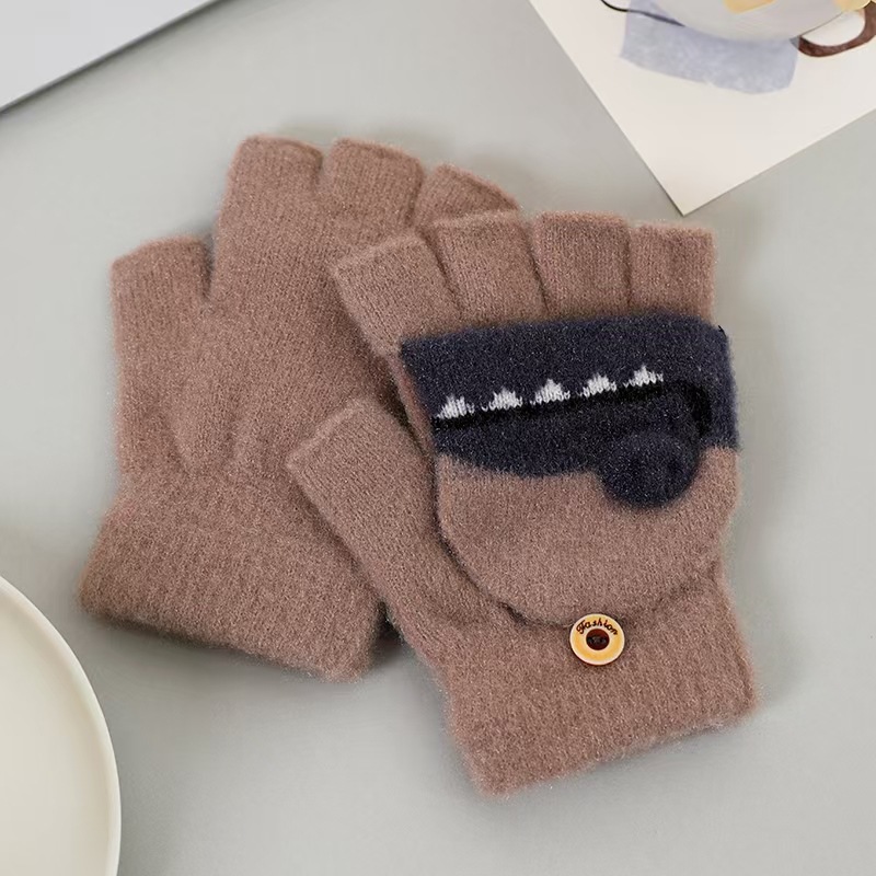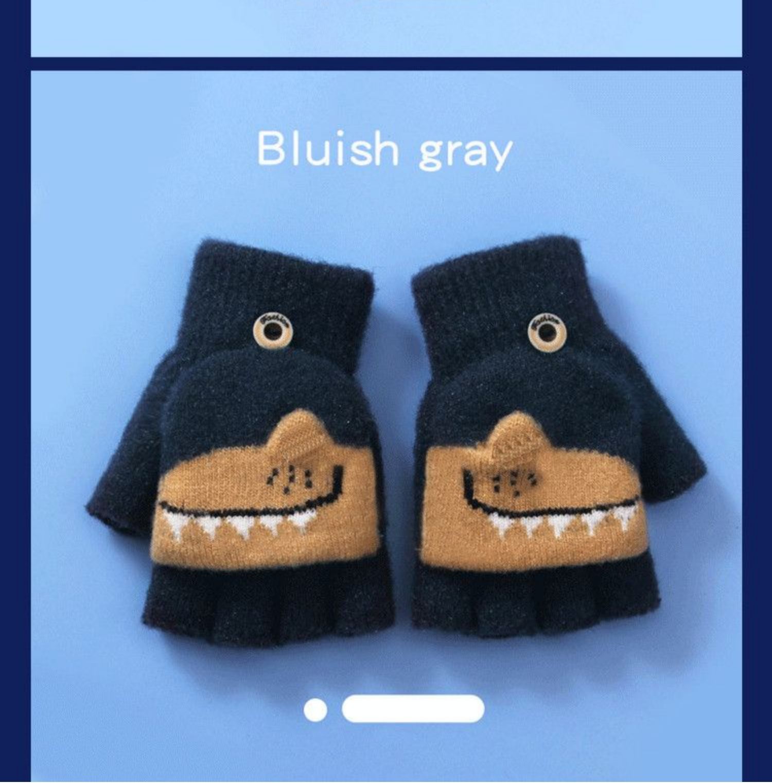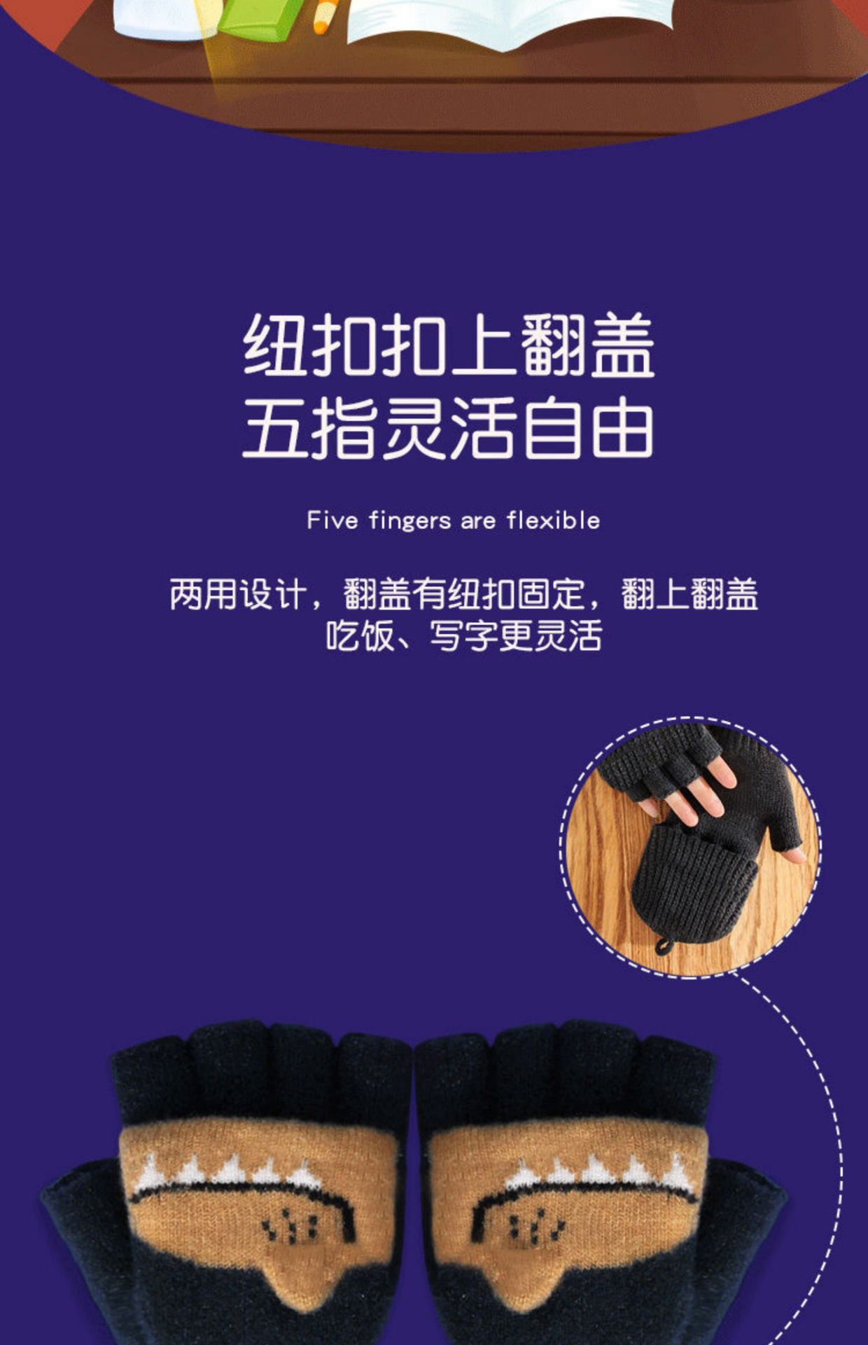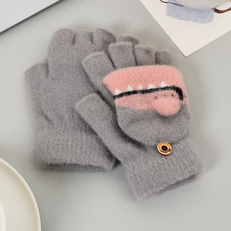 어린이 겨울 따뜻한 플립 커버 반 손가락 장갑 크리스탈 원사 밍크 머리 귀여운 작은 공룡 손가락 학생 글쓰기 장갑