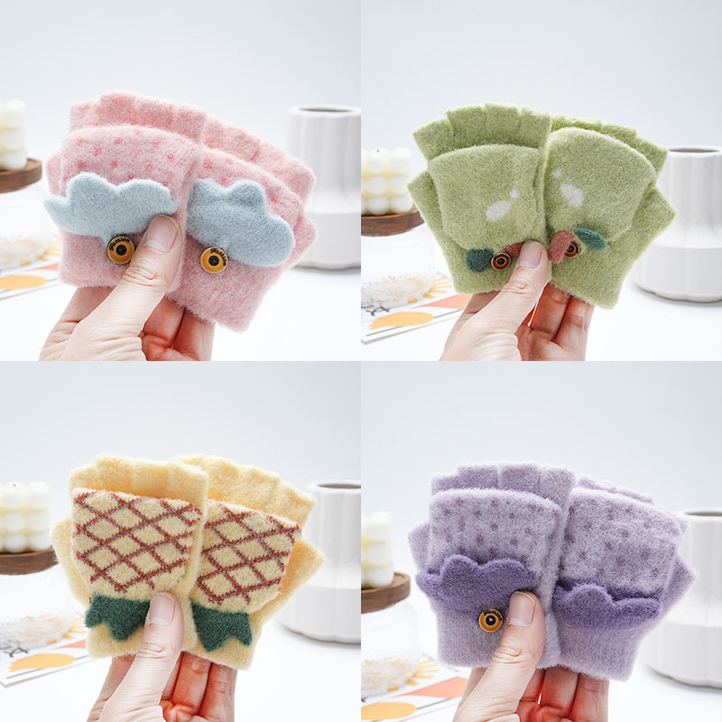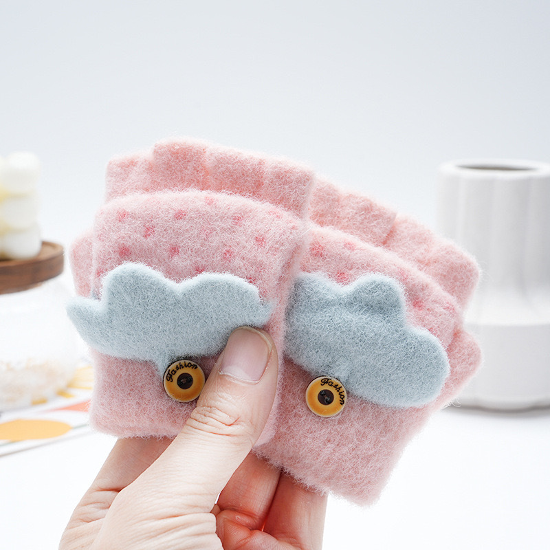 어린이 장갑 야외 감기 방지 가을과 겨울 따뜻한 방한 반 손가락 플립 만화 소녀와 소녀 공주 두꺼운 기모스토어 가기