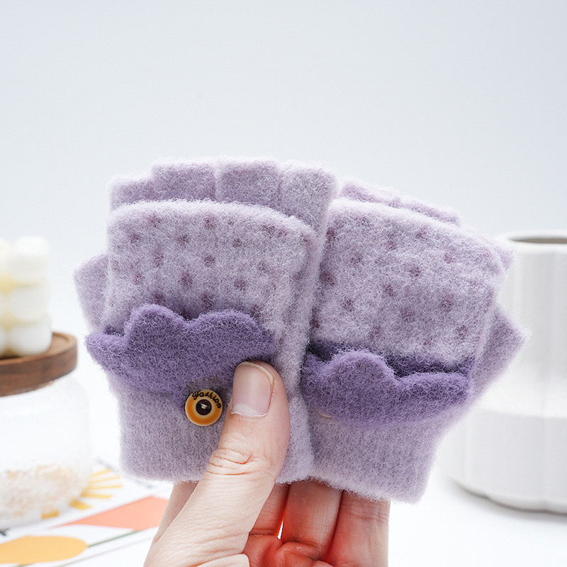 어린이 장갑 야외 감기 방지 가을과 겨울 따뜻한 방한 반 손가락 플립 만화 소녀와 소녀 공주 두꺼운 기모