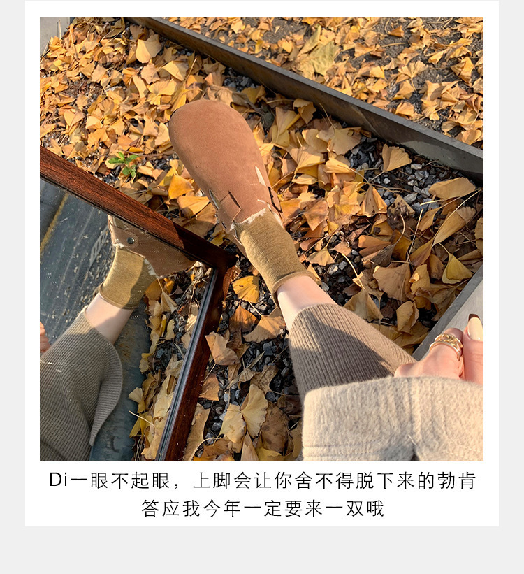 틈새 반 슬리퍼 여성의 2023 가을과 겨울 새로운 소 가죽 복고풍 뮬러 신발 평면 캐주얼 정품 가죽 추악한 귀여운 Boken 신발스토어 가기
