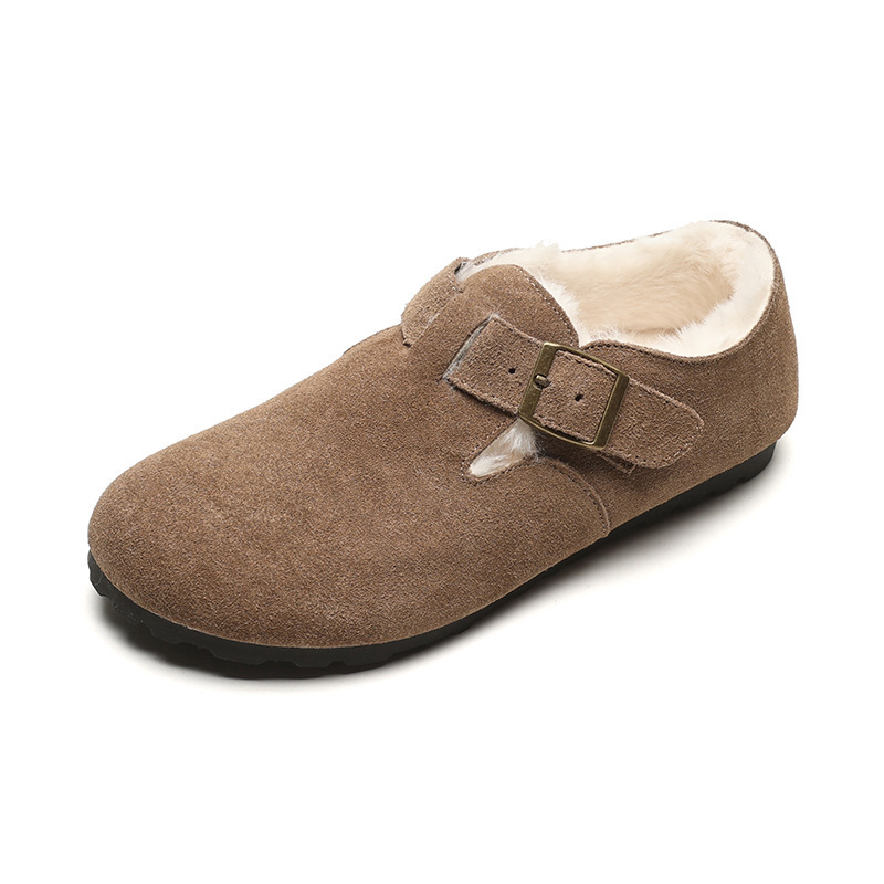 틈새 반 슬리퍼 여성의 2023 가을과 겨울 새로운 소 가죽 복고풍 뮬러 신발 평면 캐주얼 정품 가죽 추악한 귀여운 Boken 신발