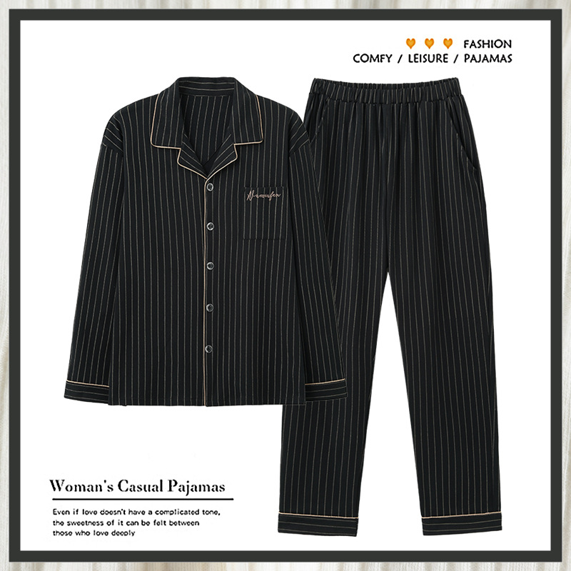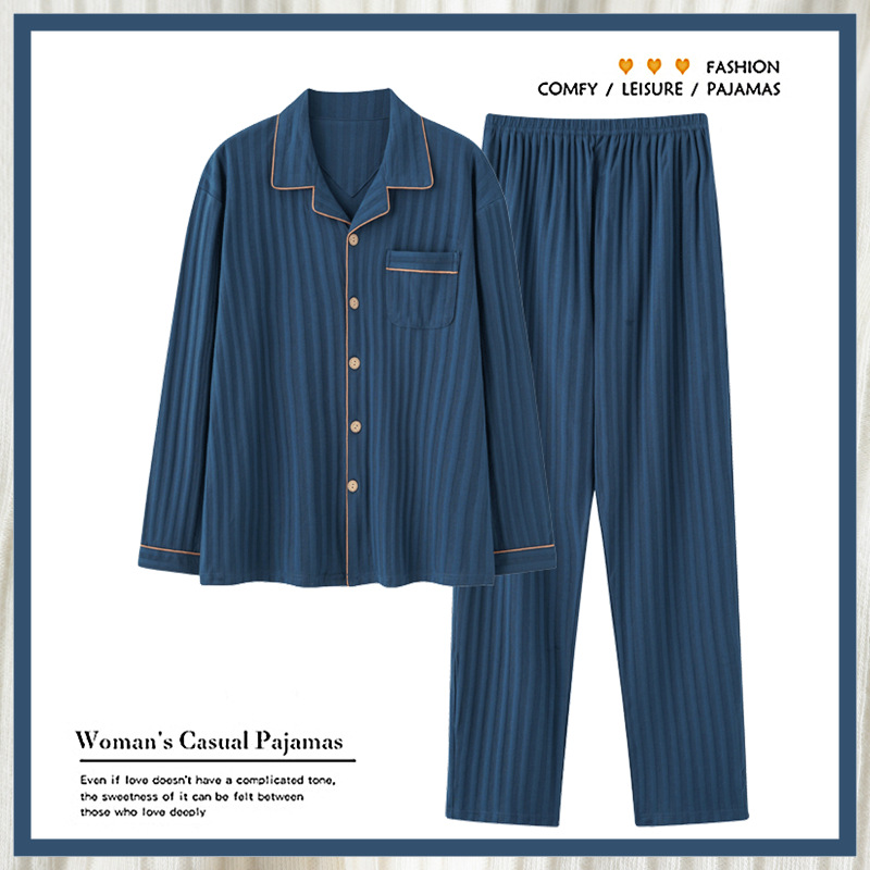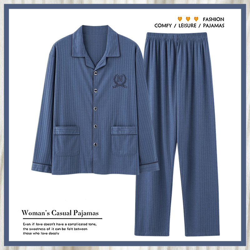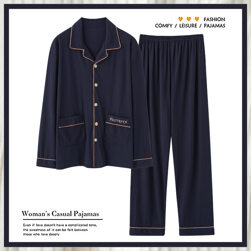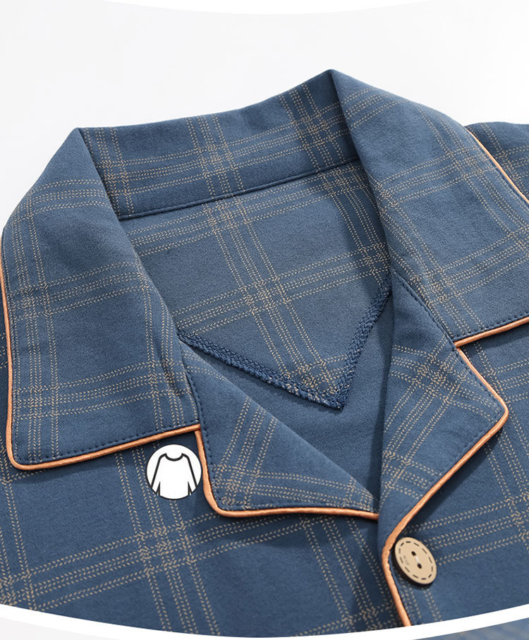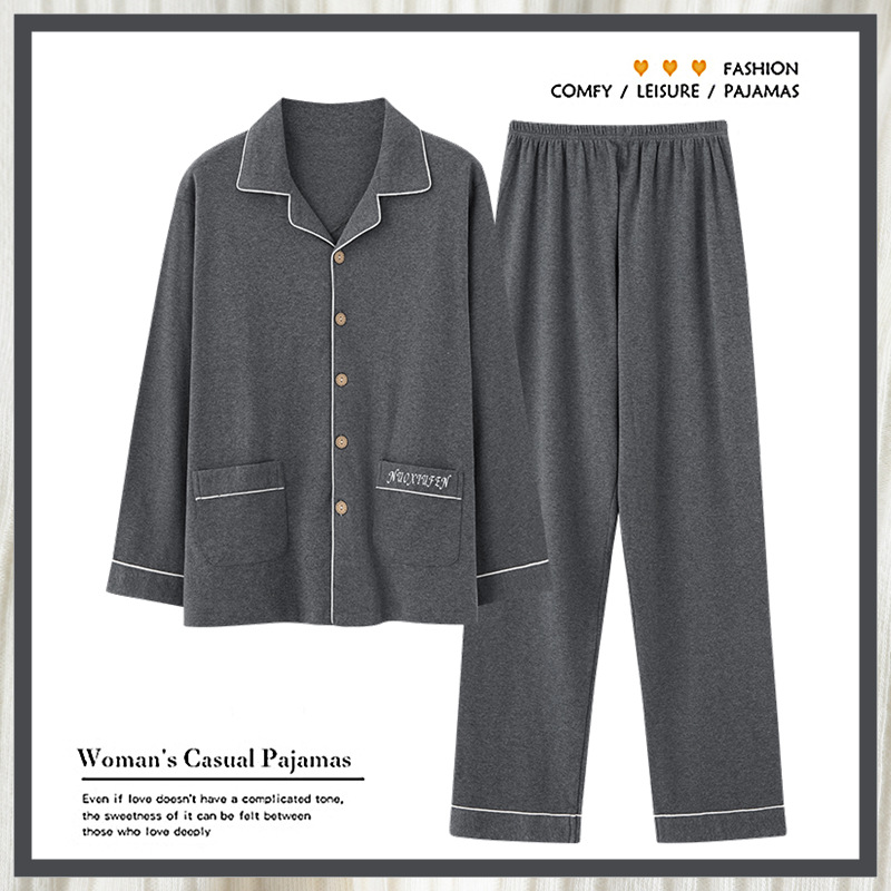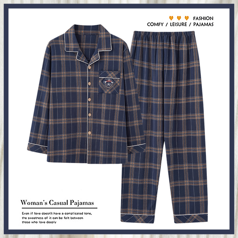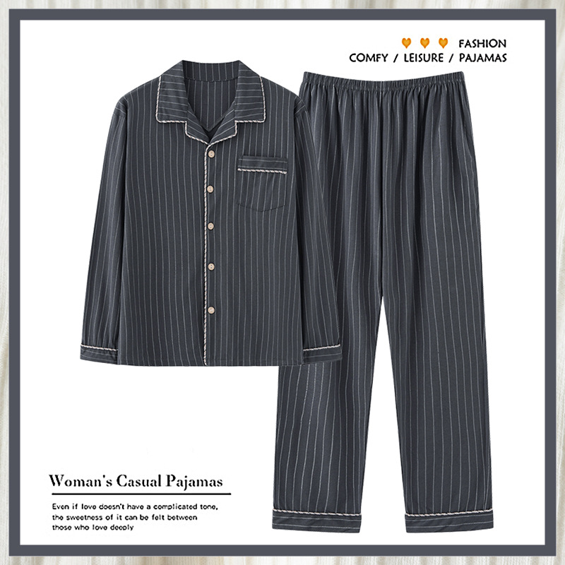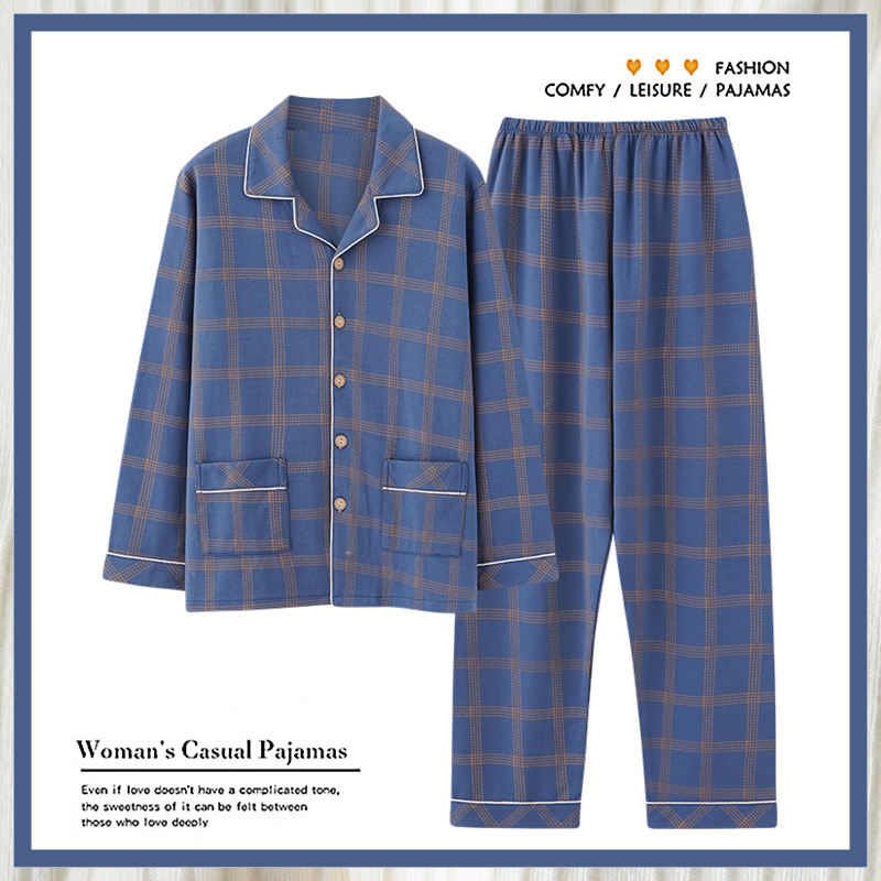 면 파자마 남성 봄과 가을 긴 소매 세트 면 얇은 격자 무늬 플러스 사이즈 간단한 겉옷 가정복 남성스토어 가기