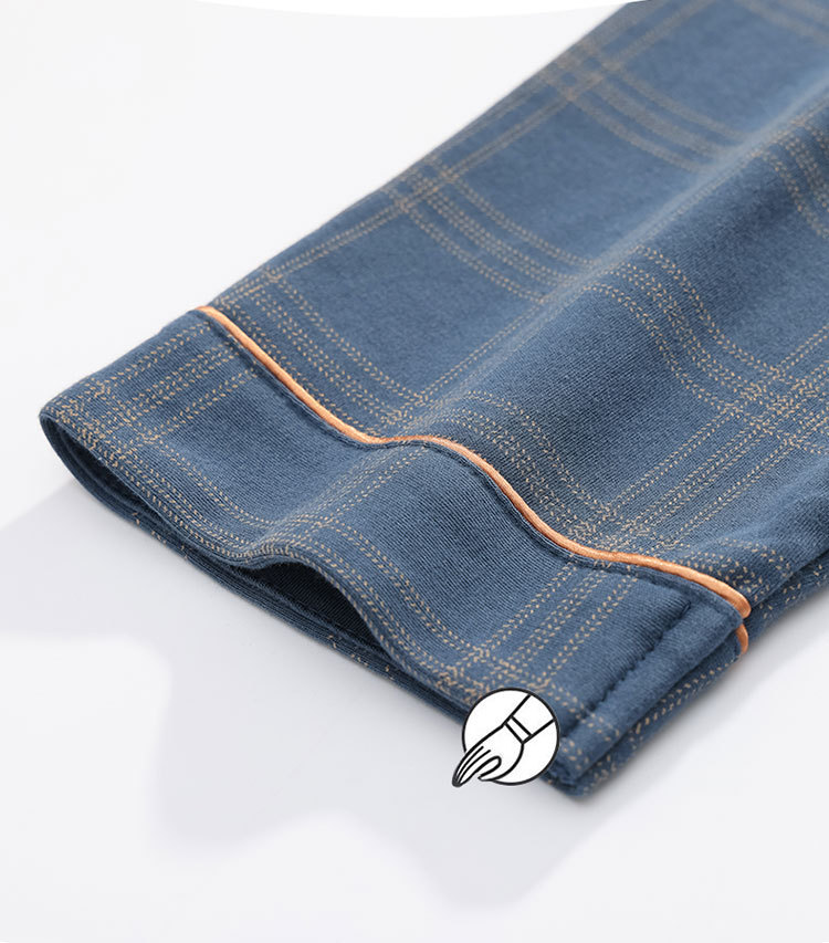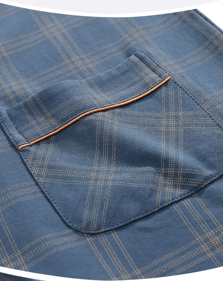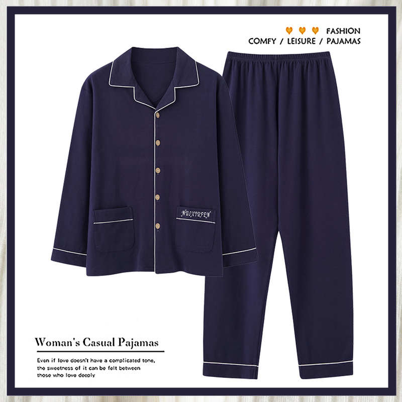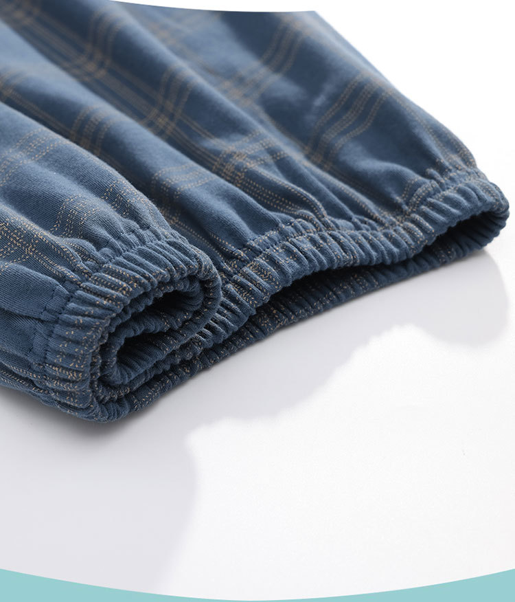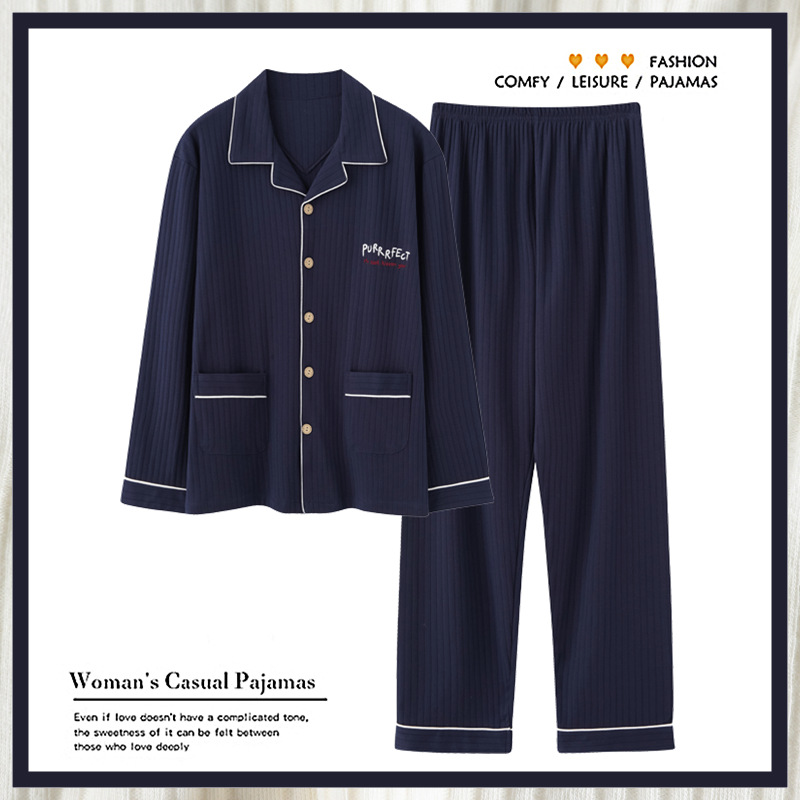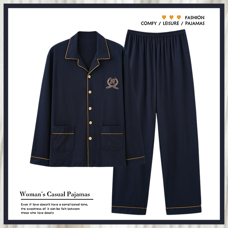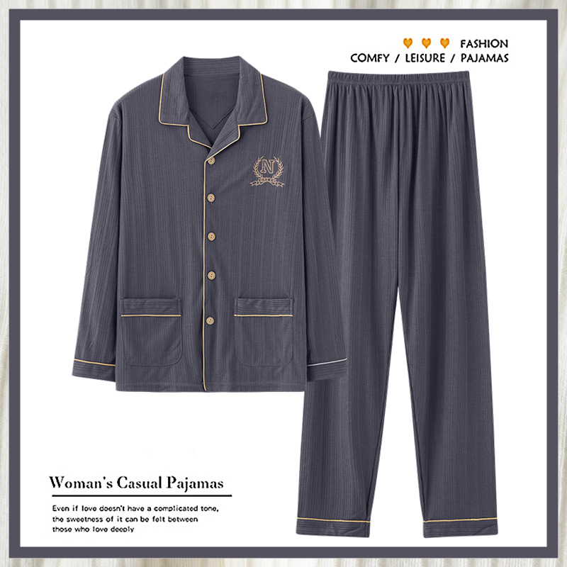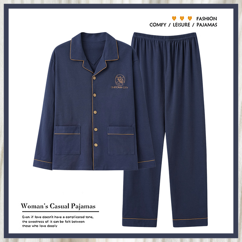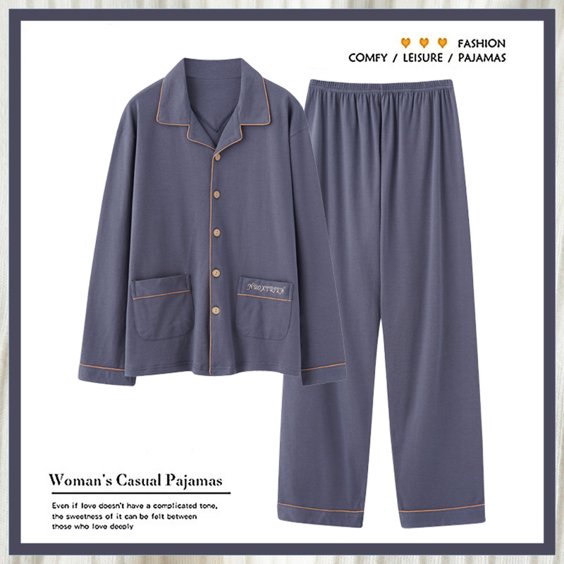 면 파자마 남성 봄과 가을 긴 소매 세트 면 얇은 격자 무늬 플러스 사이즈 간단한 겉옷 가정복 남성스토어 가기