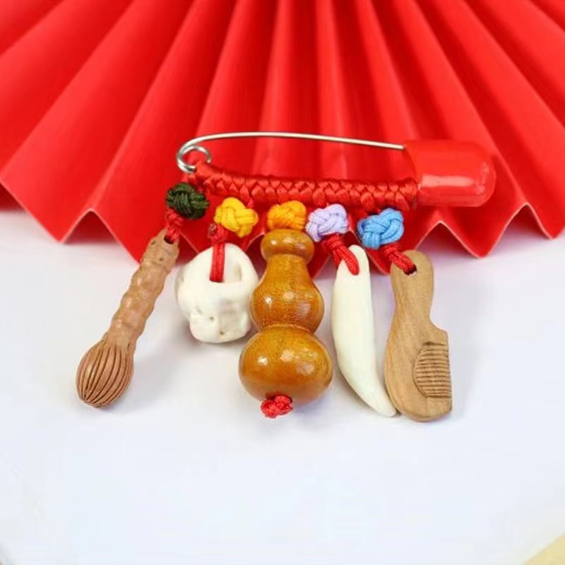 샌드 골드 핀 쥬얼리 펜던트 손으로 짠 어린이 엄마와 아기 브로치 복숭아 나무 진사 개 연꽃 치아 붉은 밧줄 민족 스타일
