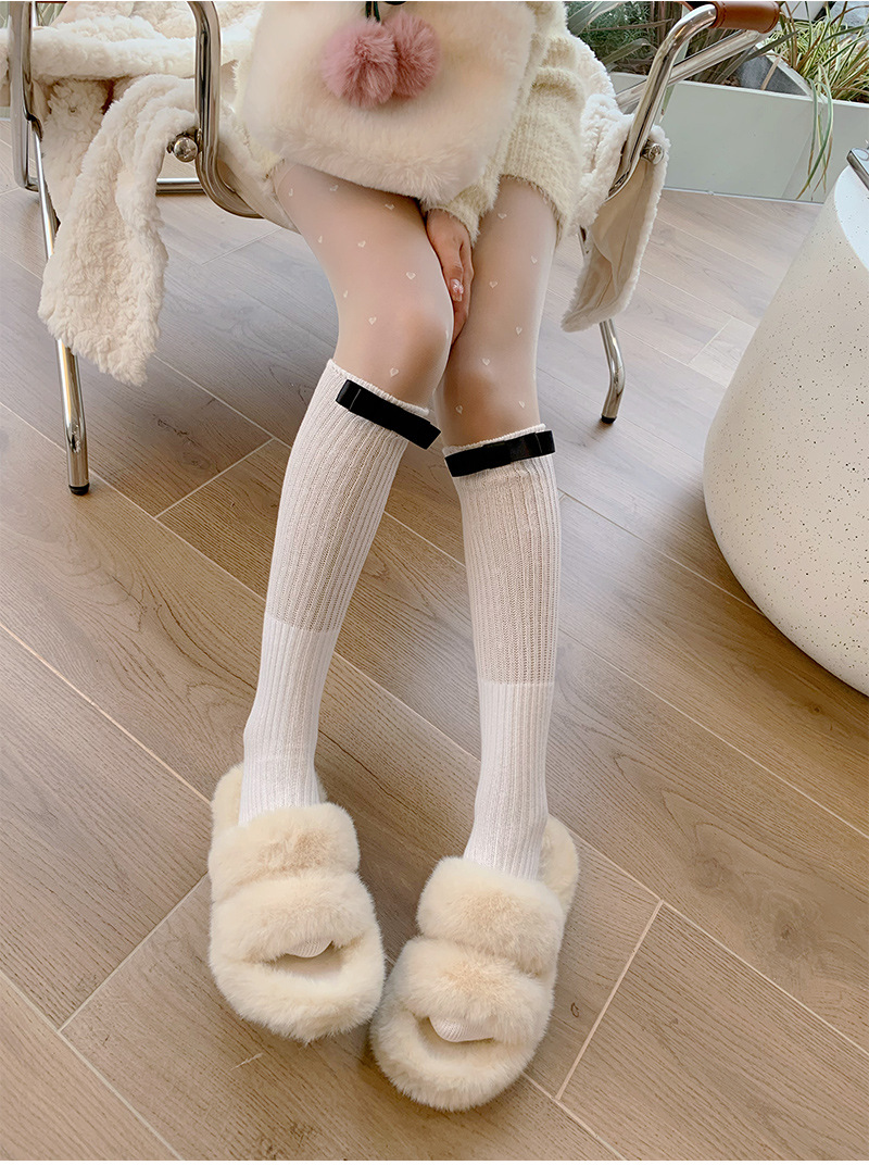 가을과 겨울에 따뜻한 달콤한 소녀 니트 코튼 활 대조 컬러 더미 양말 Maillard 중간 송아지 양말스토어 가기
