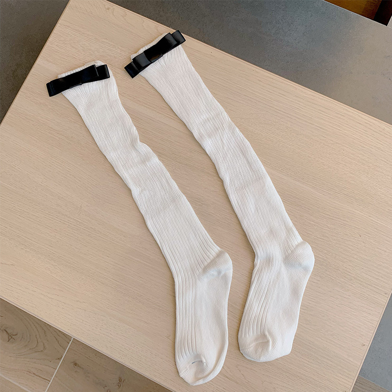 가을과 겨울에 따뜻한 달콤한 소녀 니트 코튼 활 대조 컬러 더미 양말 Maillard 중간 송아지 양말
