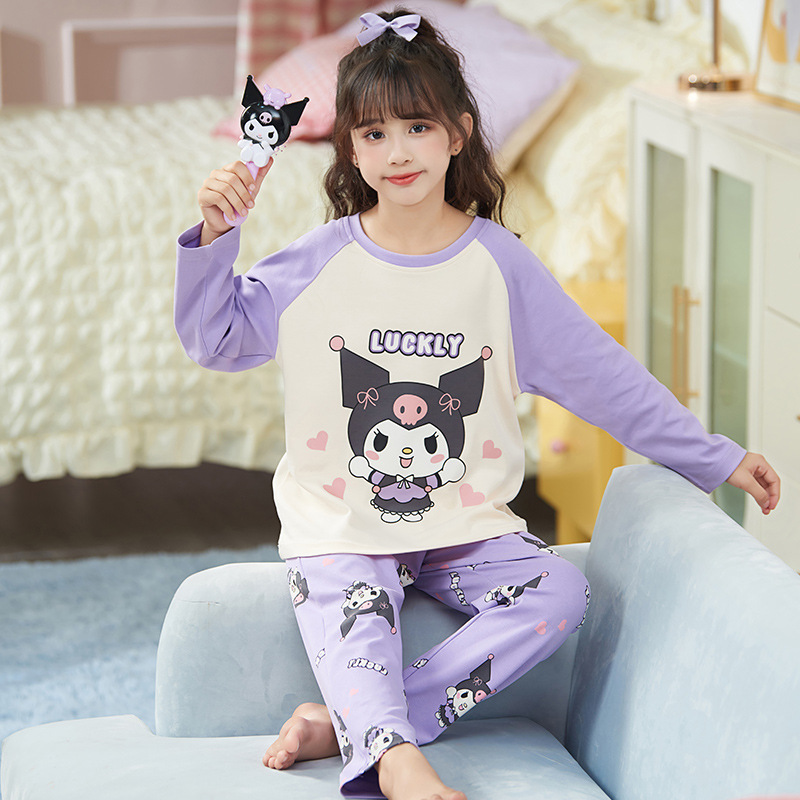봄과 가을 어린이 인공 면화 잠옷 여성용 긴팔 홈 착용 속옷 세트 만화 쿨미 잠옷 도매스토어 가기