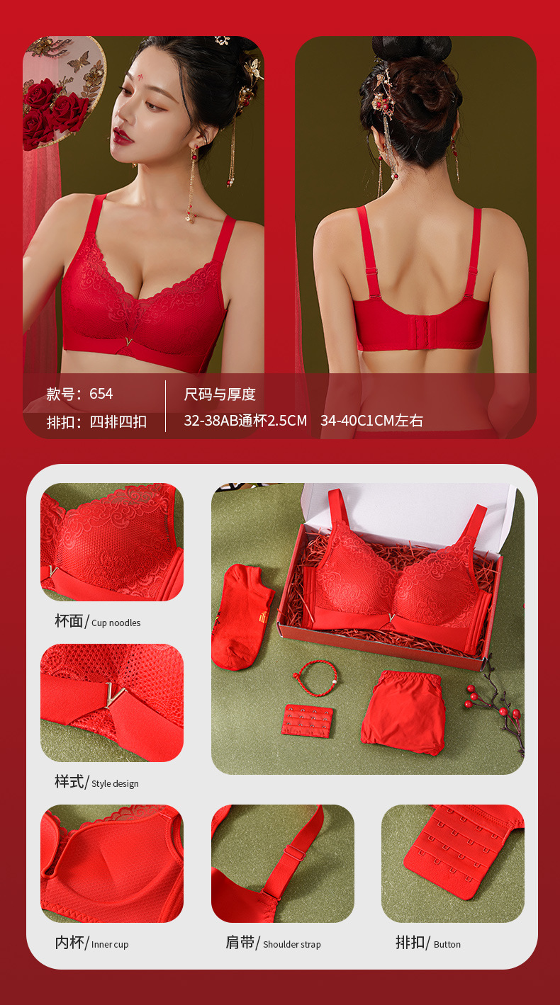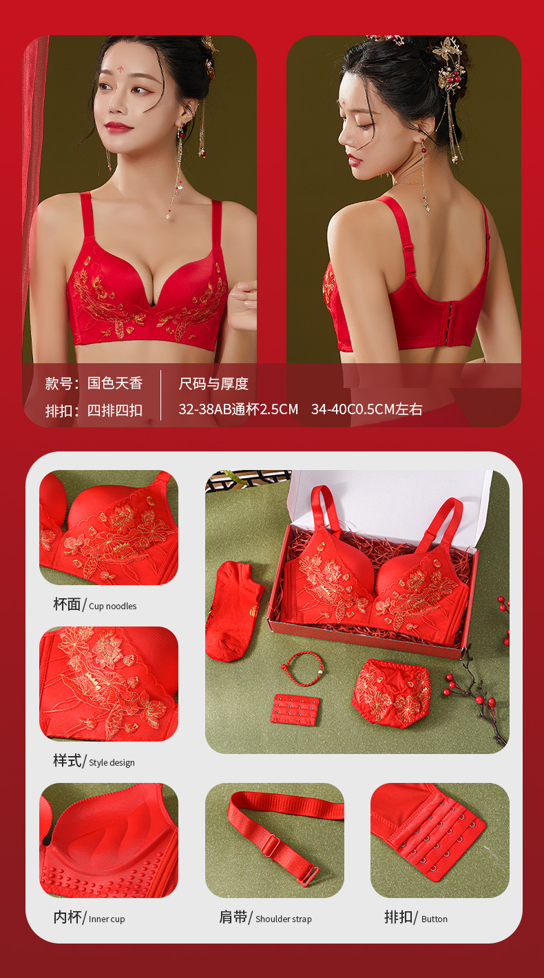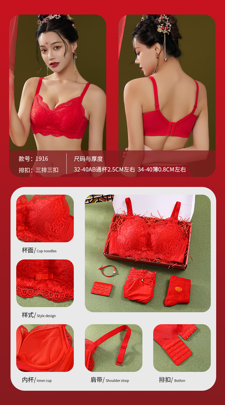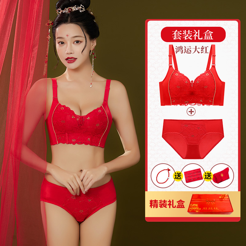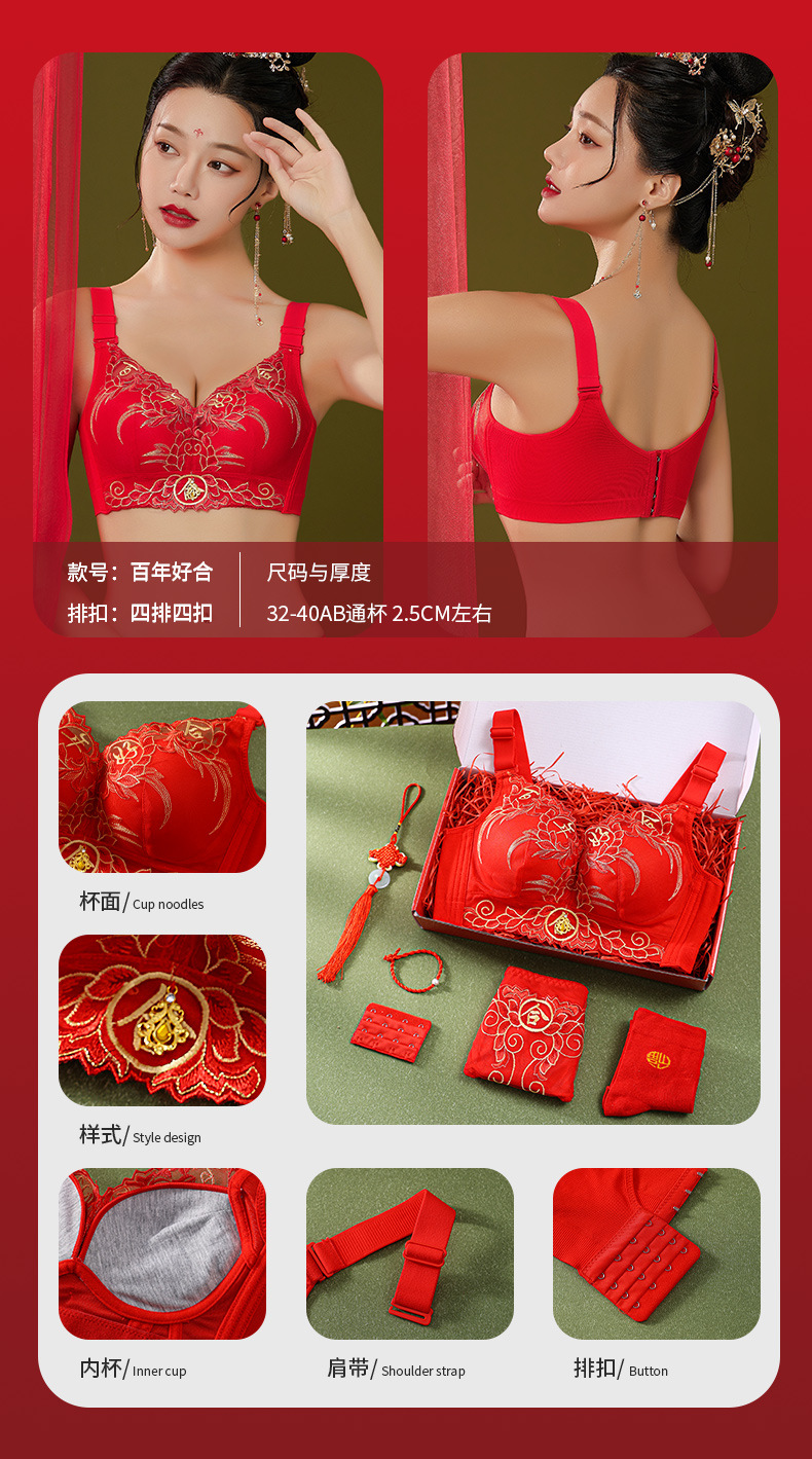 토끼의 해 결혼식 신부를위한 큰 빨간 연못 속옷 세트 여성의 작은 가슴 모임 파라머 브라