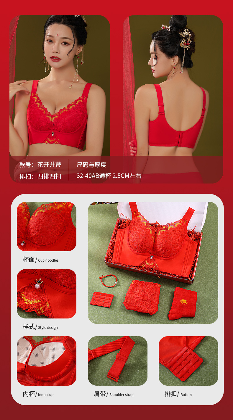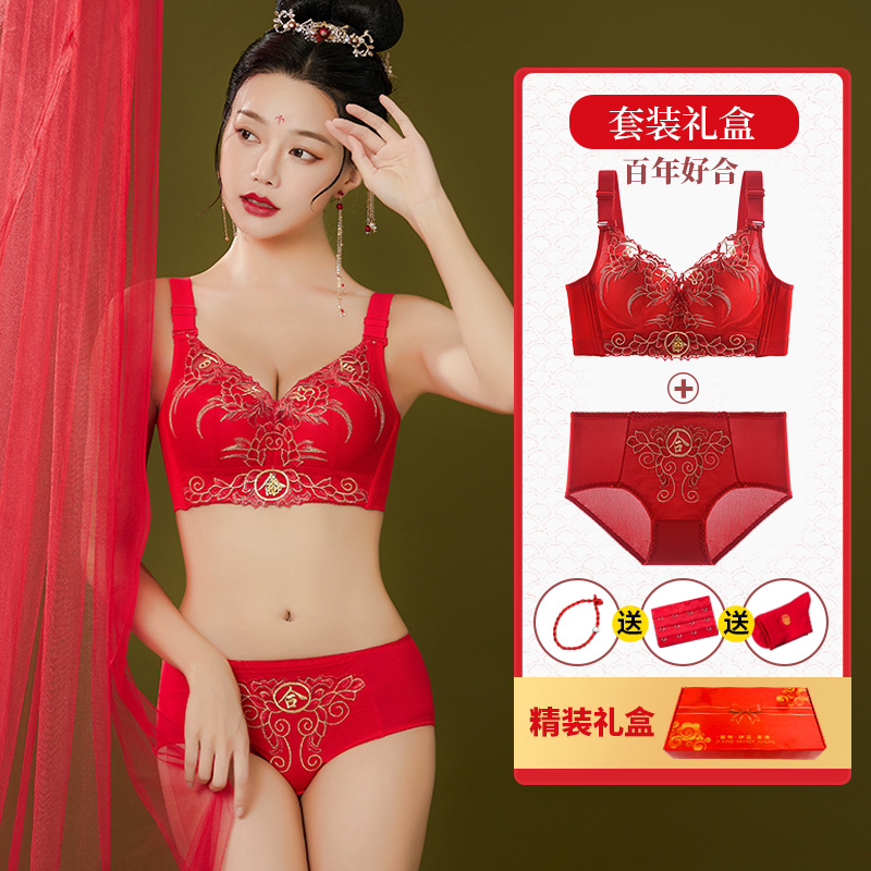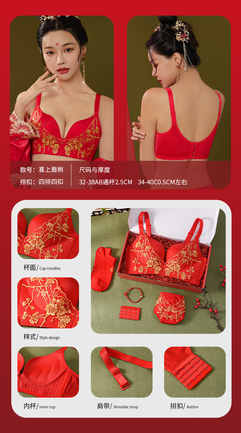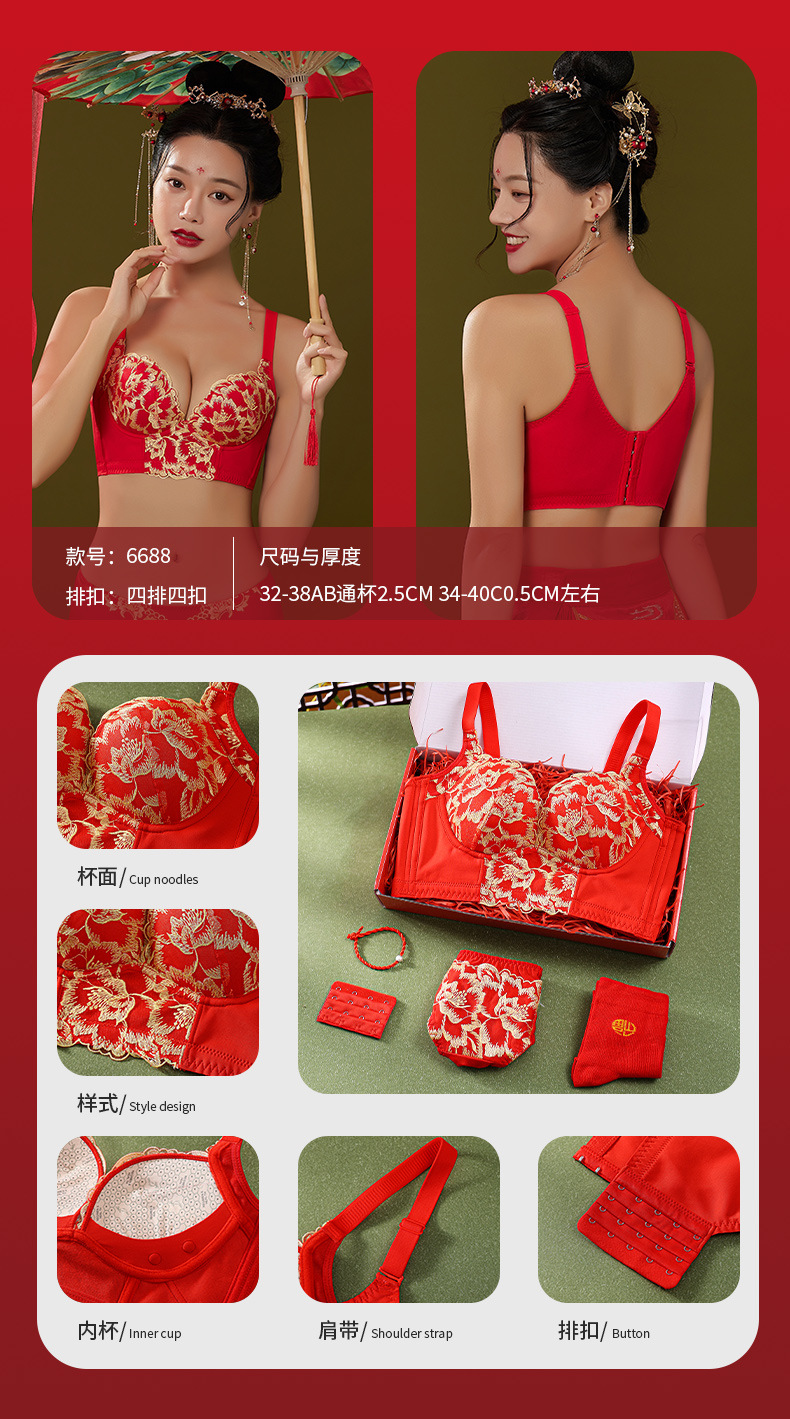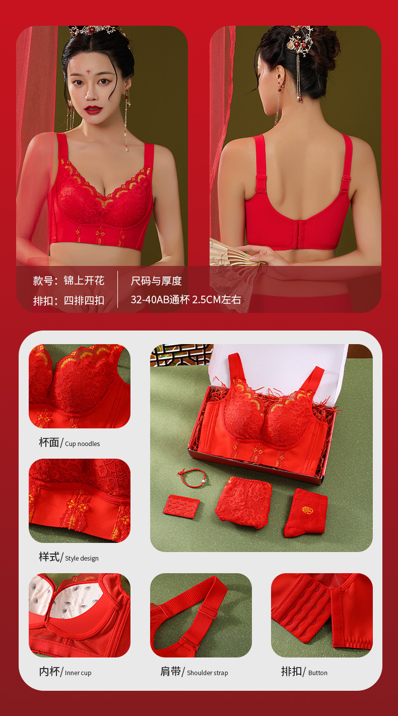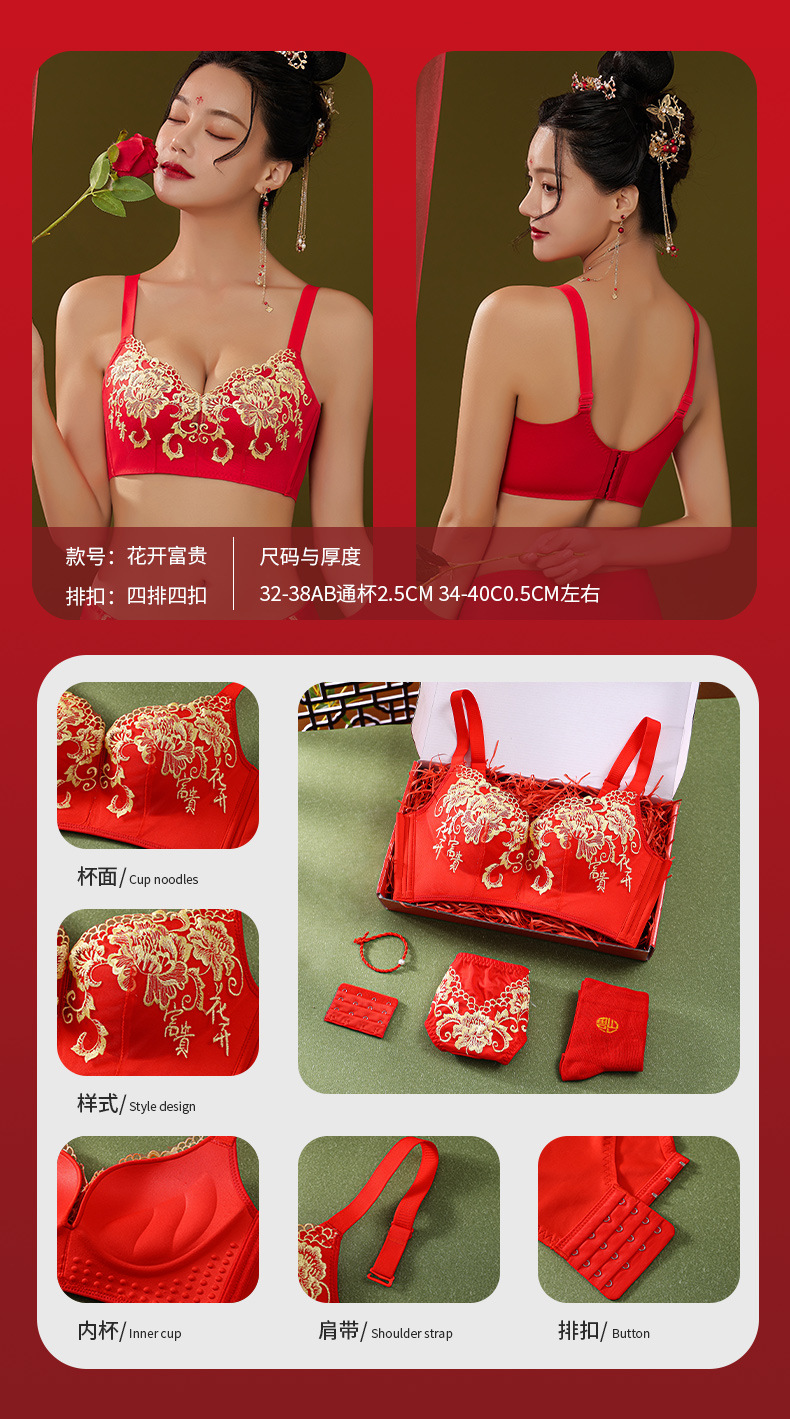 토끼의 해 결혼식 신부를위한 큰 빨간 연못 속옷 세트 여성의 작은 가슴 모임 파라머 브라