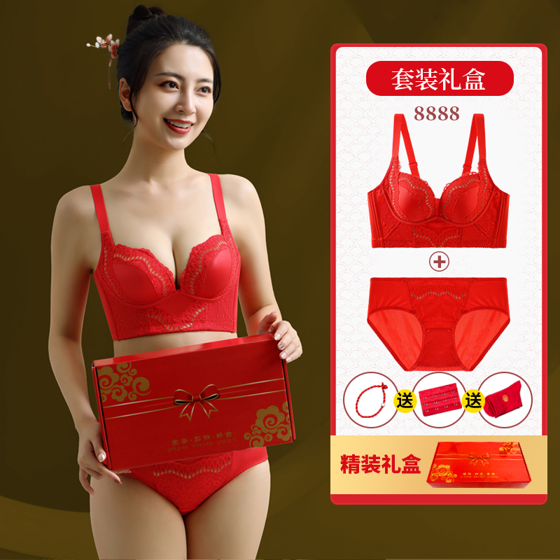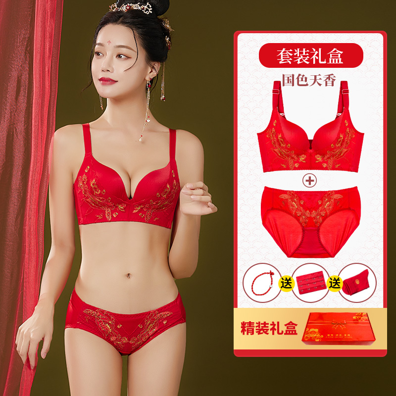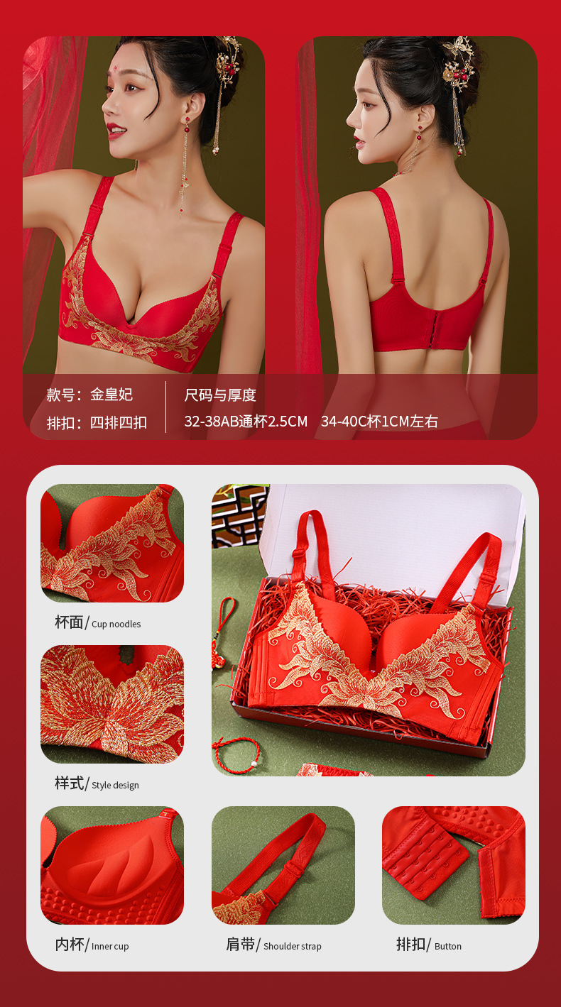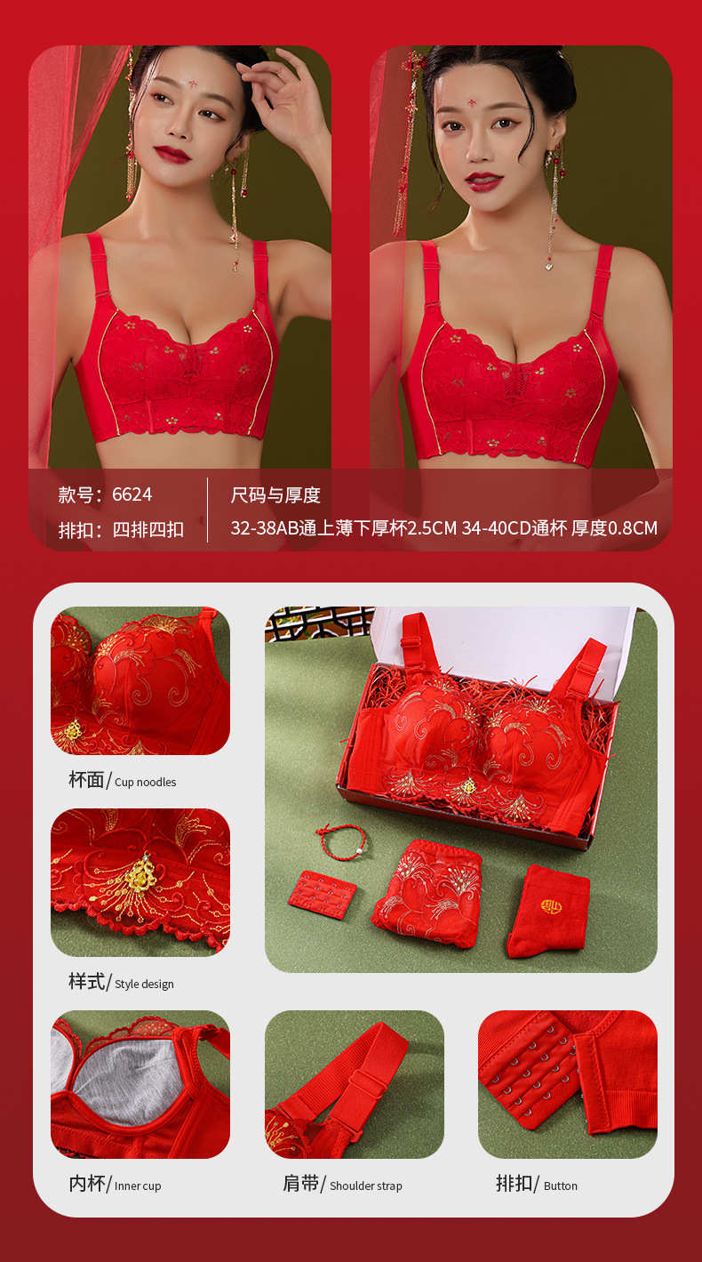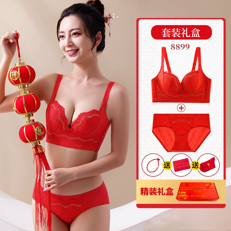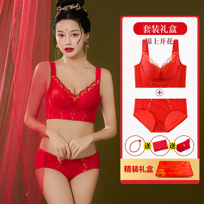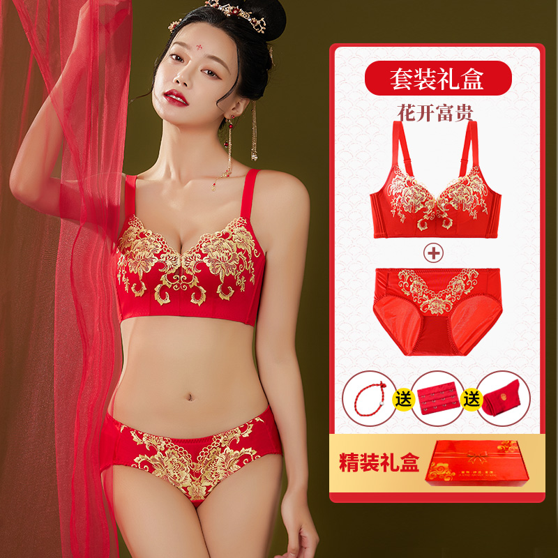 토끼의 해 결혼식 신부를위한 큰 빨간 연못 속옷 세트 여성의 작은 가슴 모임 파라머 브라