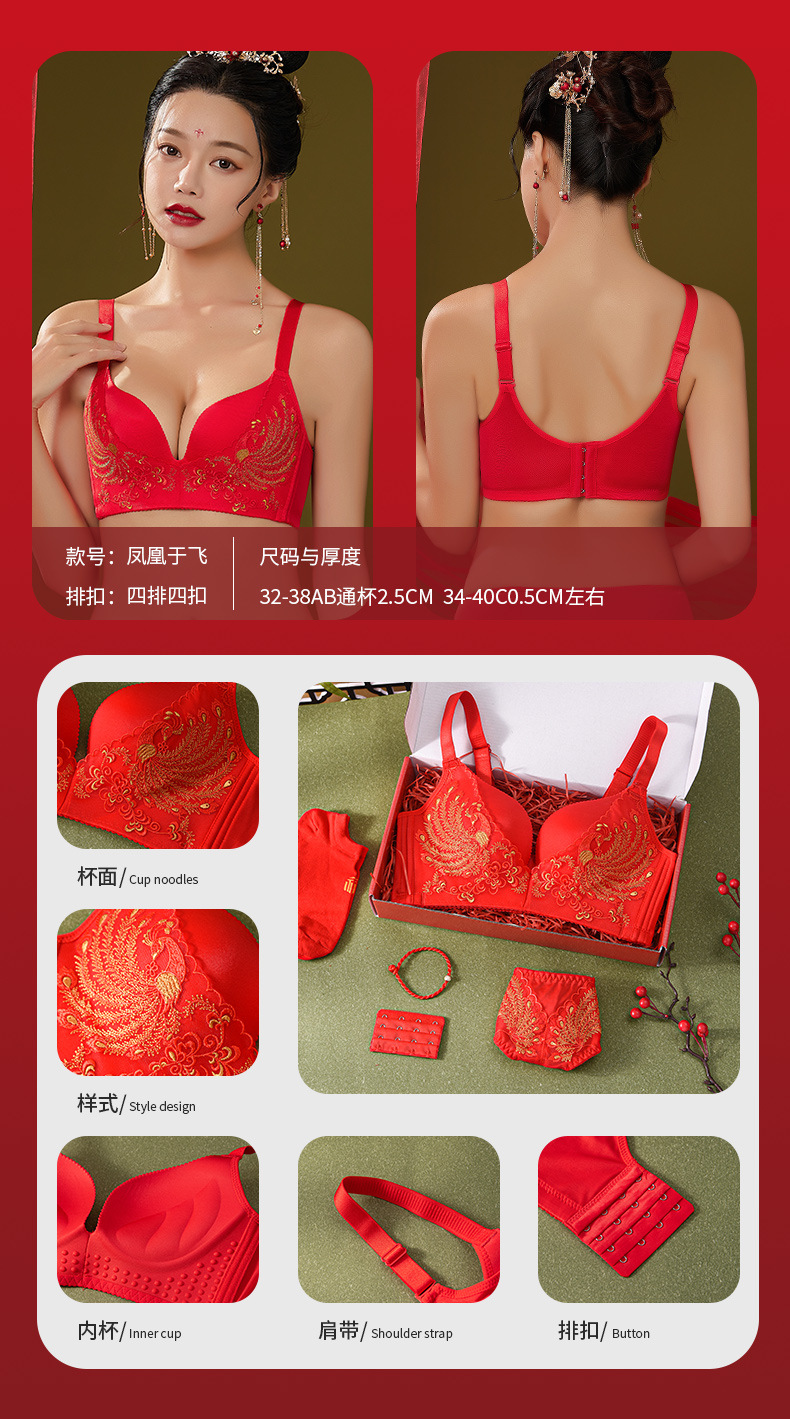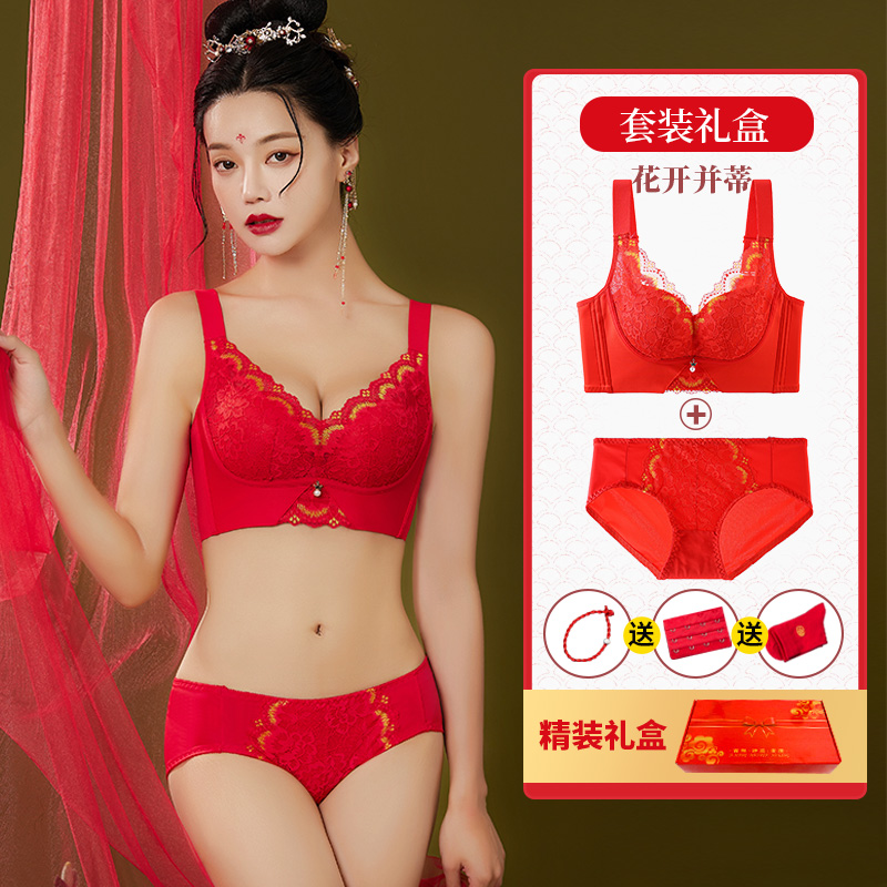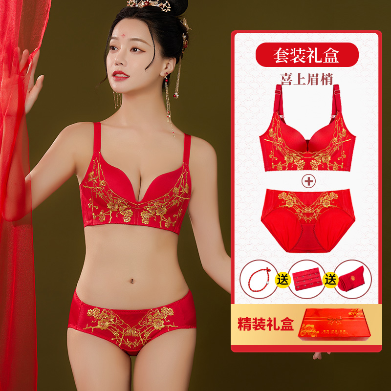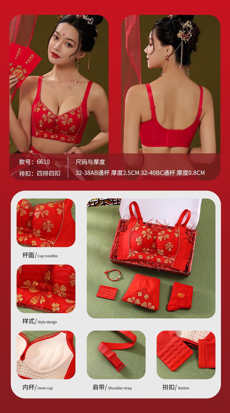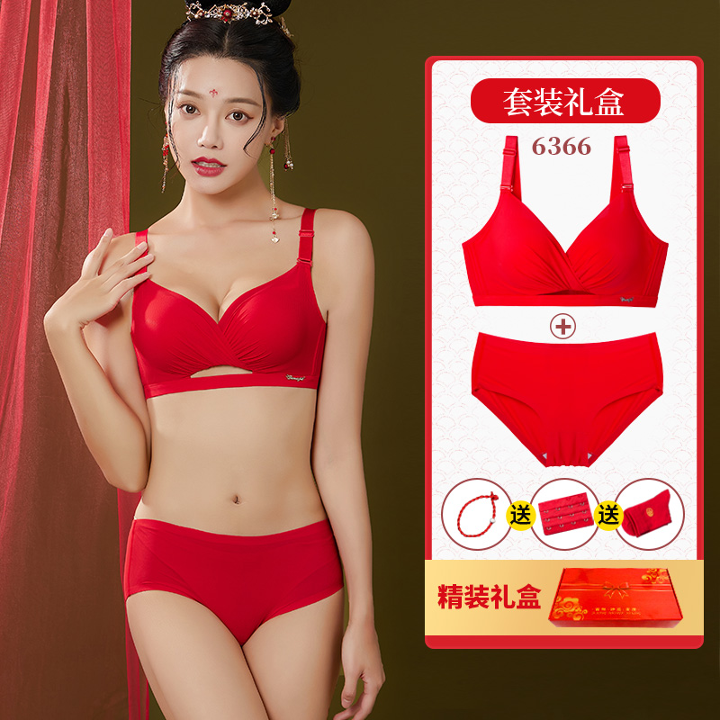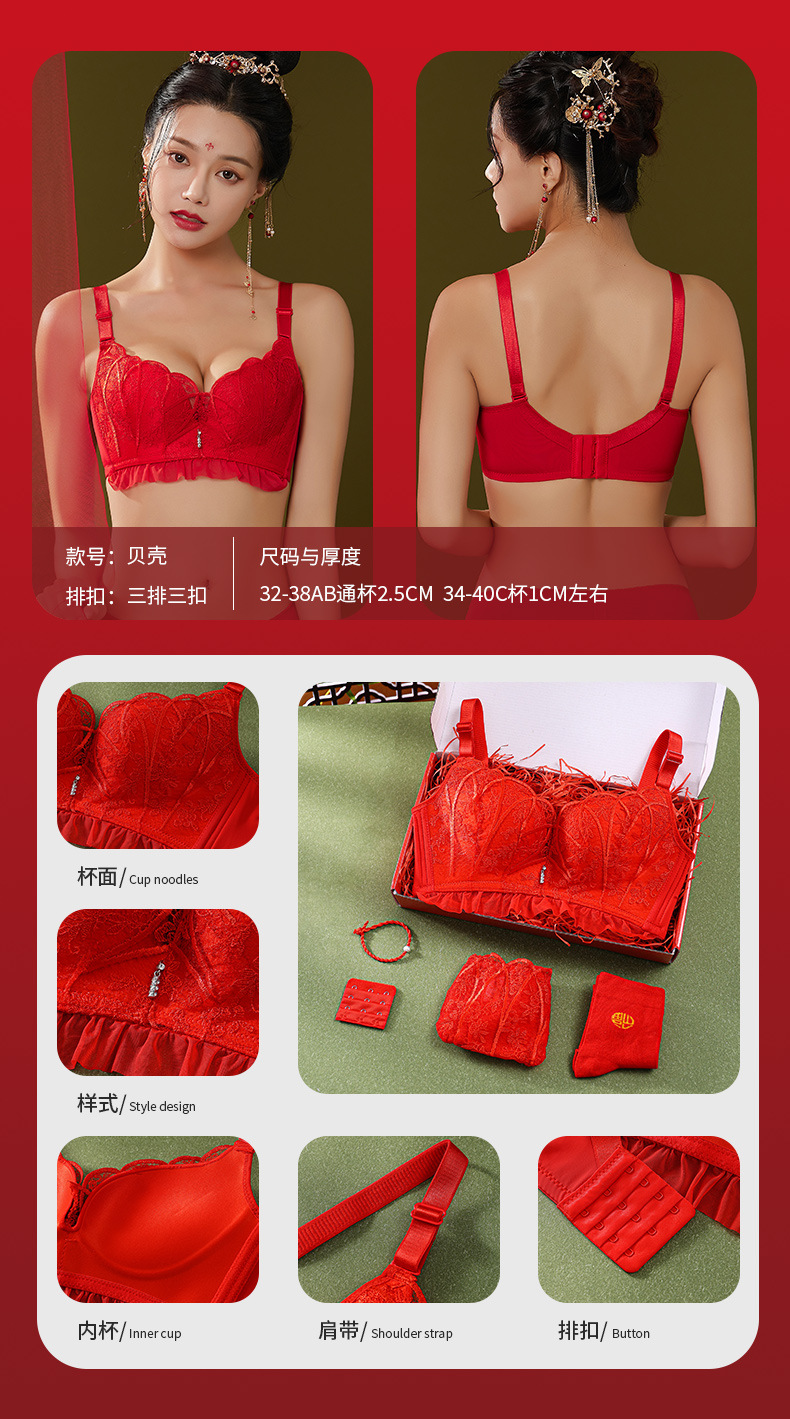 토끼의 해 결혼식 신부를위한 큰 빨간 연못 속옷 세트 여성의 작은 가슴 모임 파라머 브라
