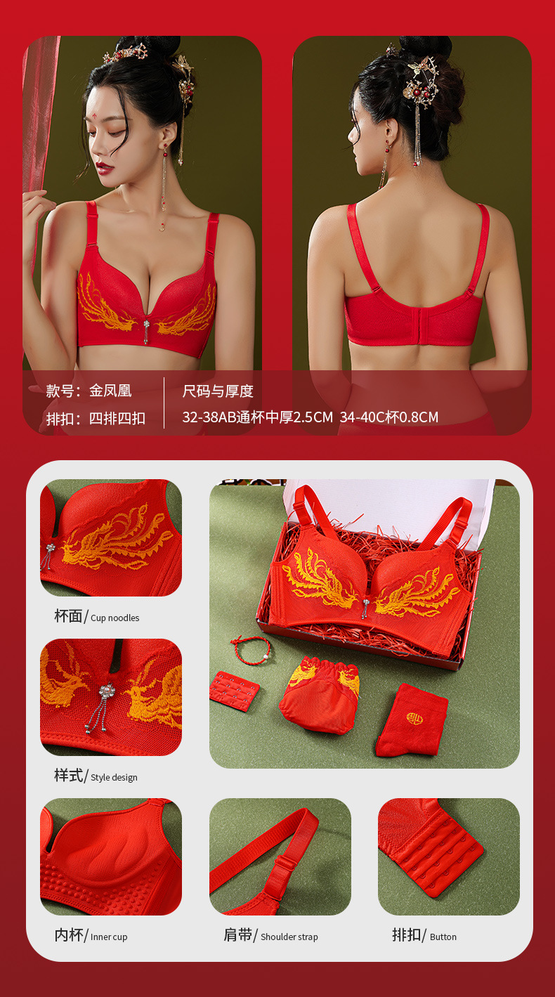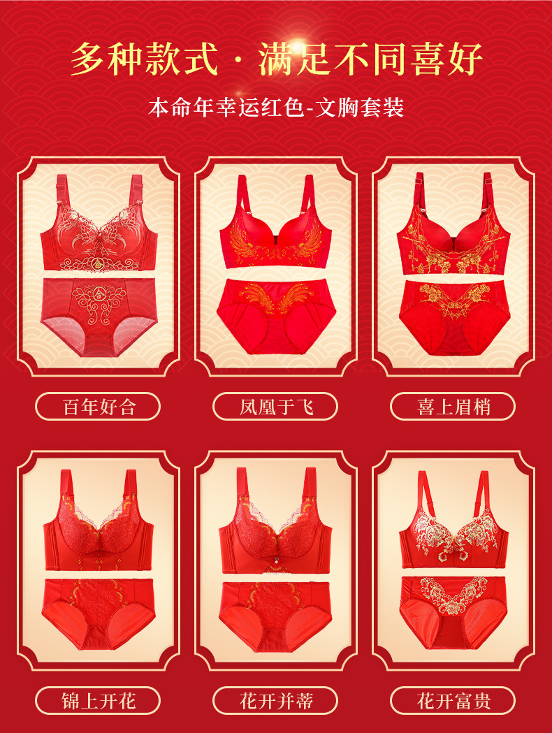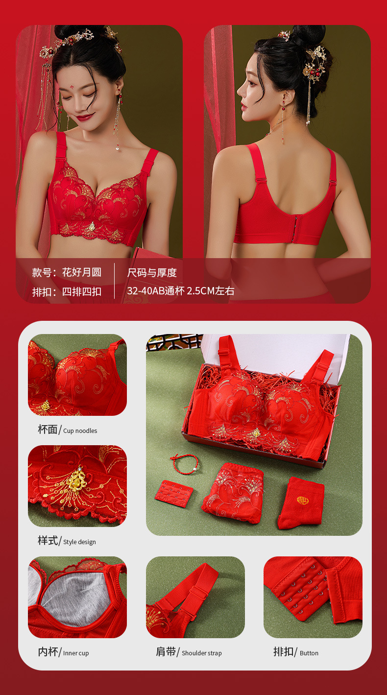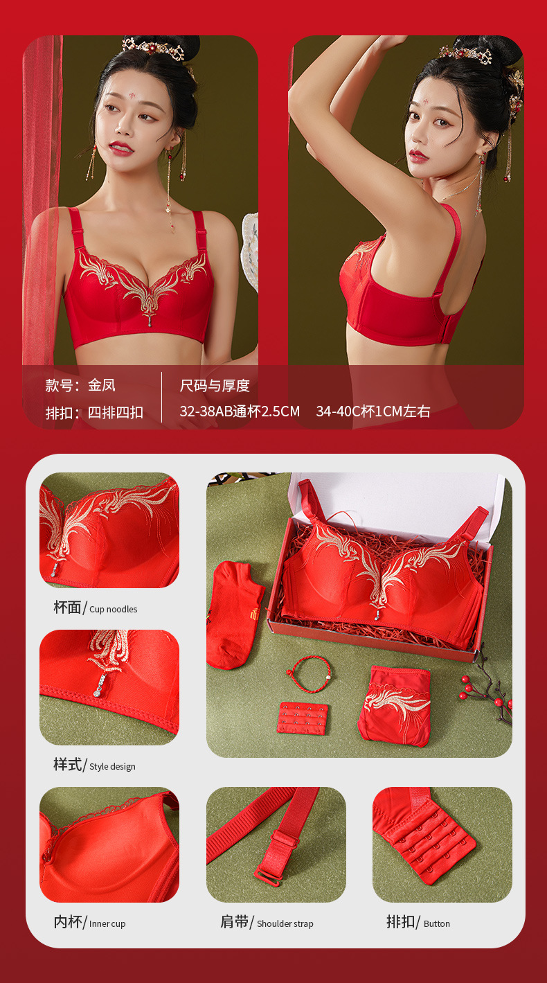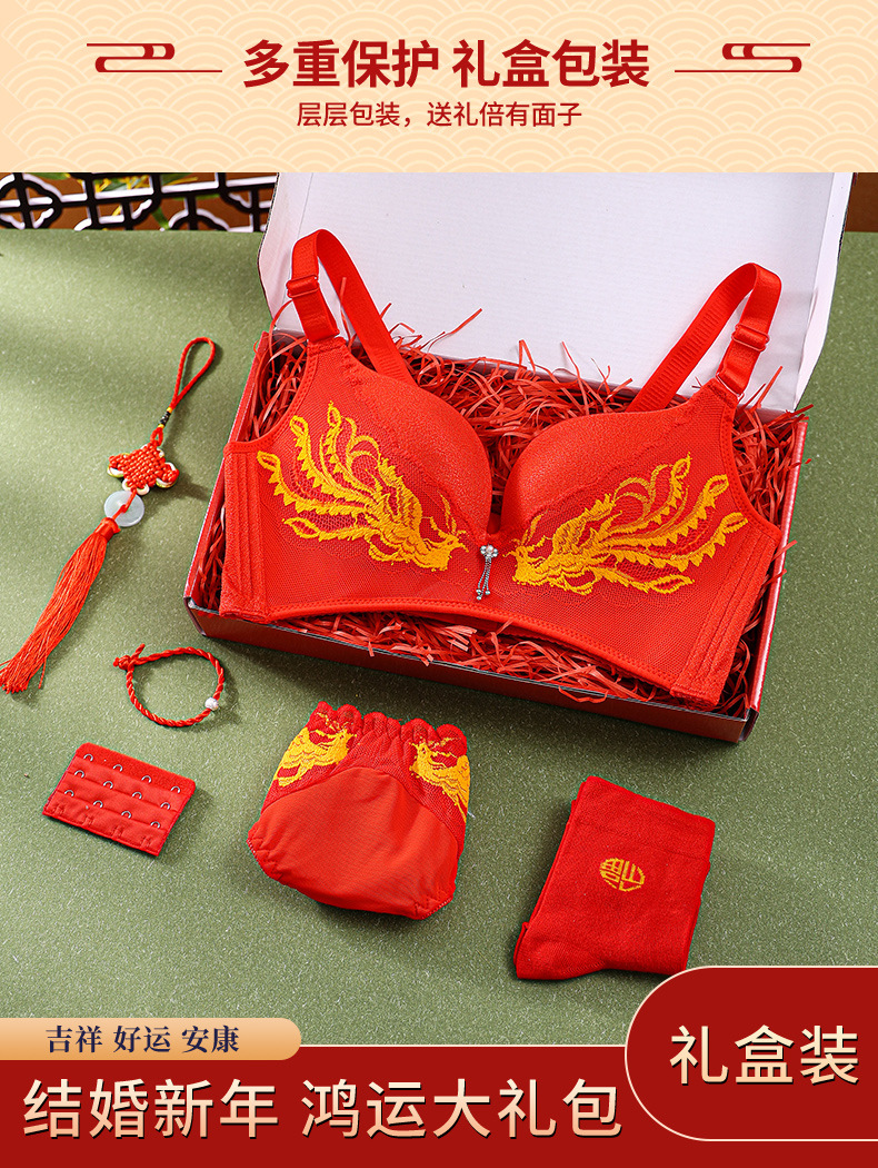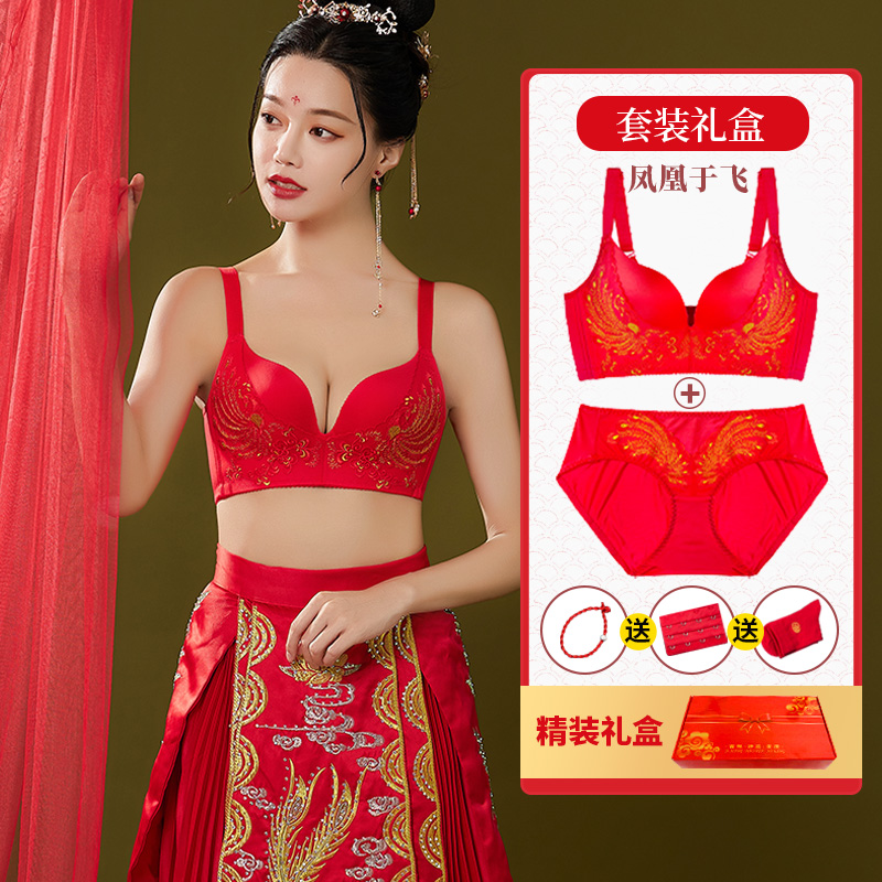 토끼의 해 결혼식 신부를위한 큰 빨간 연못 속옷 세트 여성의 작은 가슴 모임 파라머 브라