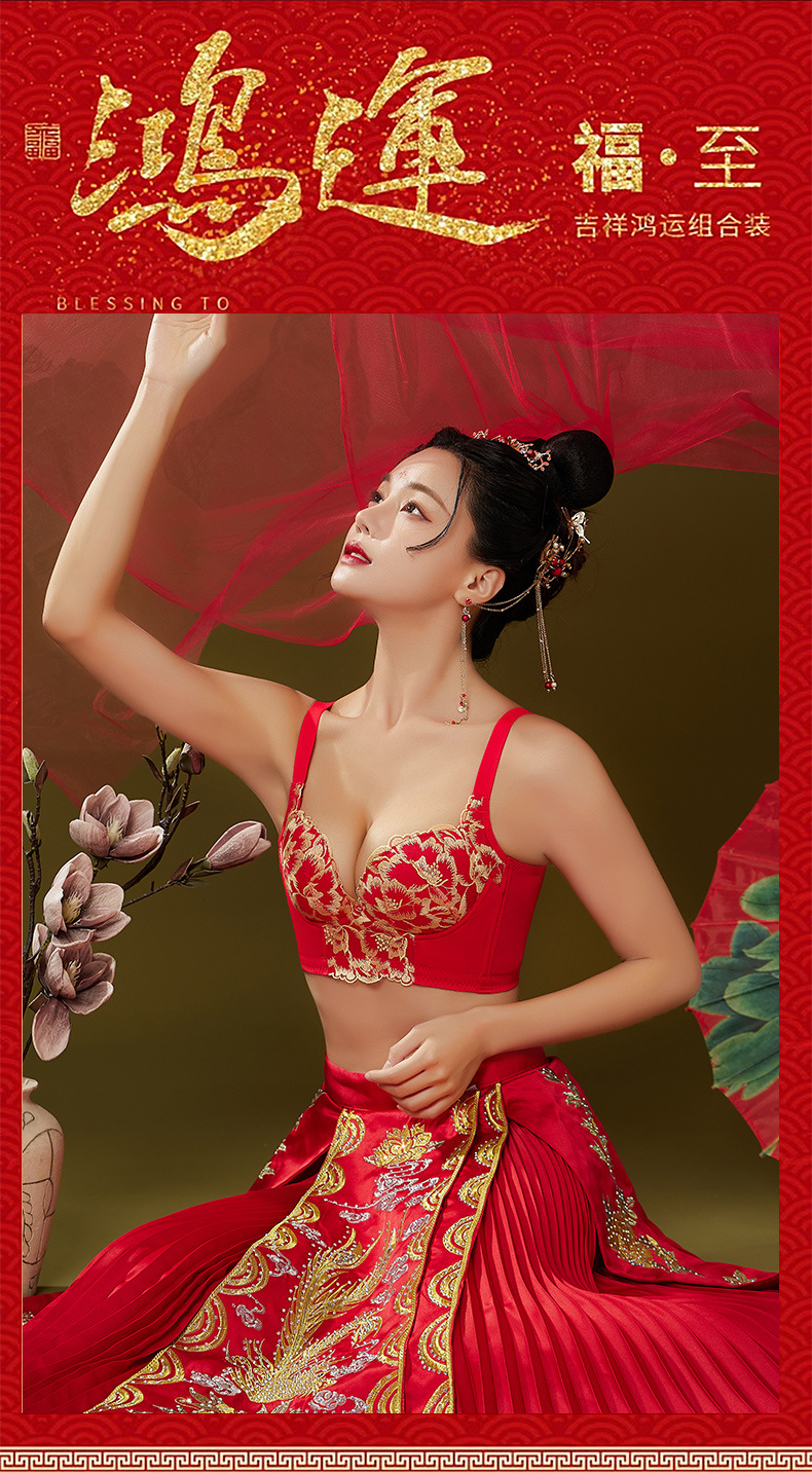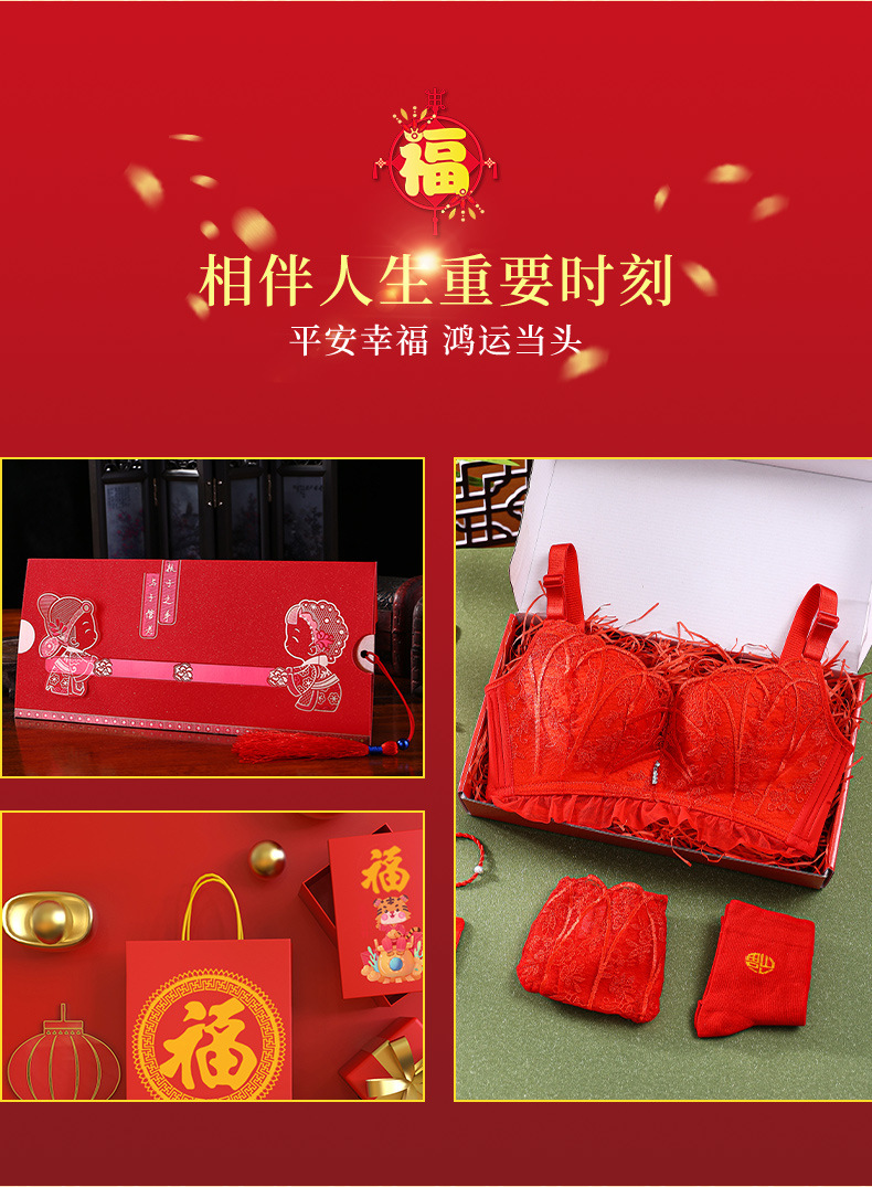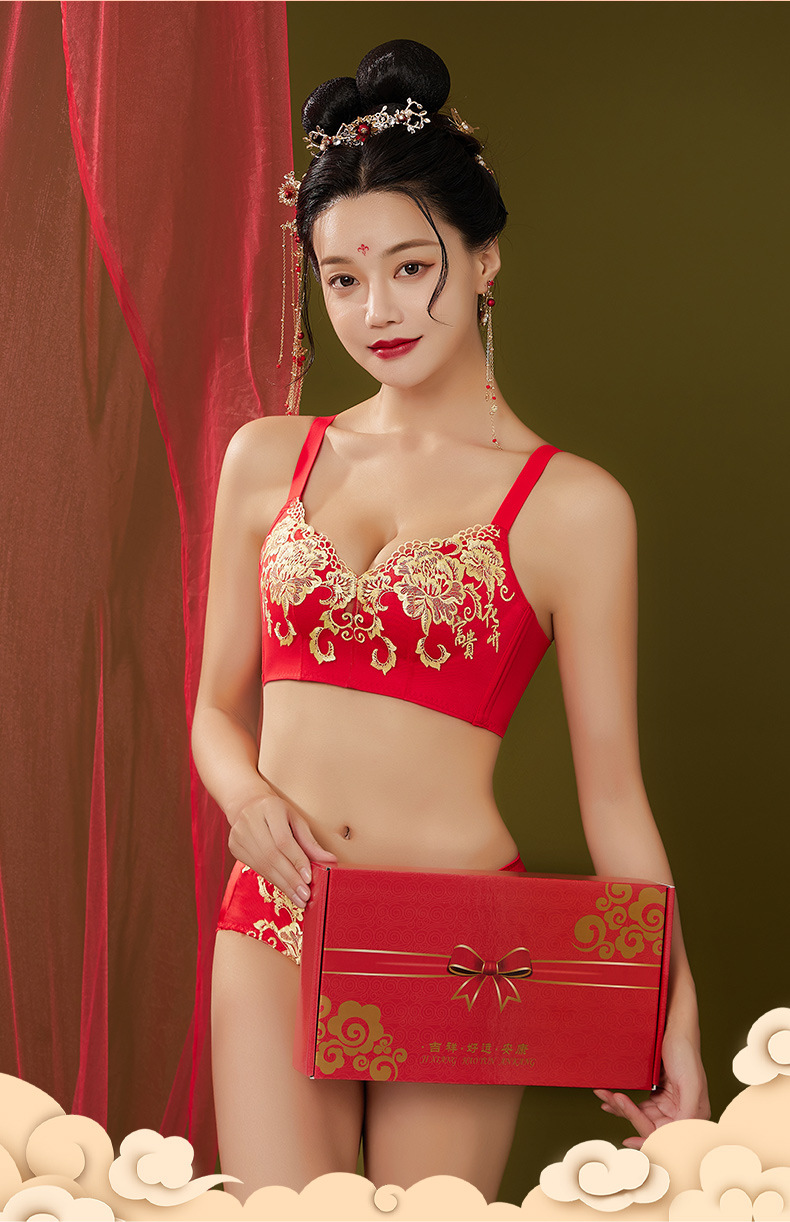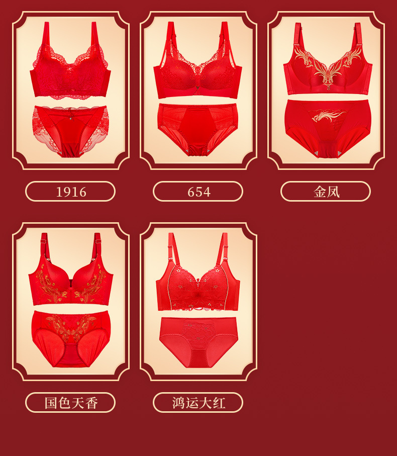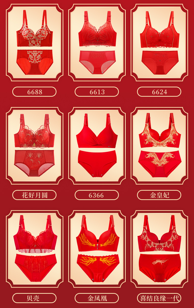 토끼의 해 결혼식 신부를위한 큰 빨간 연못 속옷 세트 여성의 작은 가슴 모임 파라머 브라스토어 가기