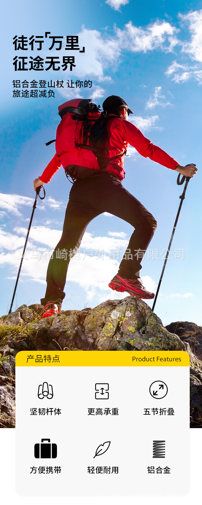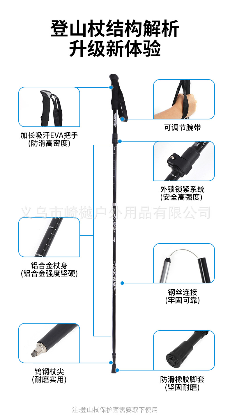 알루미늄 합금 클라이밍 워킹 스틱 텔레스코픽 접이식 하이킹 미끄럼 방지 워킹 스틱 조절 경량 워킹 스틱 도매 클라이밍 스틱스토어 가기