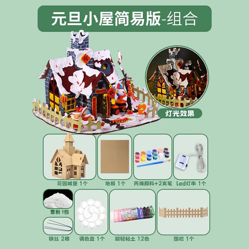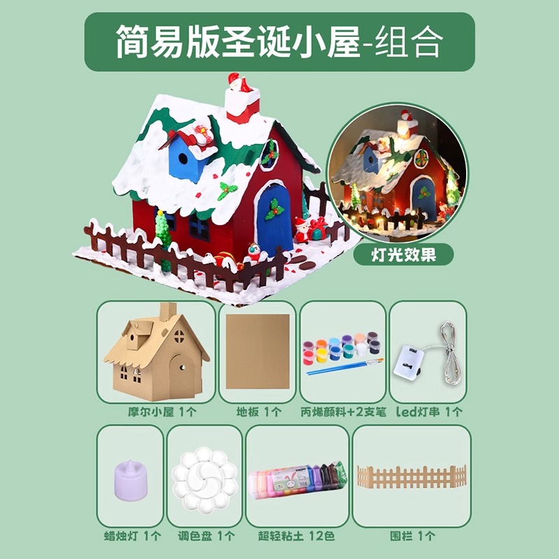 유치원 선물 크리스마스 비스킷 집 장식 어린이 수제 DIY 재료 가방 빛나는 수제 코티지