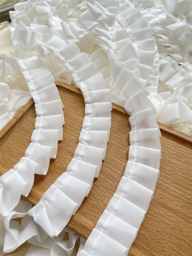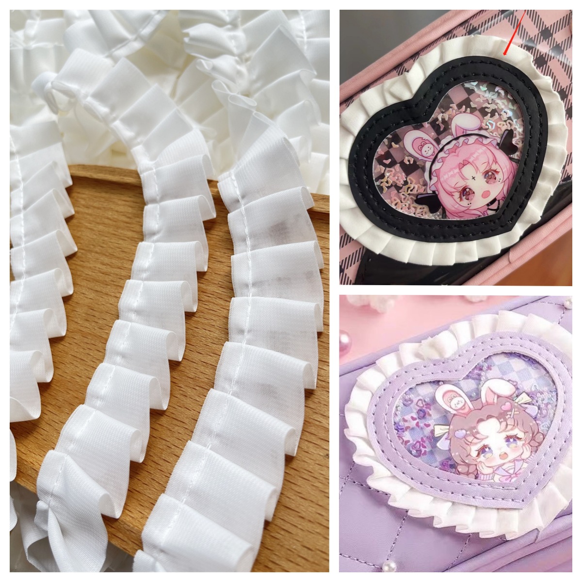 공장 재고 3cm 넓은 흰색 두 배 주름 기관 주름 커프 로리타 의류 레이스 액세서리