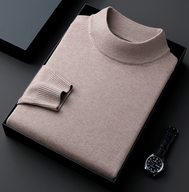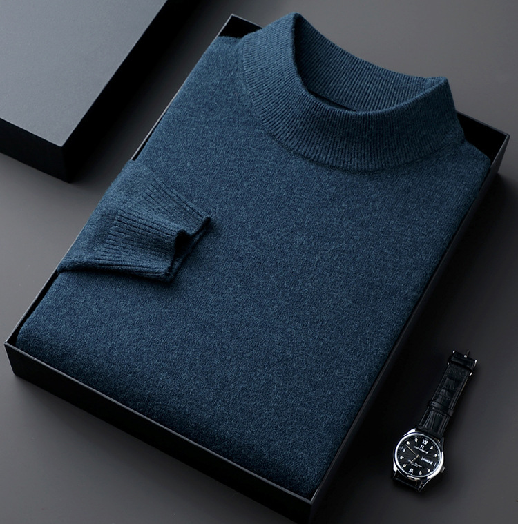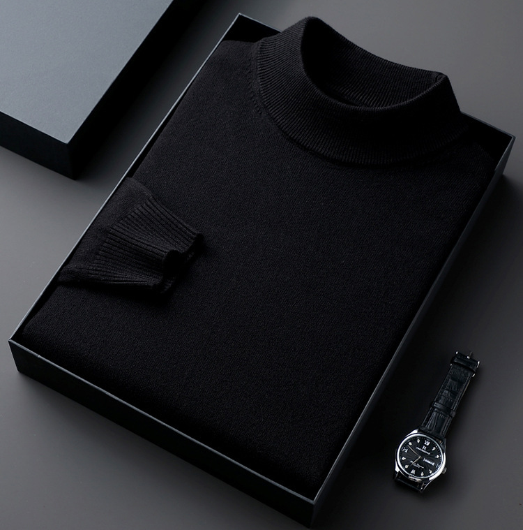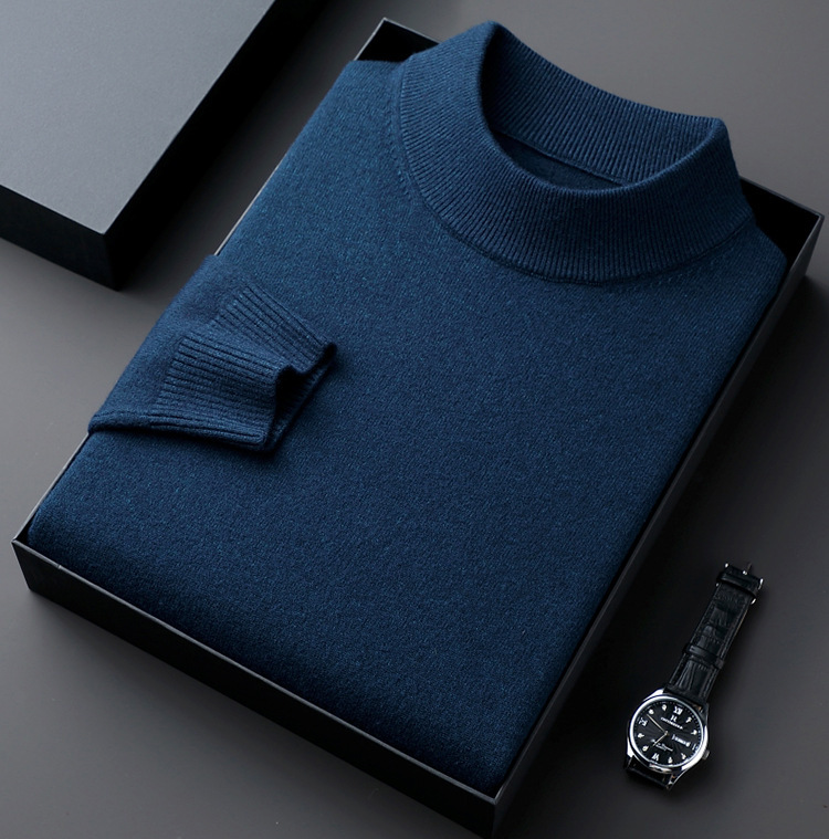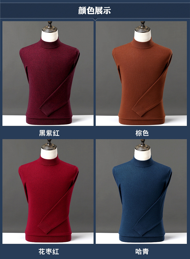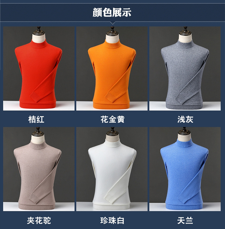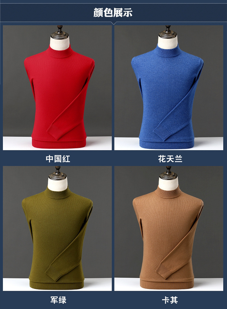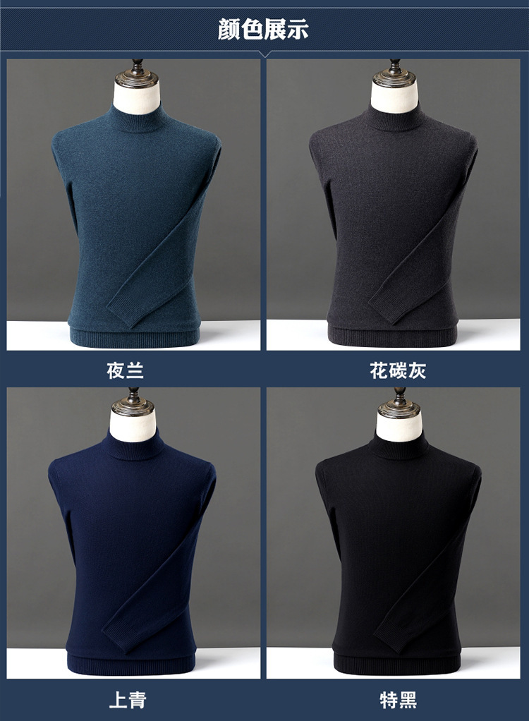 冬季新款仿羊绒针织衫男士半高领纯色加厚打底衫休闲宽松毛衣男装