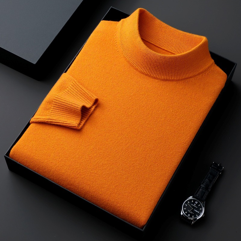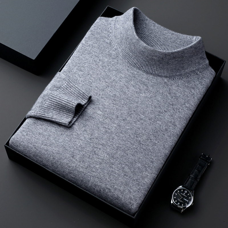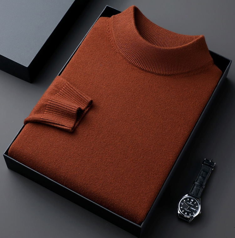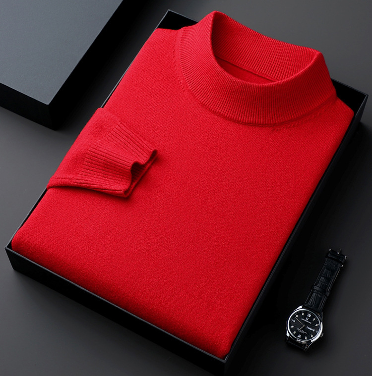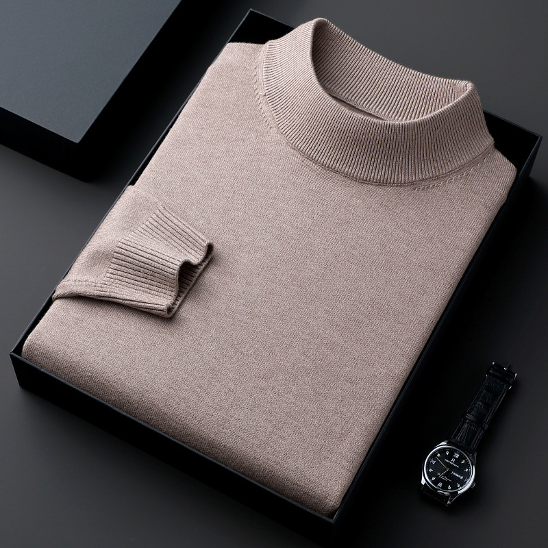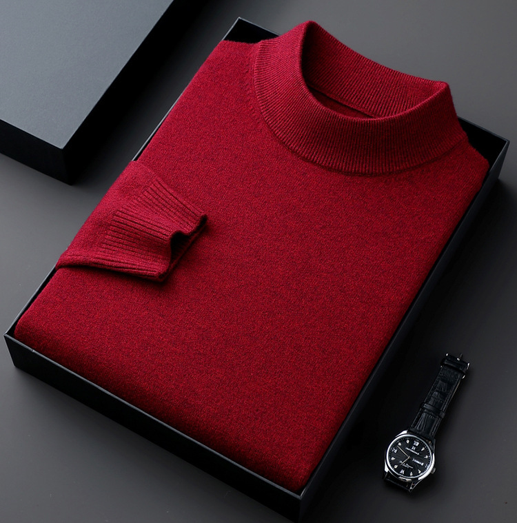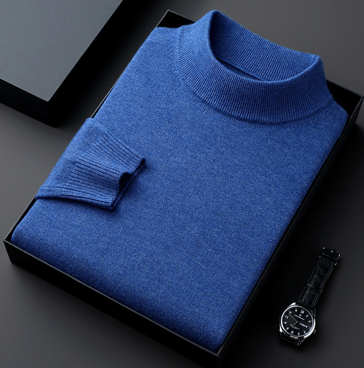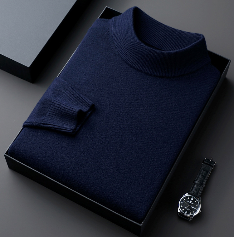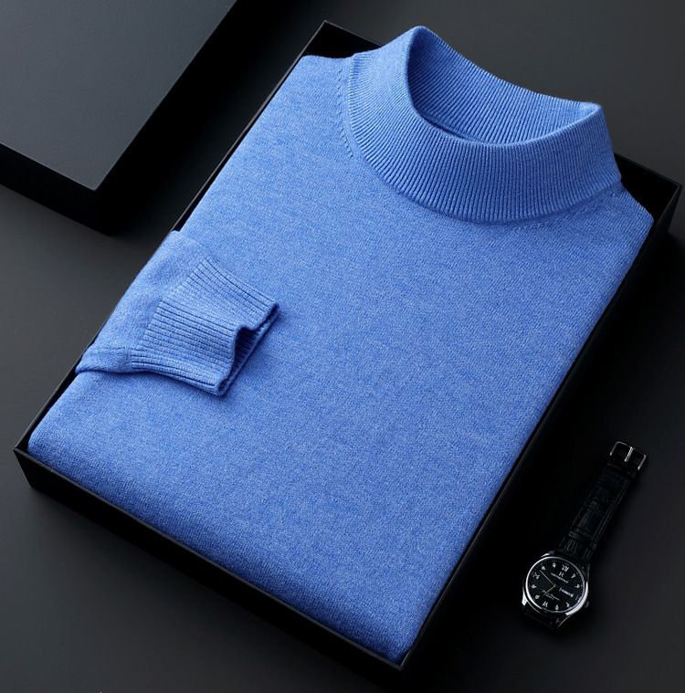 冬季新款仿羊绒针织衫男士半高领纯色加厚打底衫休闲宽松毛衣男装