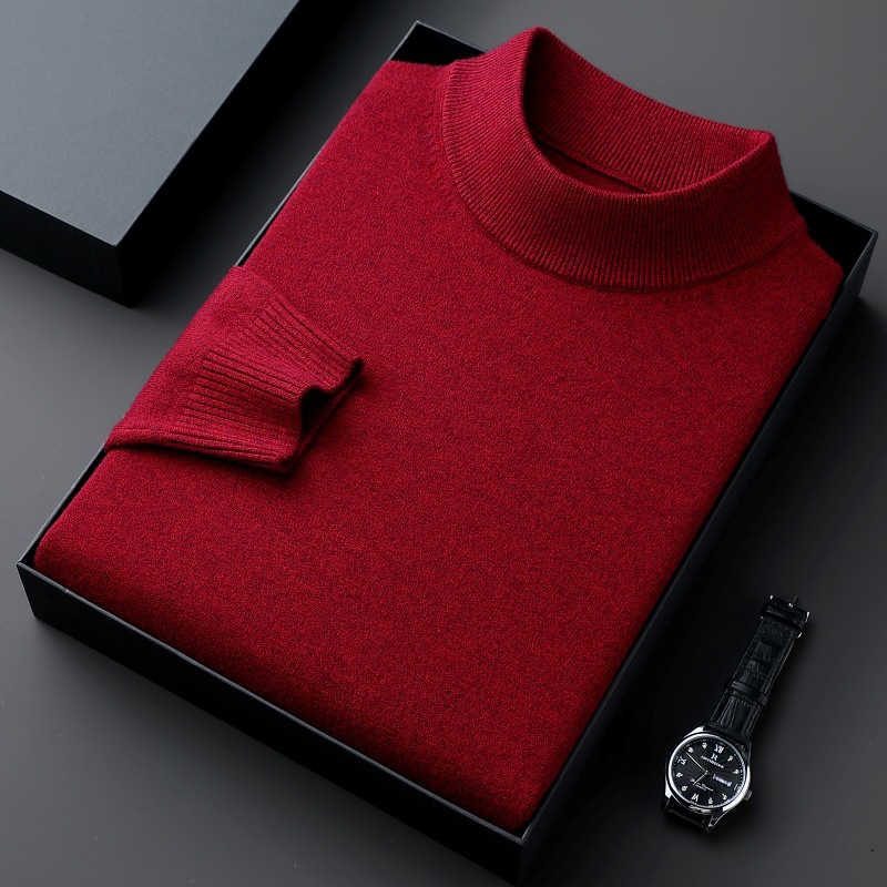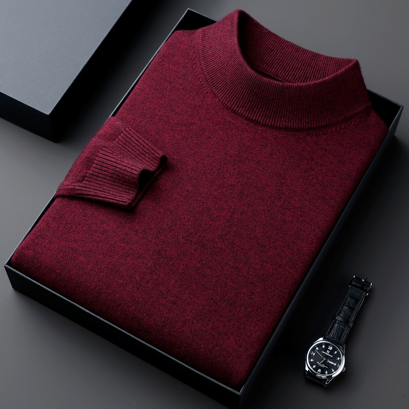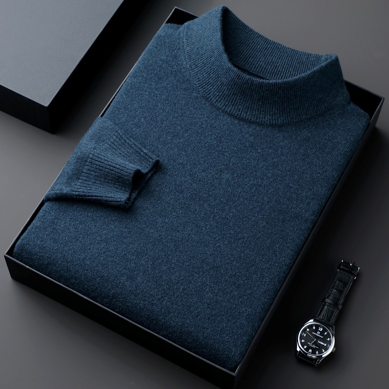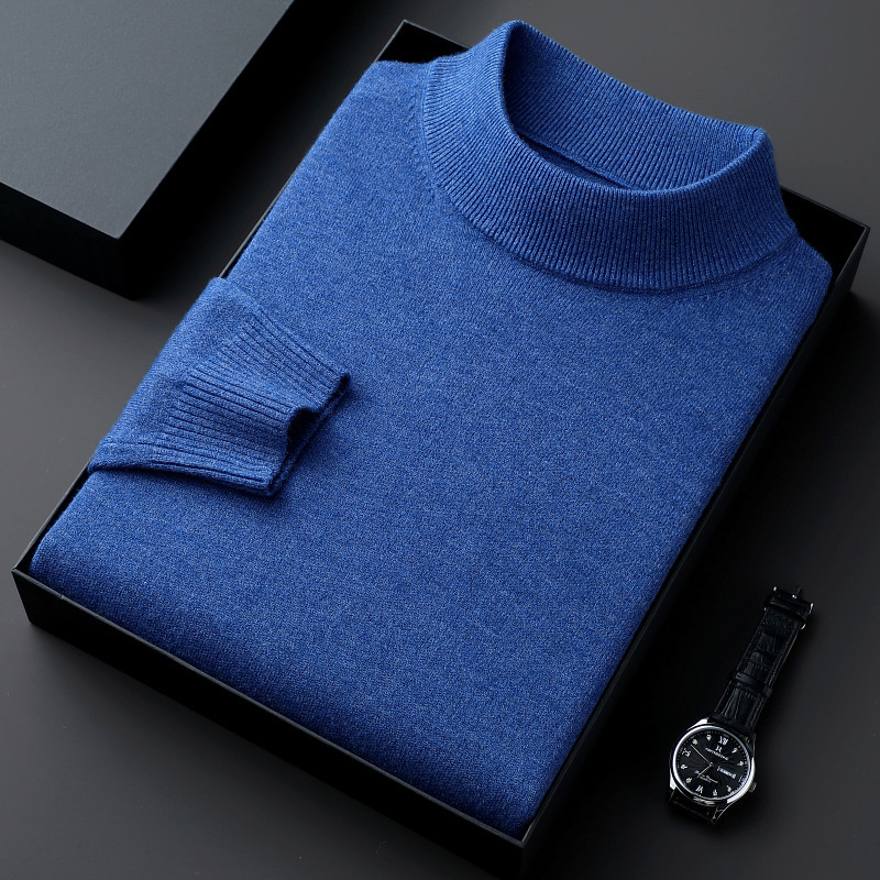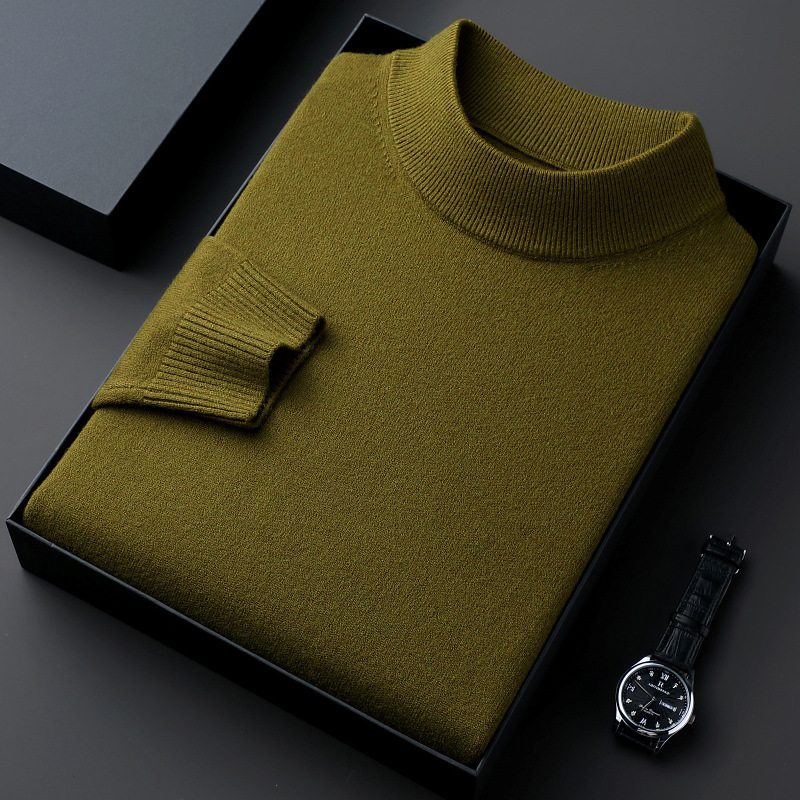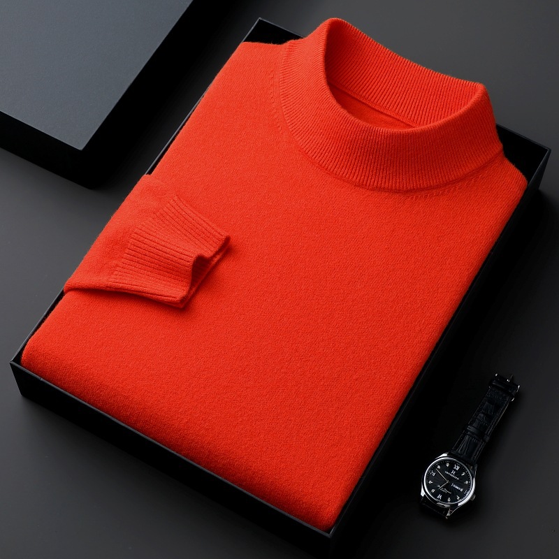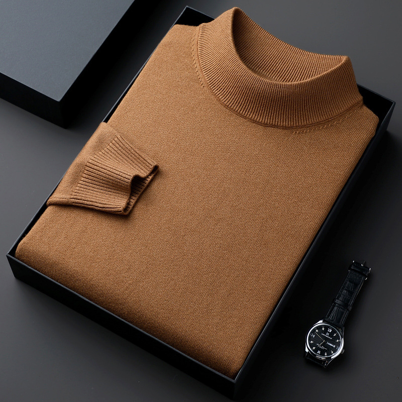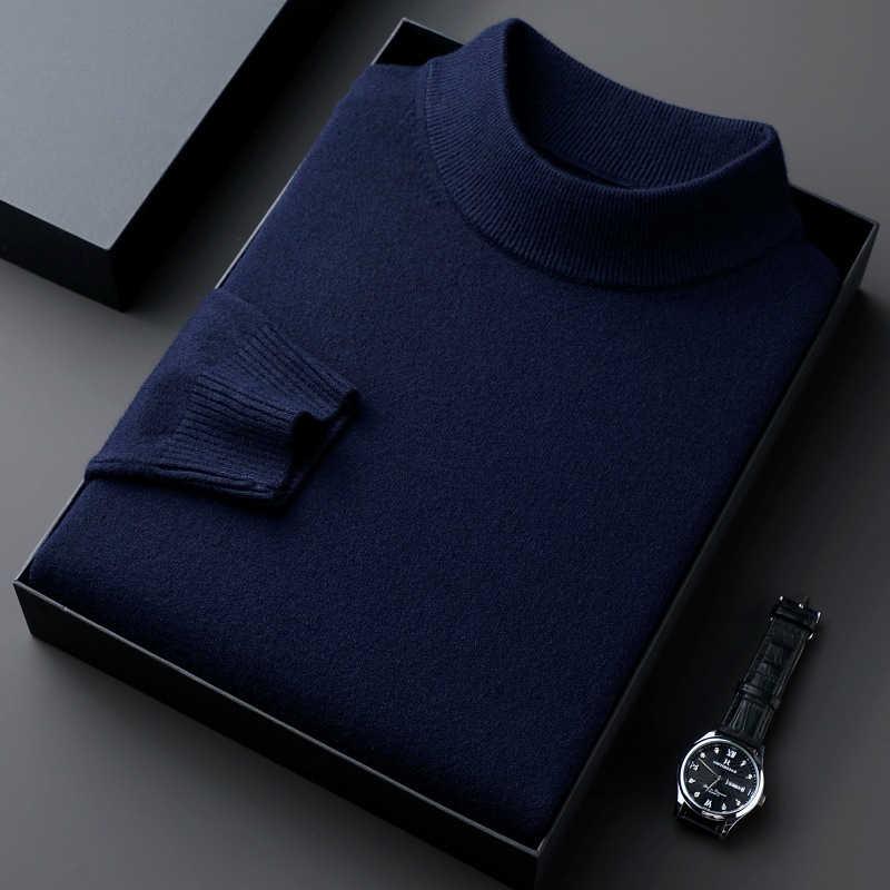冬季新款仿羊绒针织衫男士半高领纯色加厚打底衫休闲宽松毛衣男装