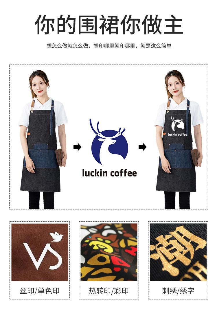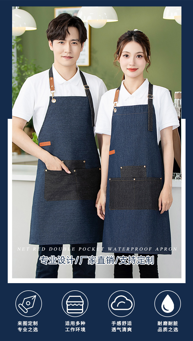 새로운 데님 앞치마 로고 인쇄 광고 행사 선물 방수 방오 두꺼운 내구성 작업복 민소매
